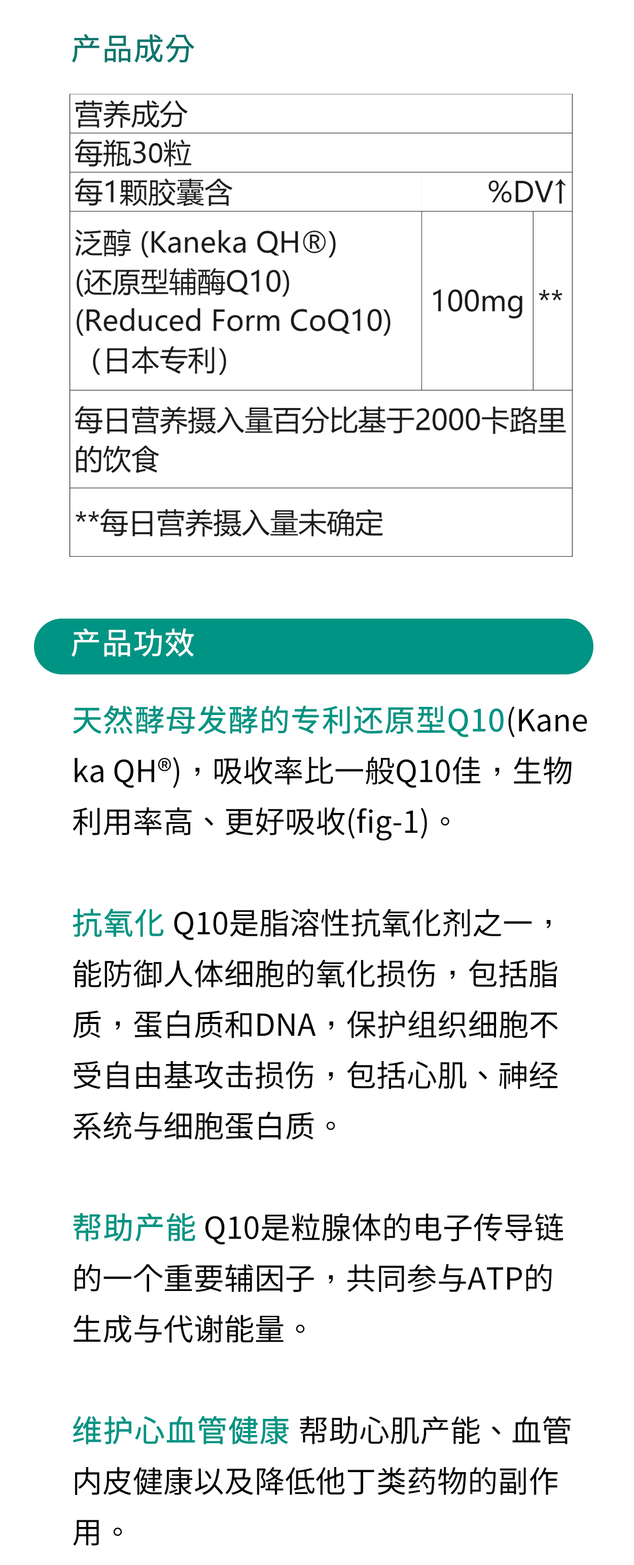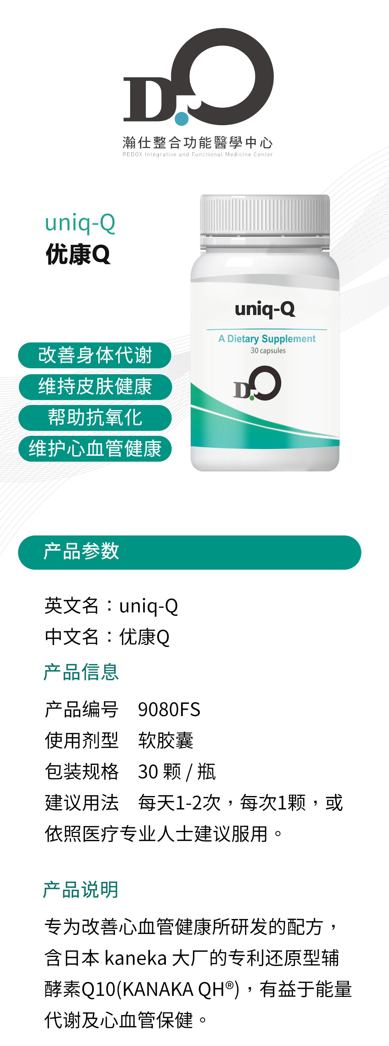 台湾瀚仕 优康Q uniq-Q 辅酶Q10 日本专利Kaneka QH® 还原型辅酶Q10 100mg【顺丰现货】