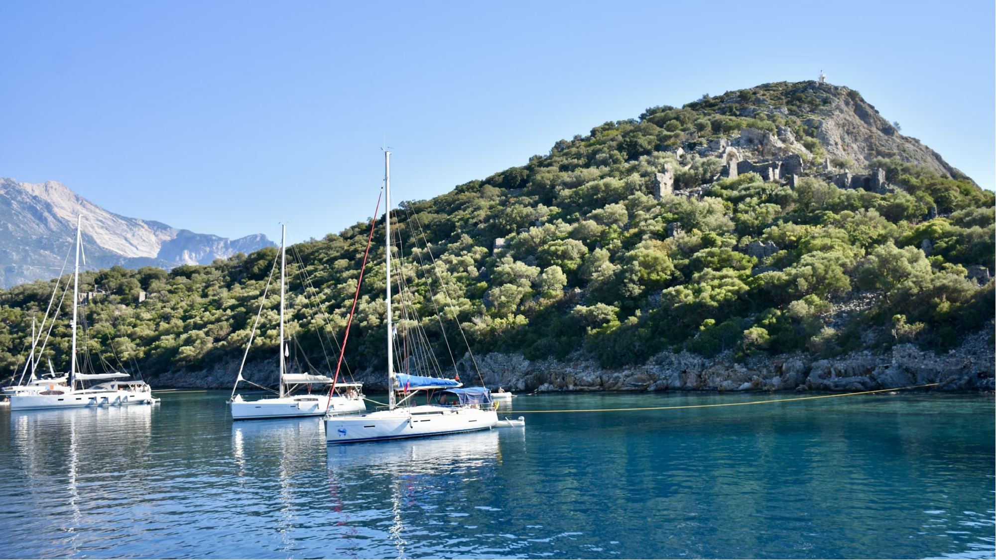 第一站启航去驶往Pointe Zanguilles, 夜锚浪漫海湾;未来七天,这艘船就是我们共同的家,当晚我们会一起在船上过夜,对未来几天的航海生活稍做适应,途中我们将学习到帆船基本术语、部件与功能,学习舵令与基本航行操控。