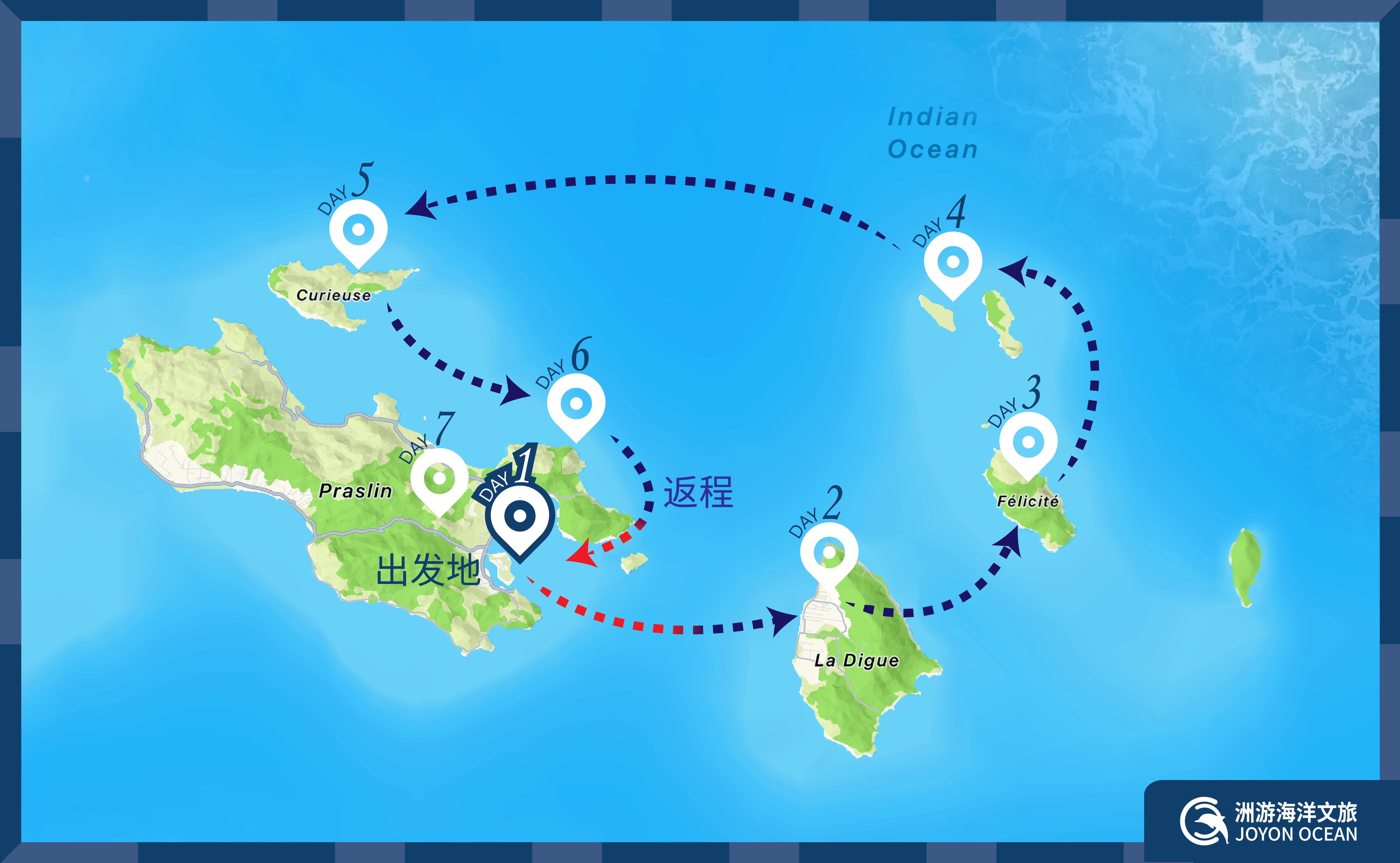 提前一天抵达塞舌尔,搭渡轮前往Praslin岛,以跳岛航行的方式深度学习和探访这个美丽的国家。
