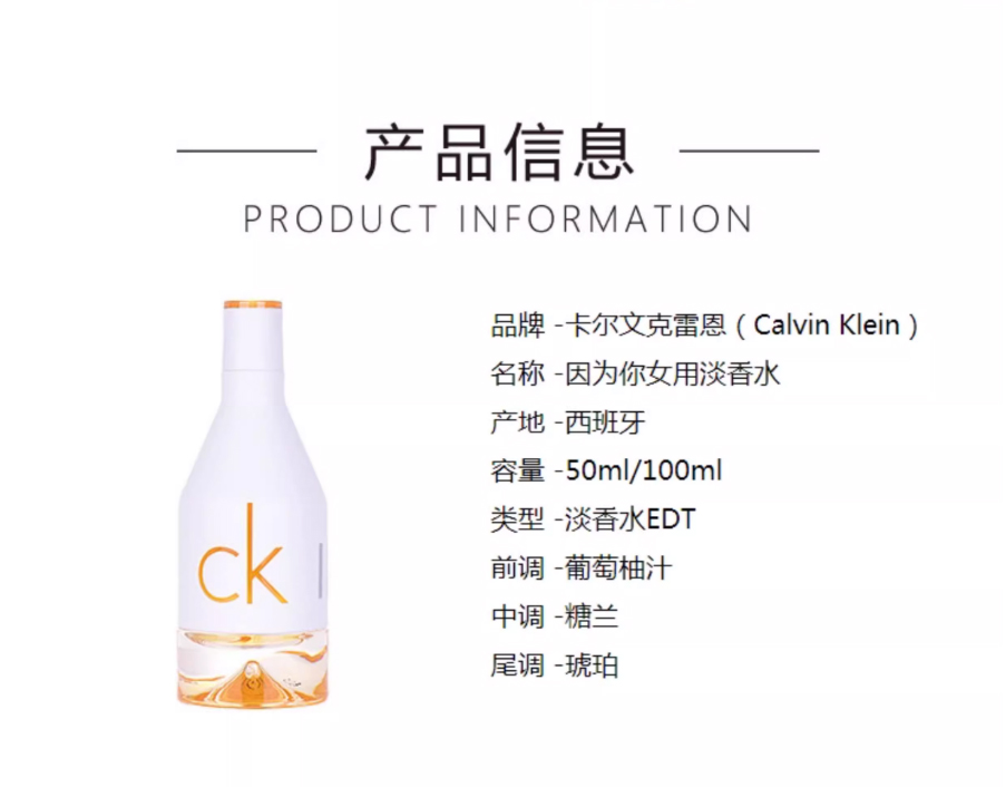 【7.5王炸割肉价】Calvin Klein/凯文克莱IN2U喜欢你因为你女士淡香水50ML(限26年12月)