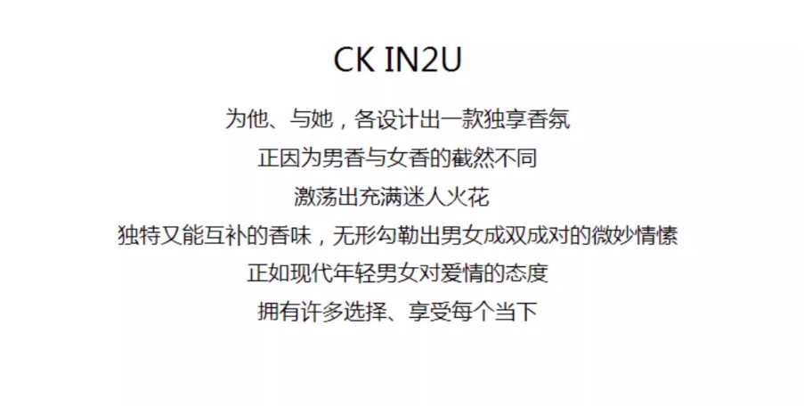 【品名】Calvin Klein/凯文克莱IN2U喜欢你因为你女士淡香水50ML