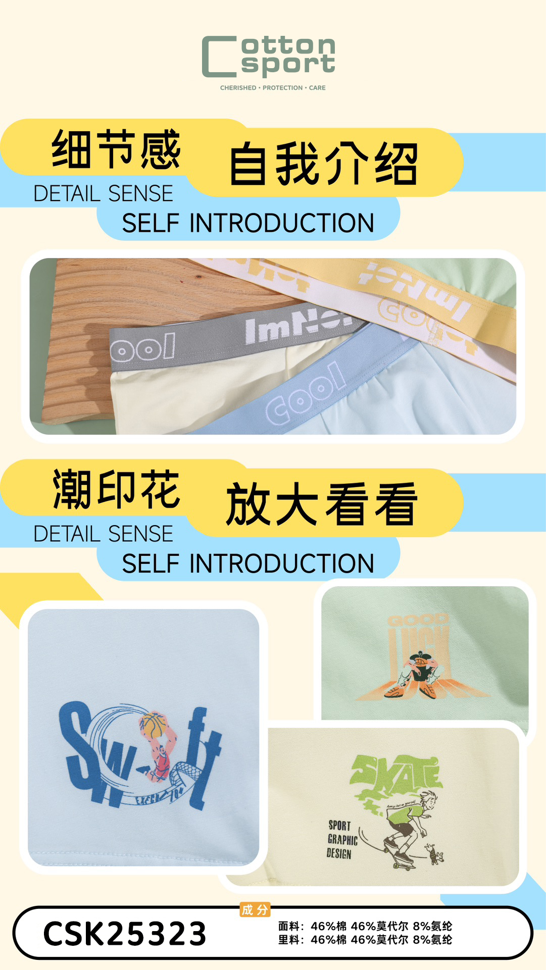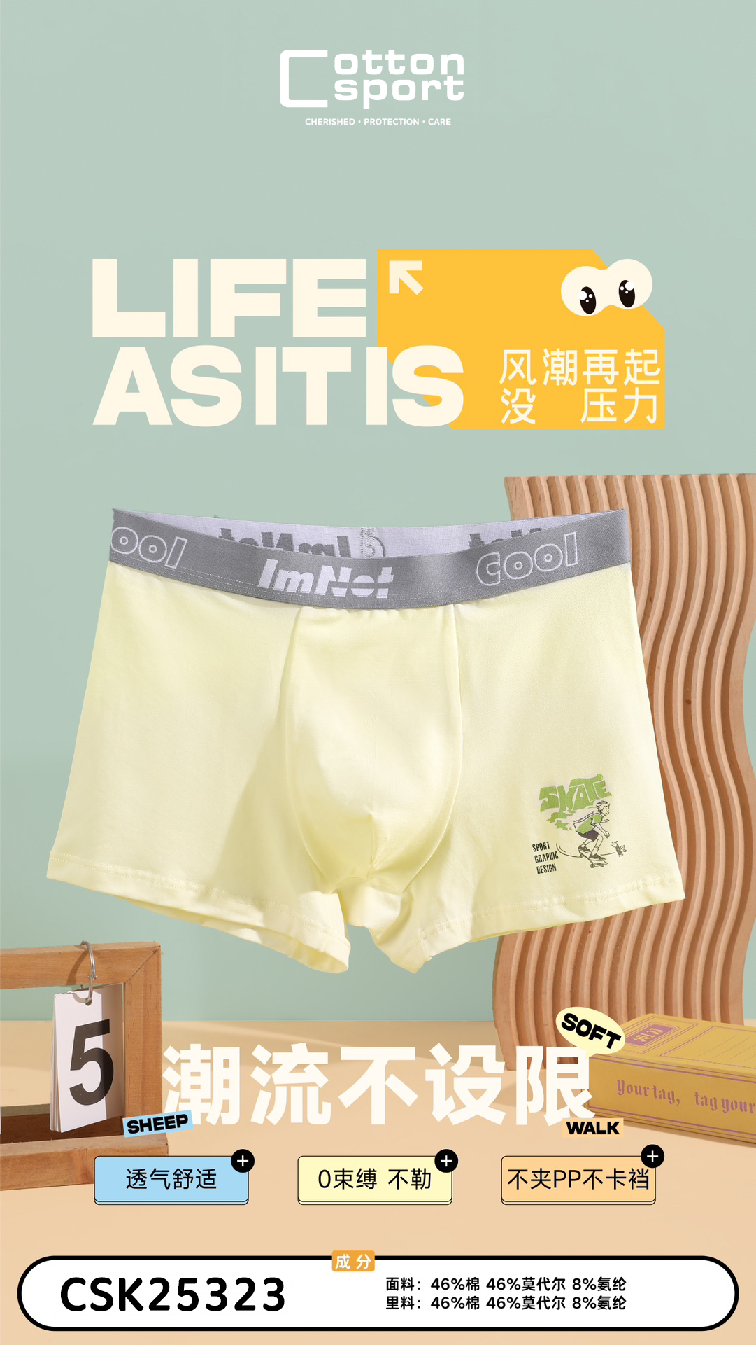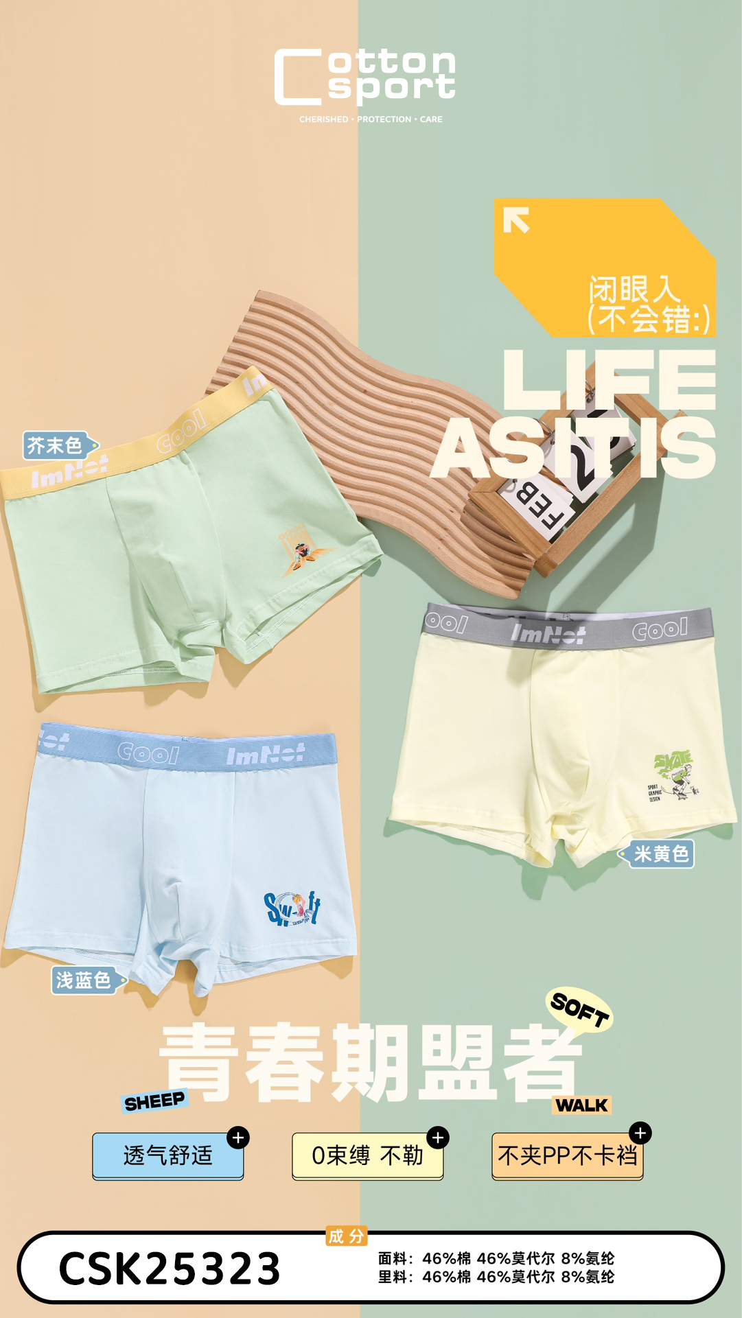[三条装]青少年内裤大童底裤平角裤棉莫【CSK25323】