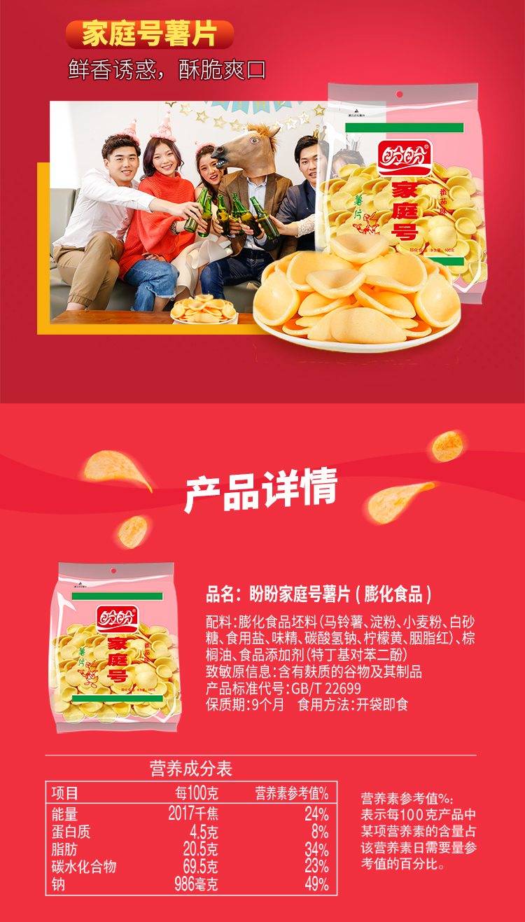【69任选10件】盼盼家庭号薯片(番茄味)100g