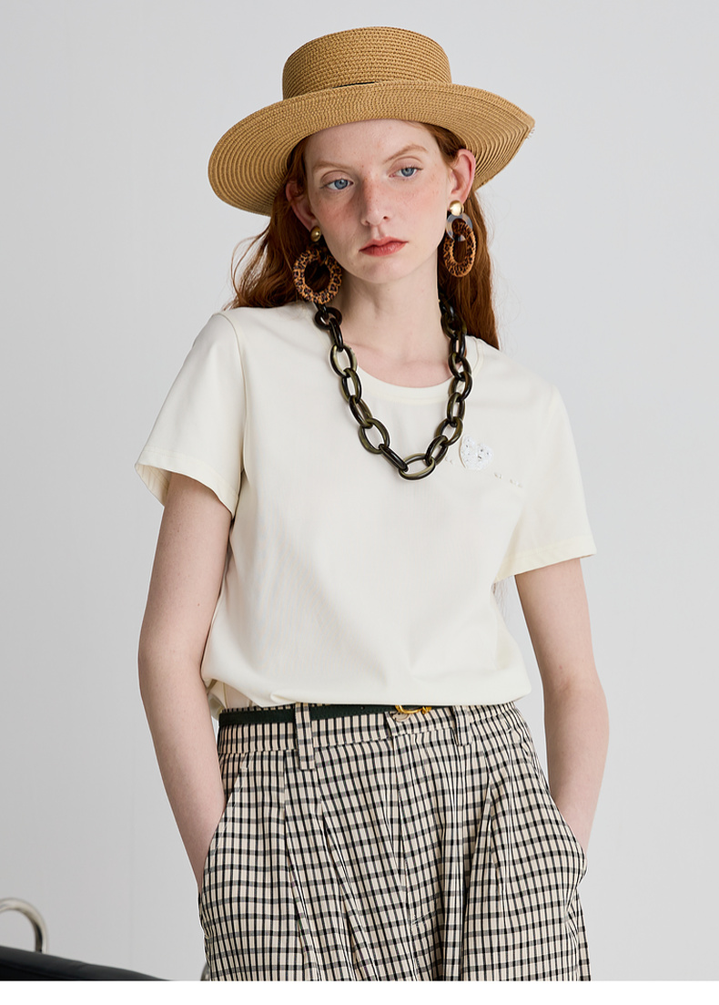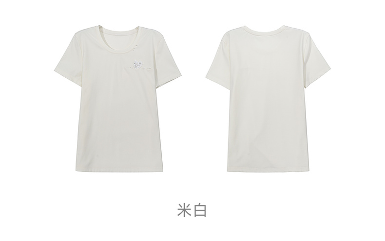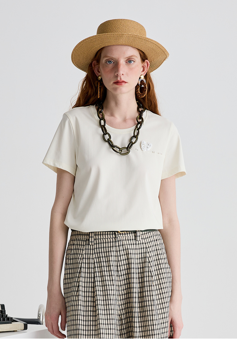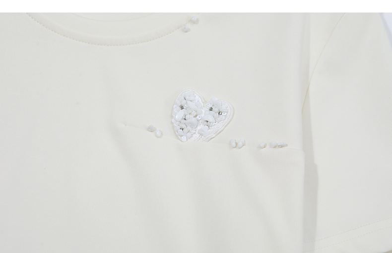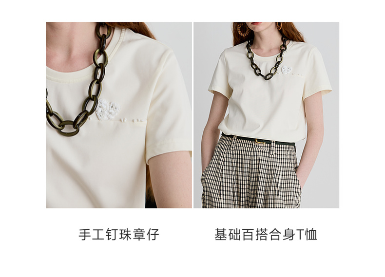 谜底T恤短袖女2025夏新品休闲日常手工钉珠合身X型上衣252MT0620