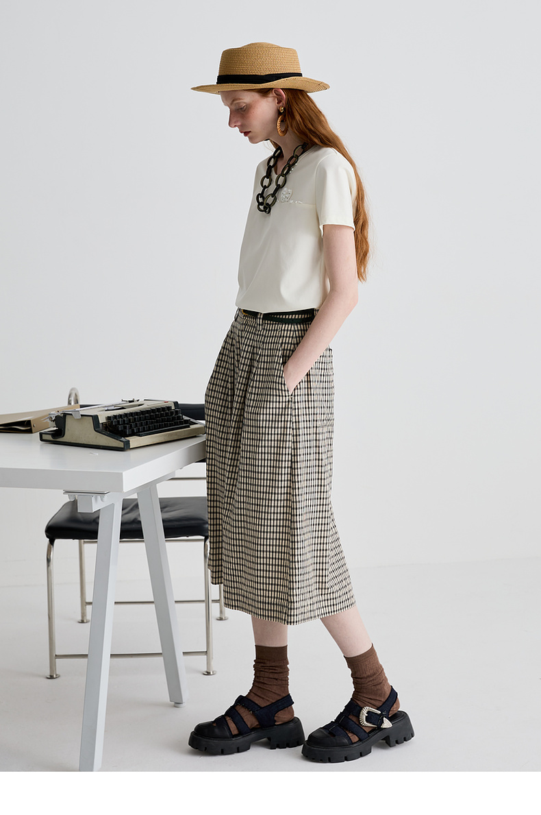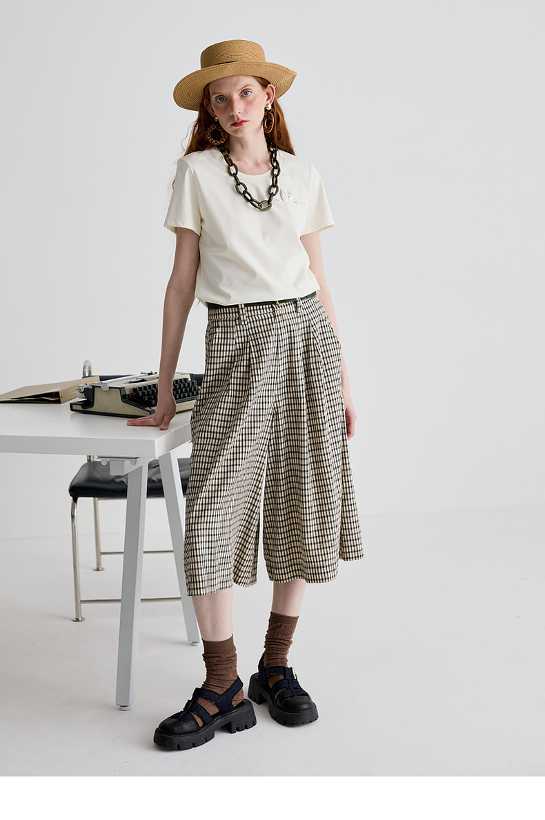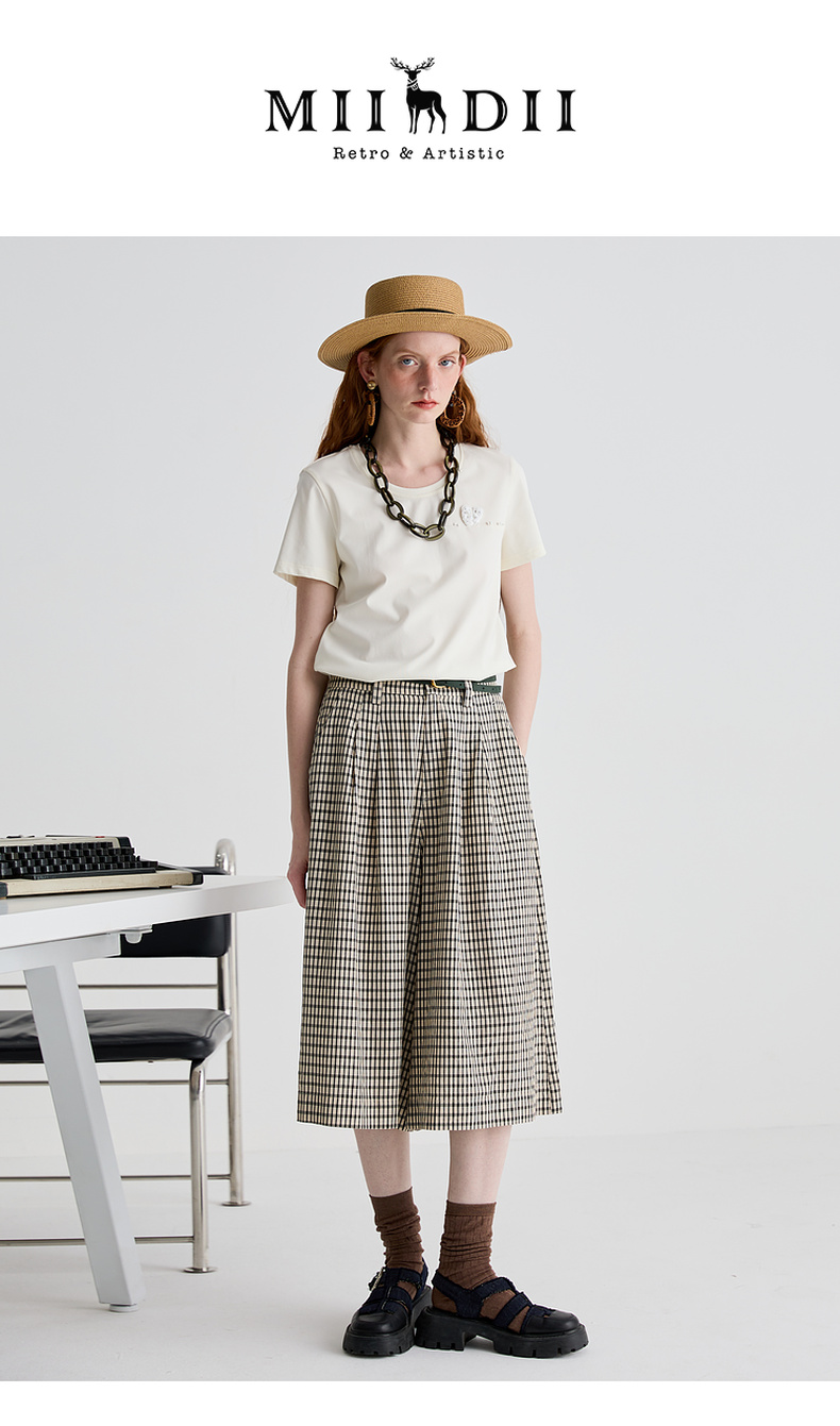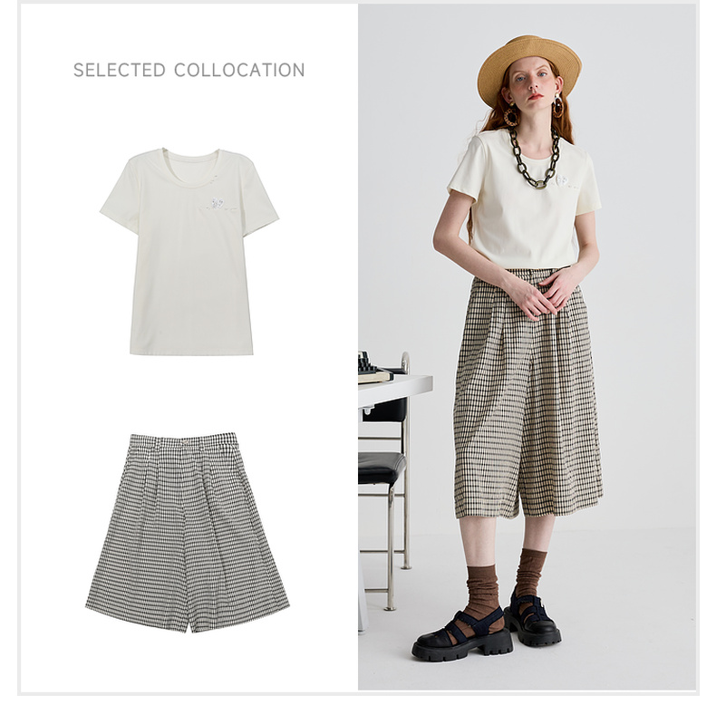 谜底T恤短袖女2025夏新品休闲日常手工钉珠合身X型上衣252MT0620