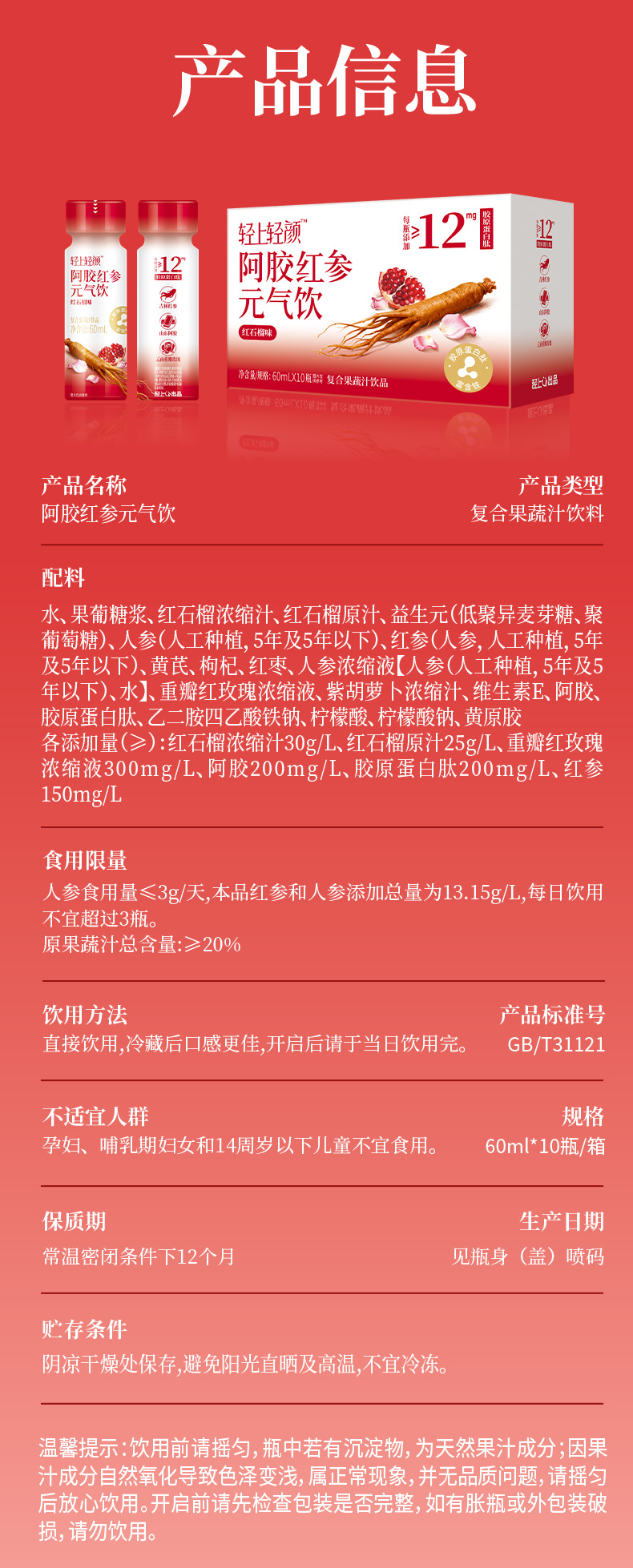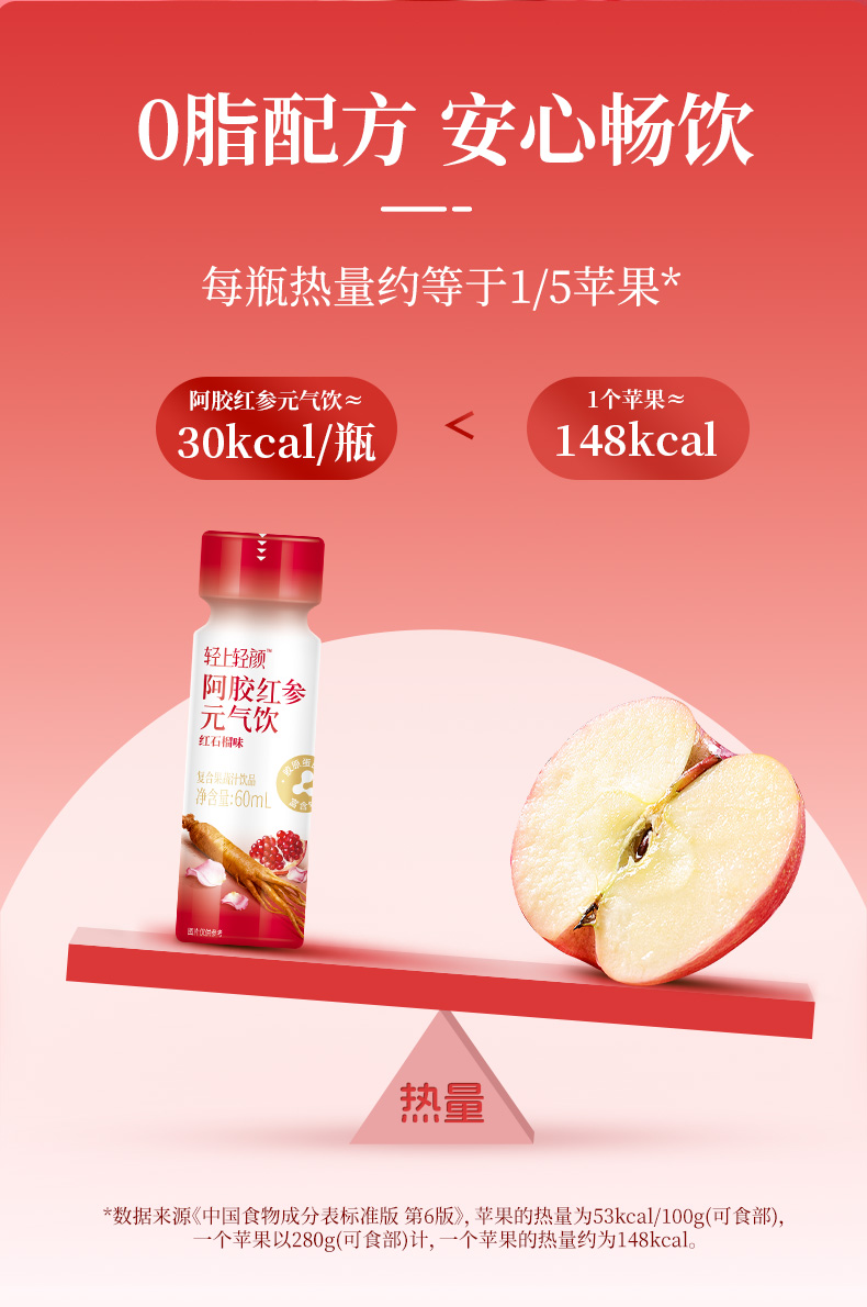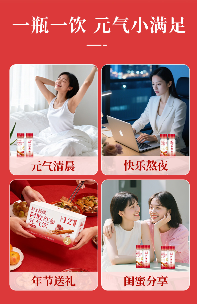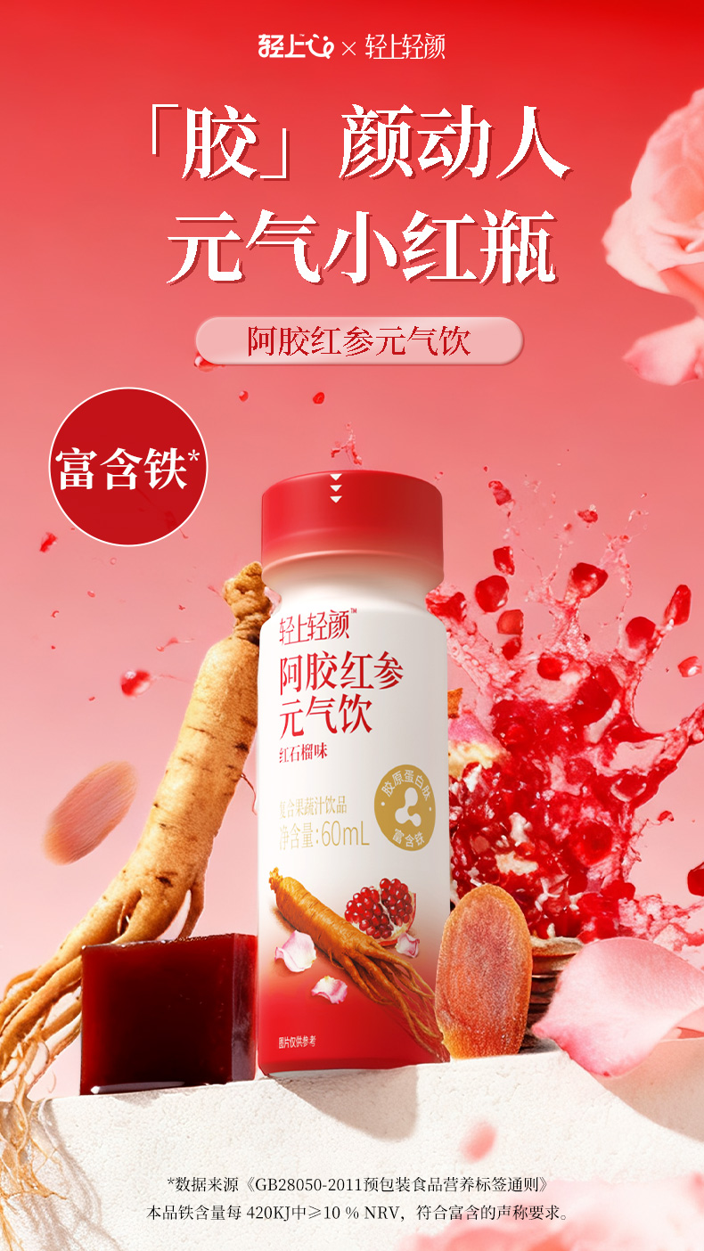 轻上 轻颜阿胶红参元气饮60ml*15瓶