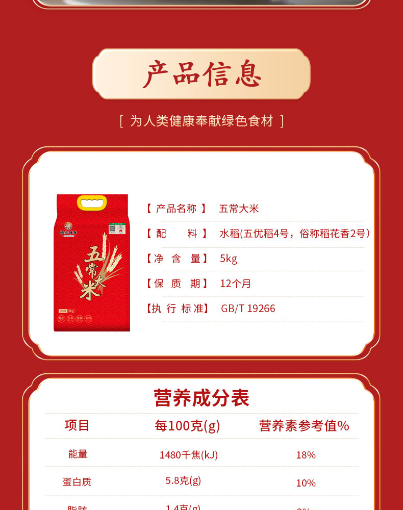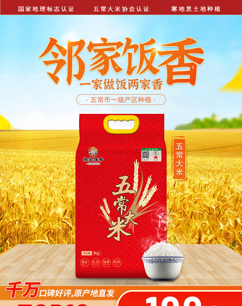 邻家饭香 一级五常大米 5kg每袋 真空双层包装 LJFX133
