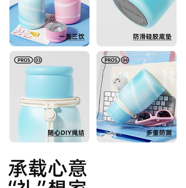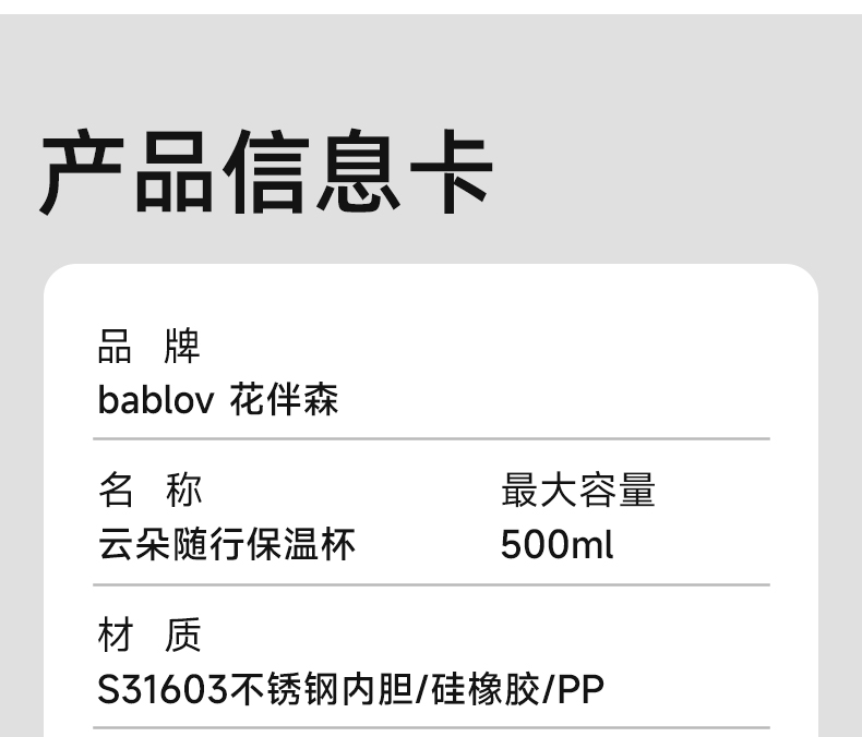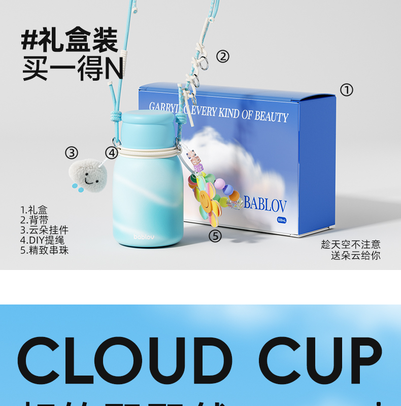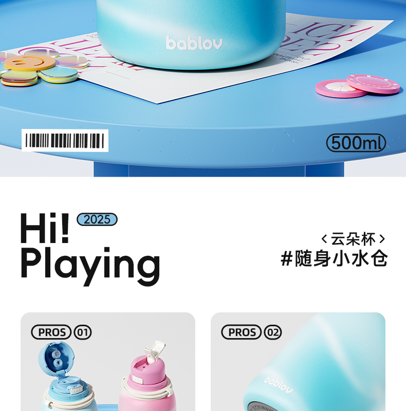 - BABLOV关注中国人的饮水健康,更不断探索未知可能性,专注于新生代自我个性表达,创造玩味新潮的产品体系。希望将水杯带入Z世代年轻人的生活,传递更多“饮”响力。