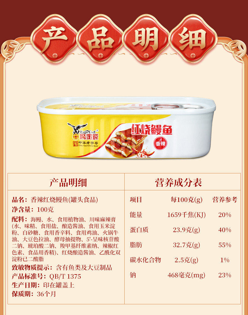 鹰金钱牌拉盖红烧鳗鱼(TY)