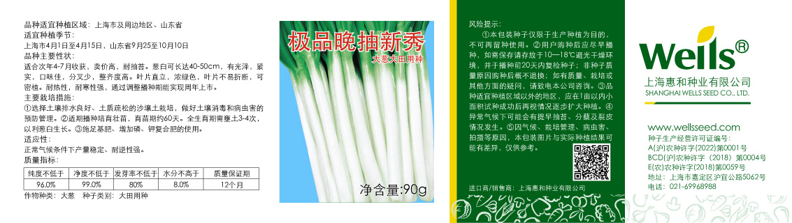 适合次年4到7月收获,卖价高,耐抽苔。葱白长40-50cm,有光泽,紧实,口味佳,分叉少,整齐度高。叶片直立,浓绿色,叶片不易折断,可密植。耐热性、耐寒性强,通过调整播种期能实现周年上市。