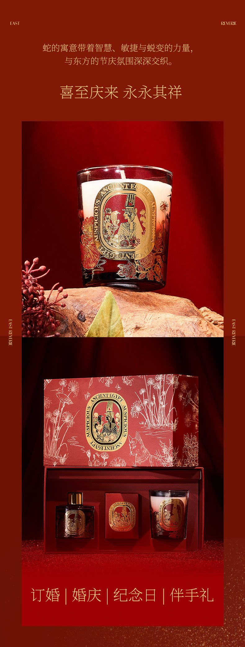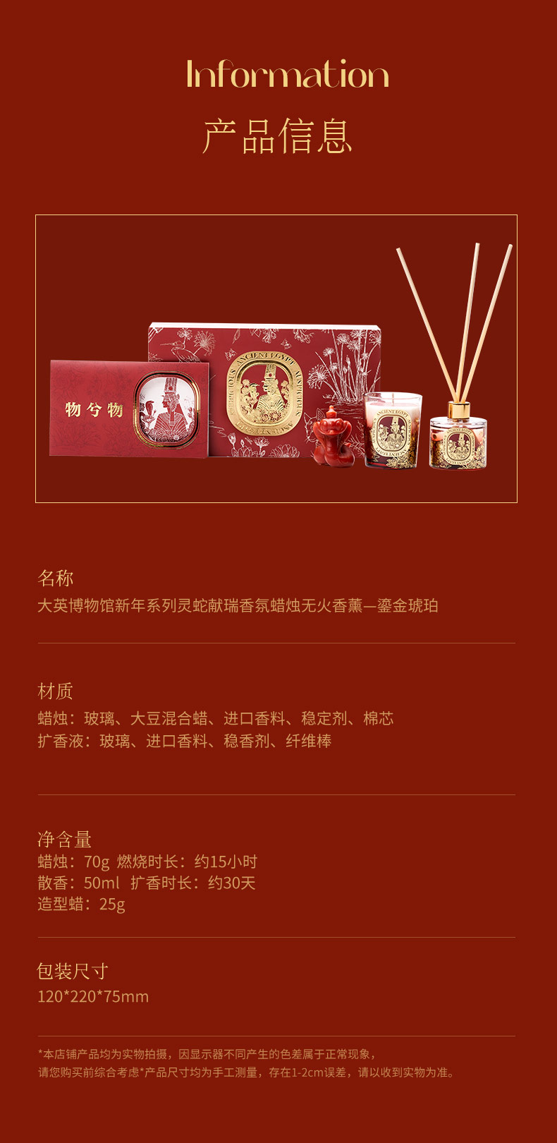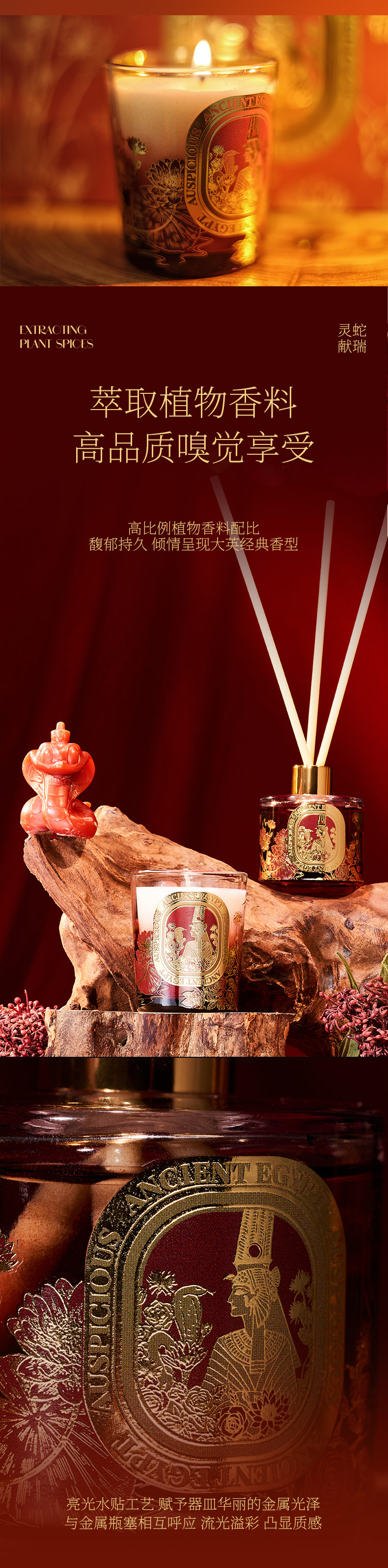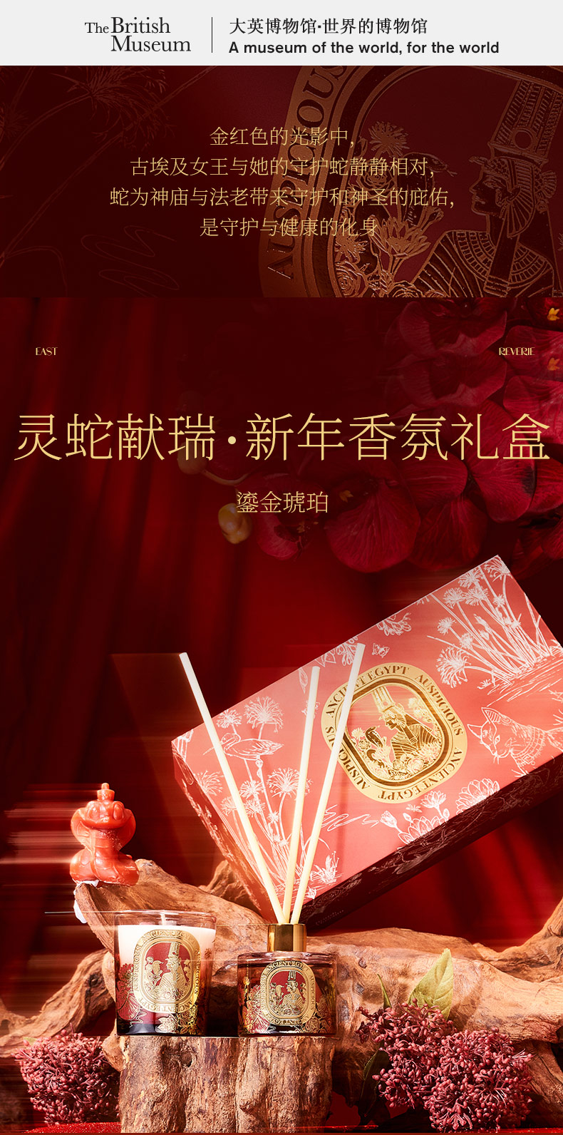 大英博物馆新年系列灵蛇献瑞香氛蜡烛无火香薰 鎏金琥珀