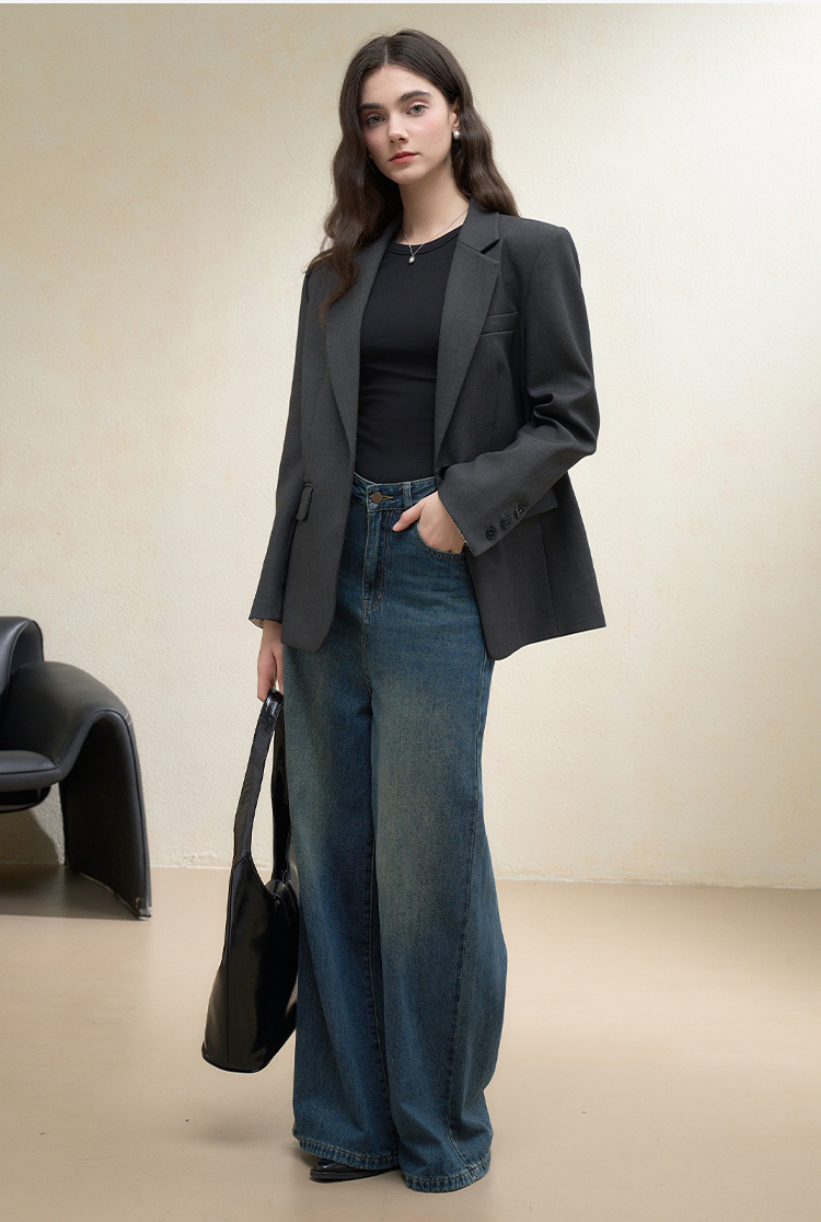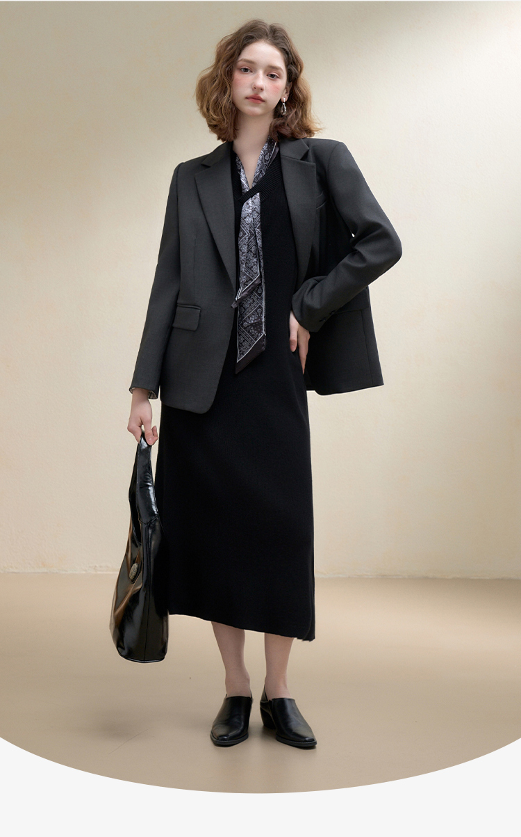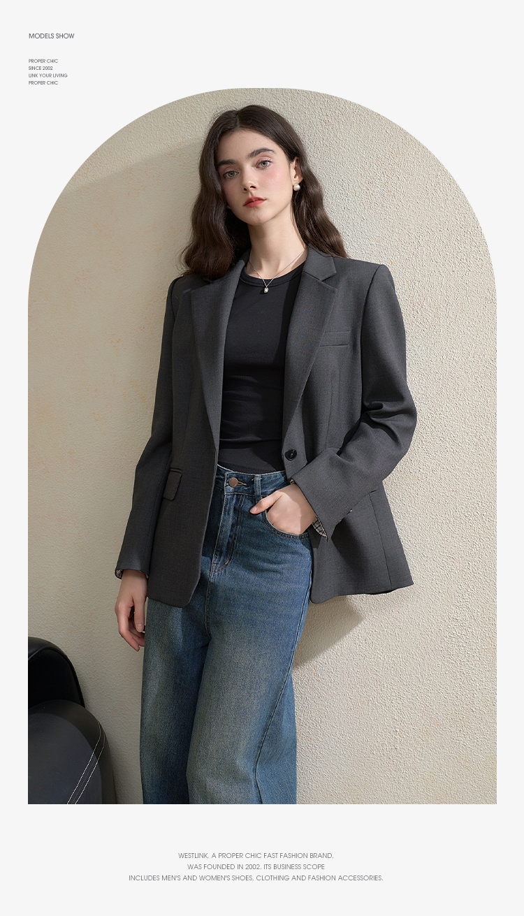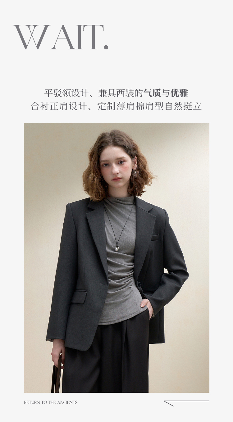 西遇气质通勤格纹袖口翻领垫肩西装外套女秋季百搭休闲西服V2751143