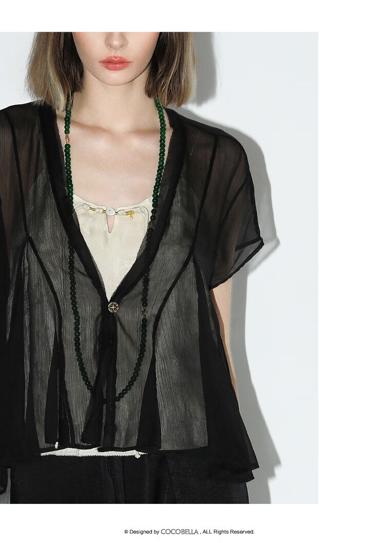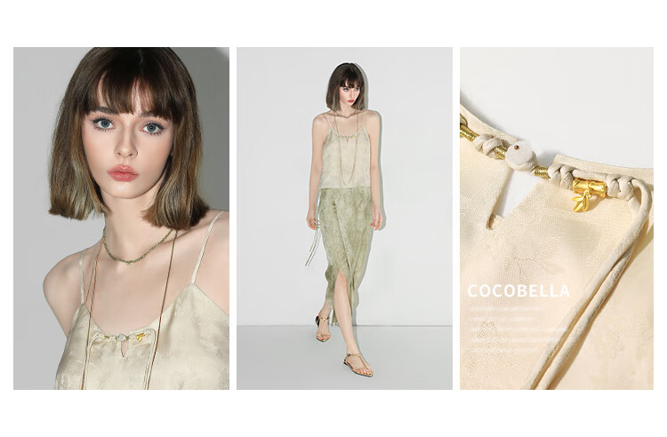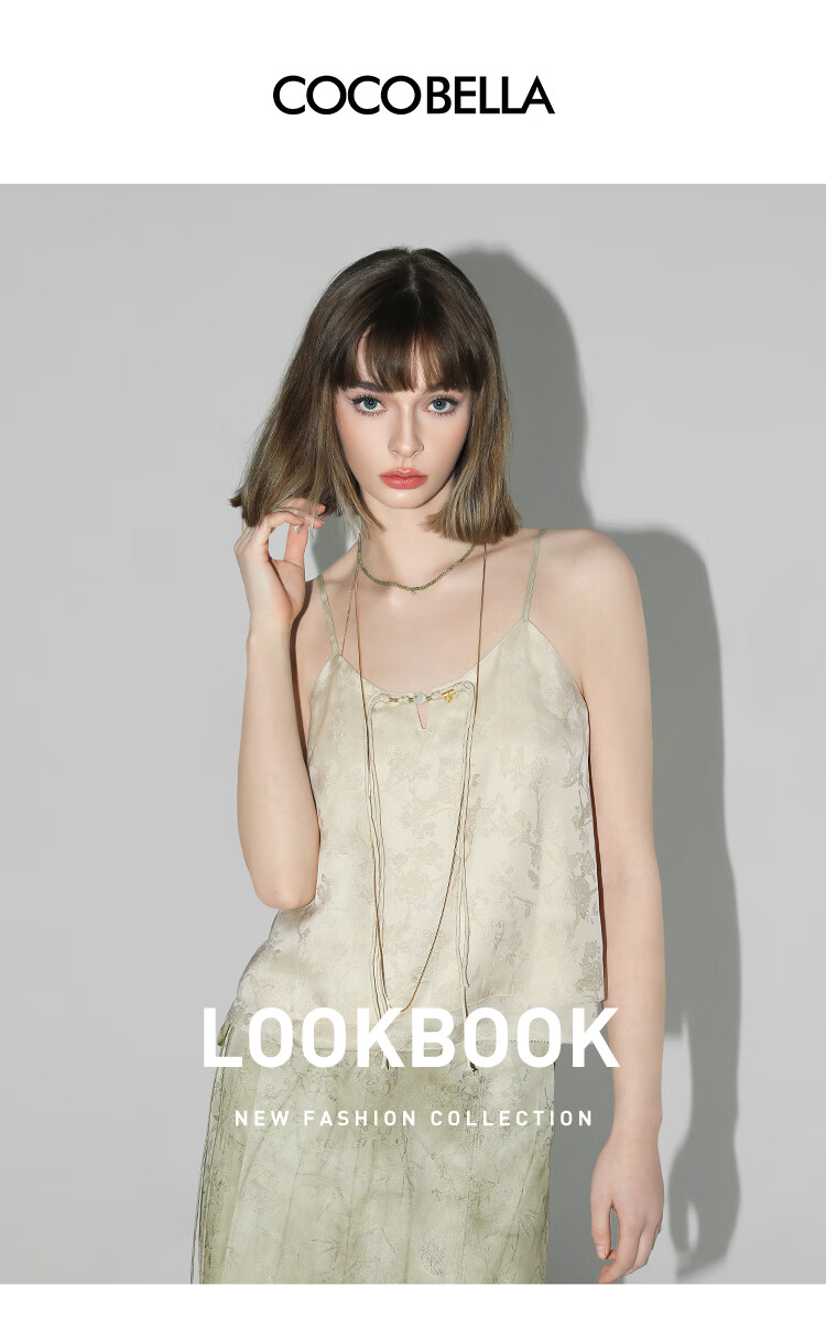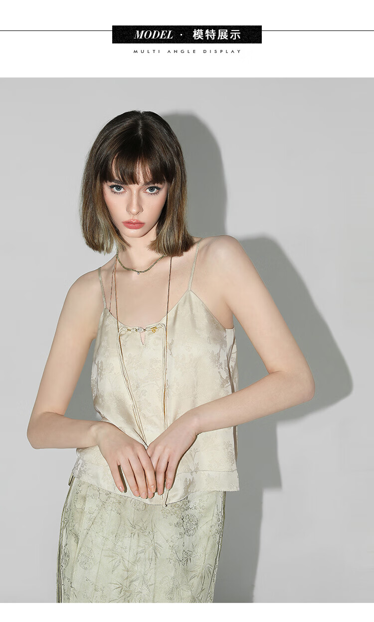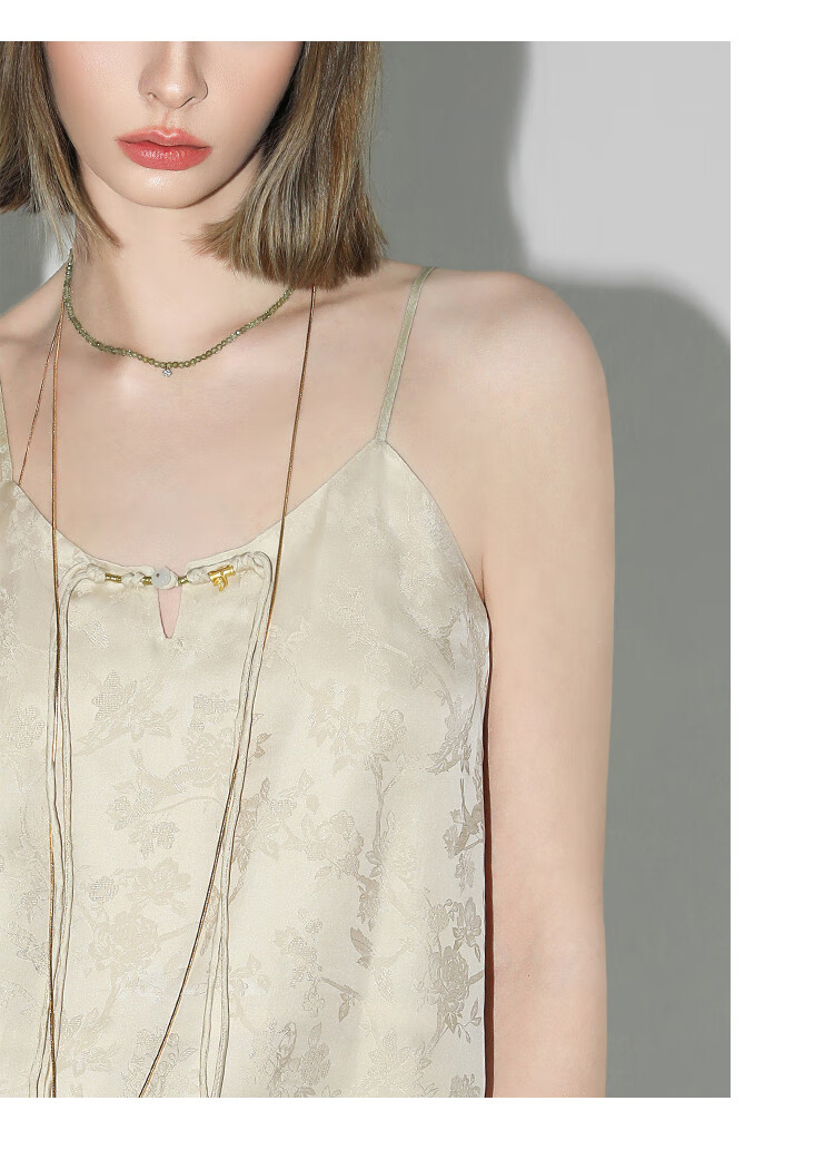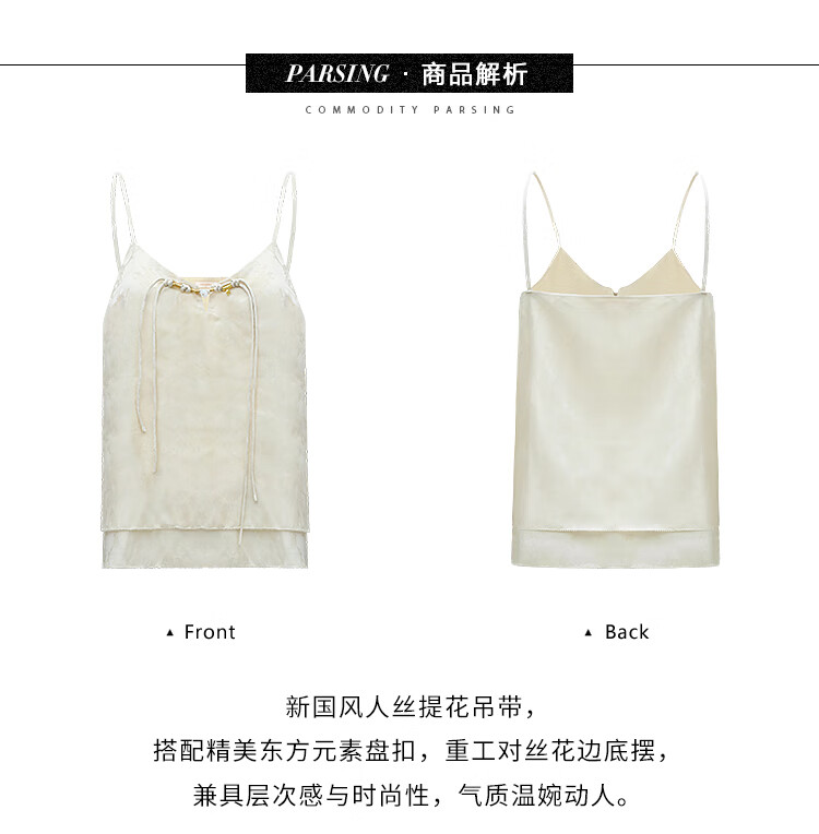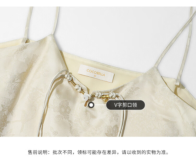 COCOBELLA新中式暗纹提花玉石盘扣人丝吊带对丝V领背心VT7001-2