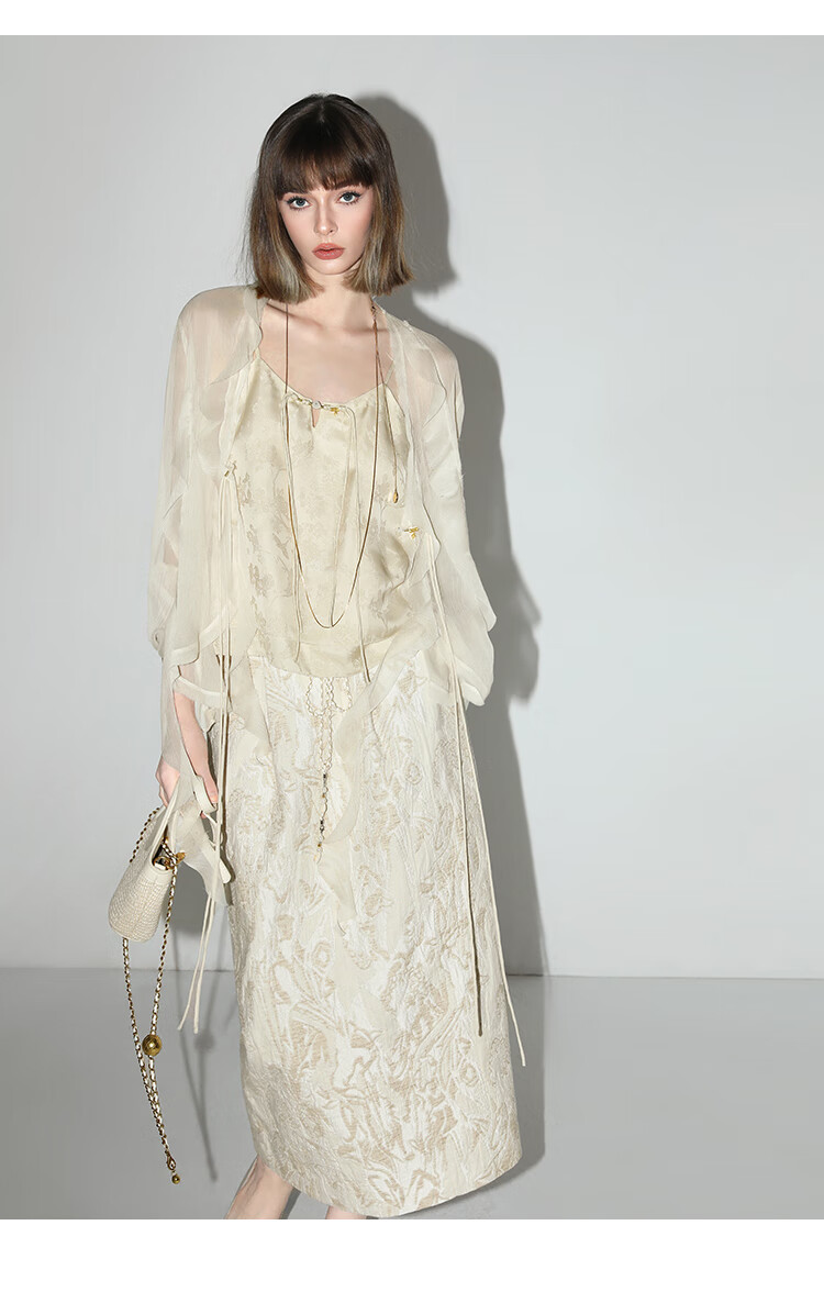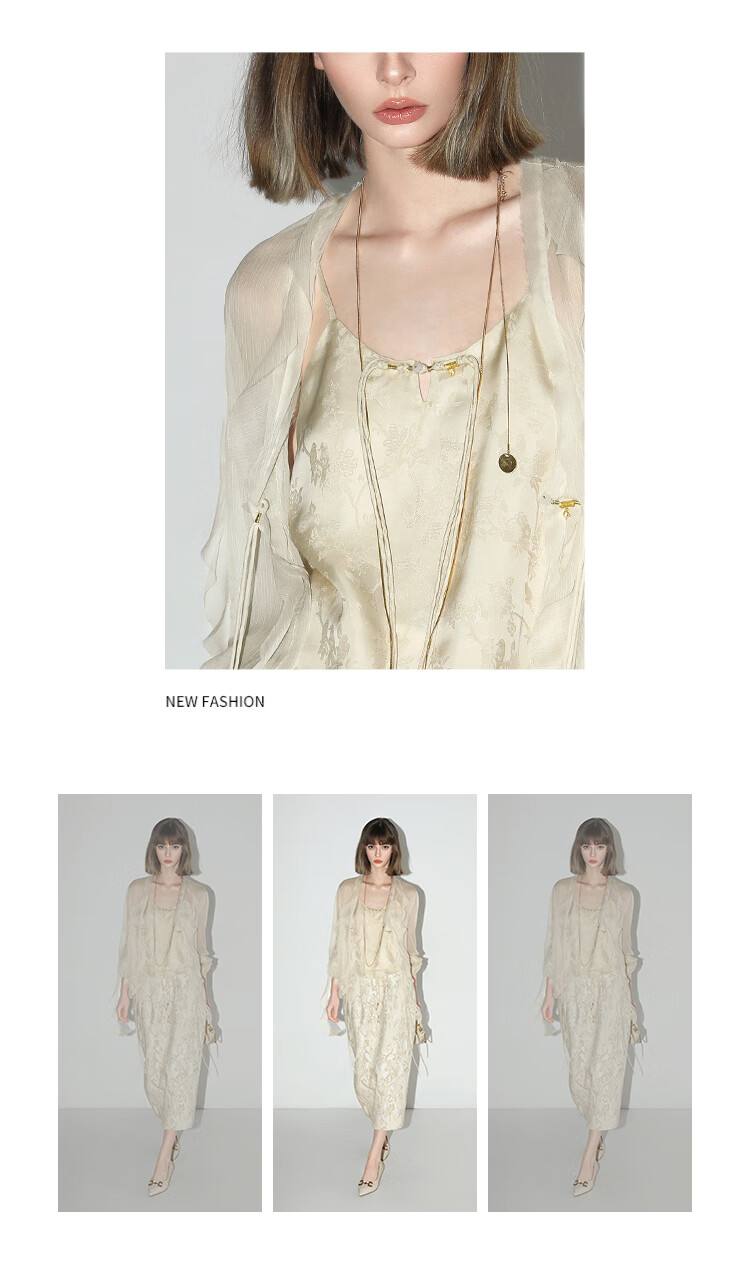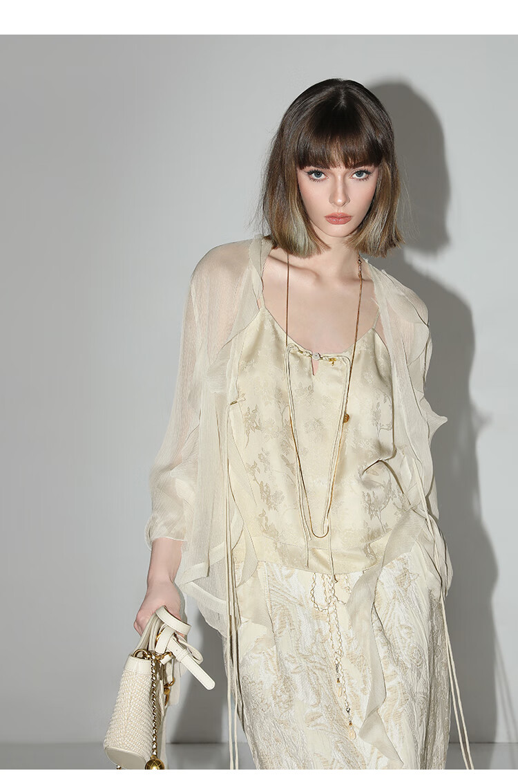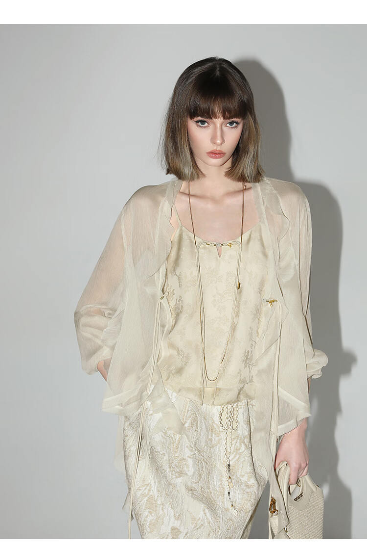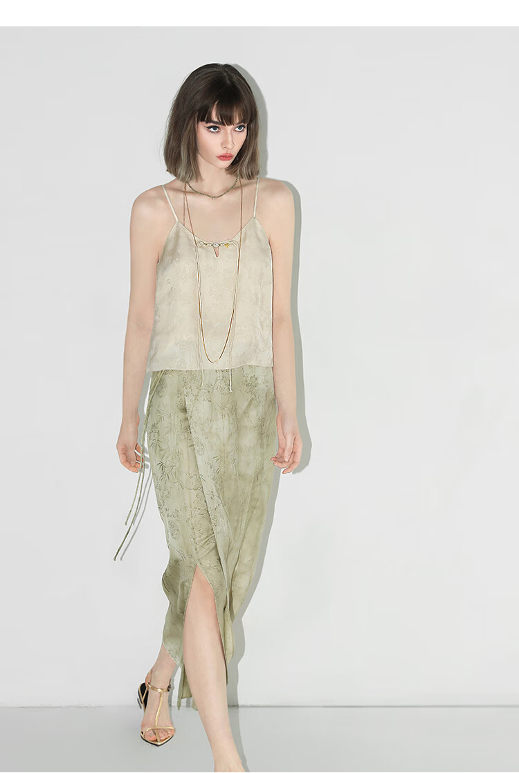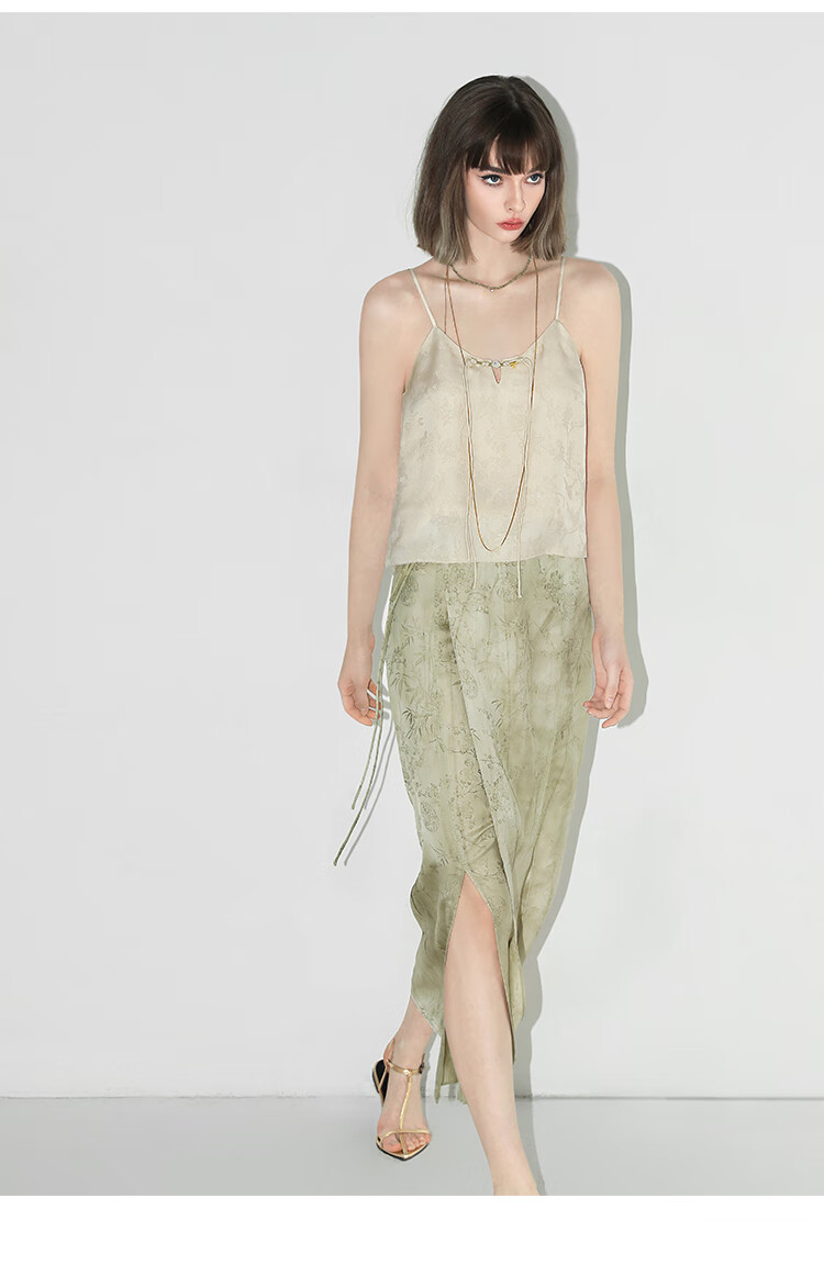 COCOBELLA新中式暗纹提花玉石盘扣人丝吊带对丝V领背心VT7001-2