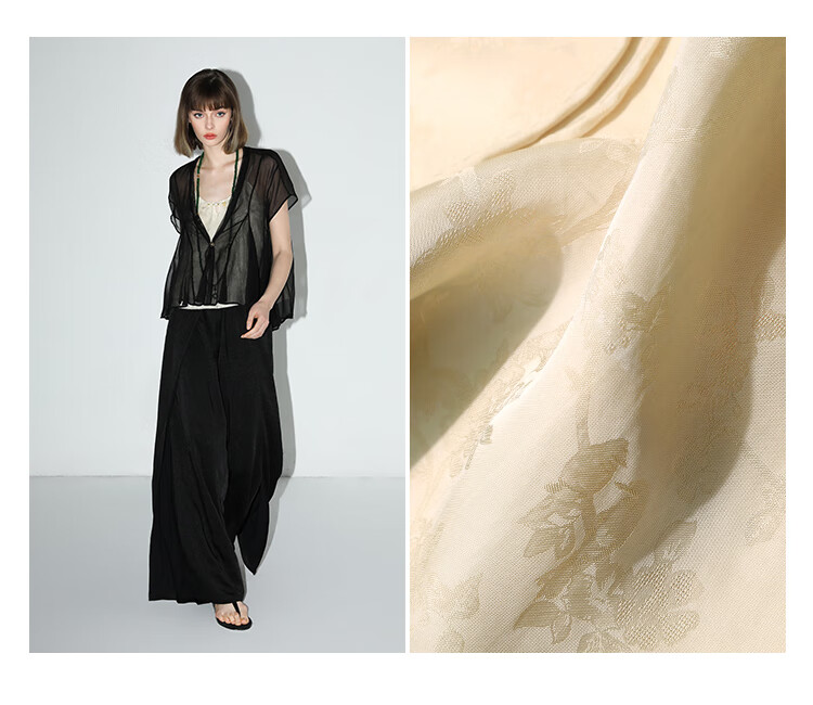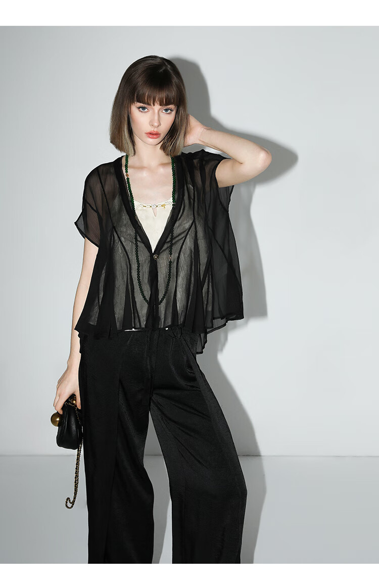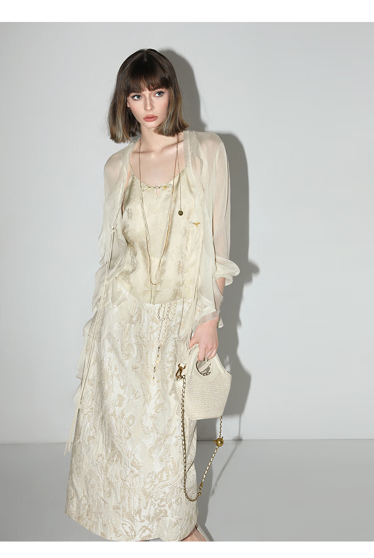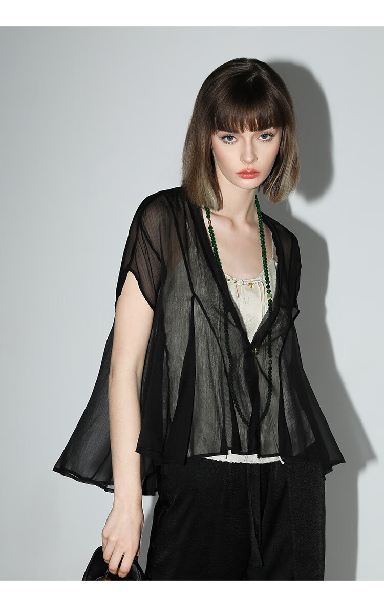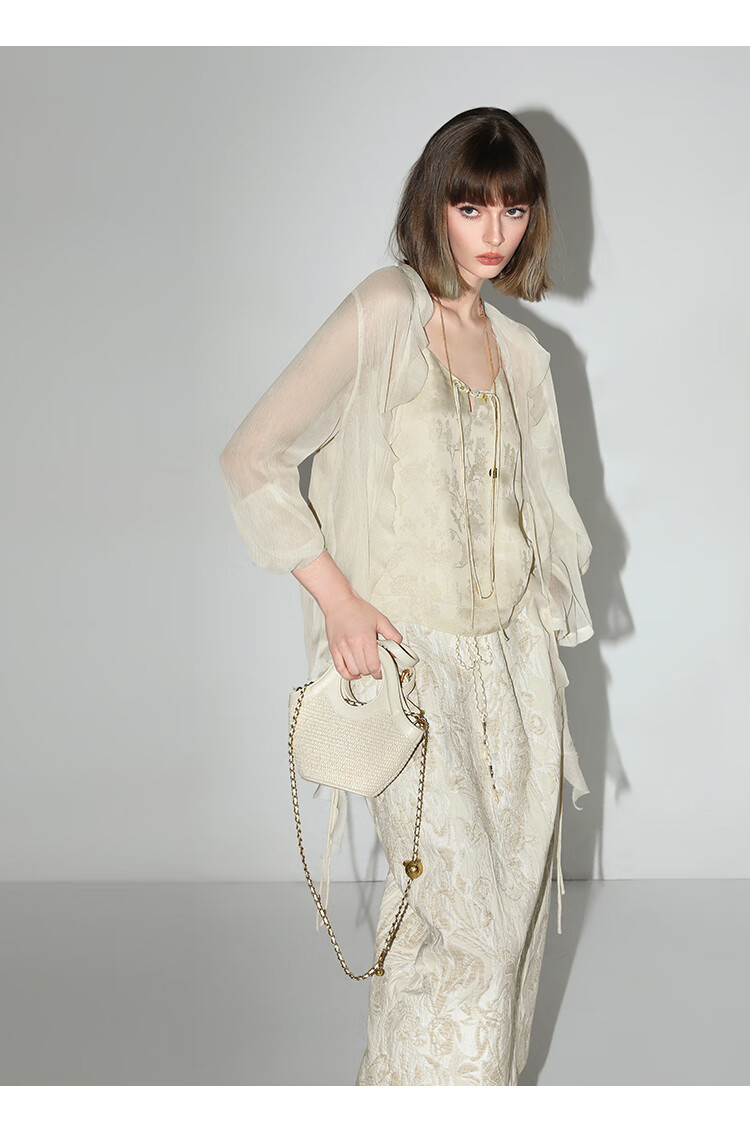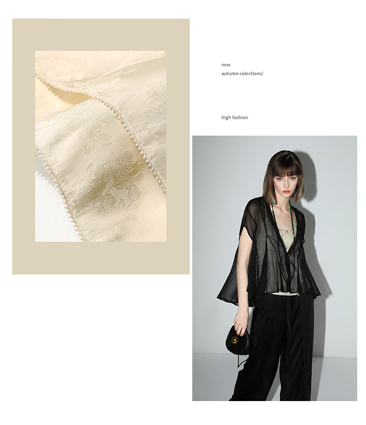 COCOBELLA新中式暗纹提花玉石盘扣人丝吊带对丝V领背心VT7001-2