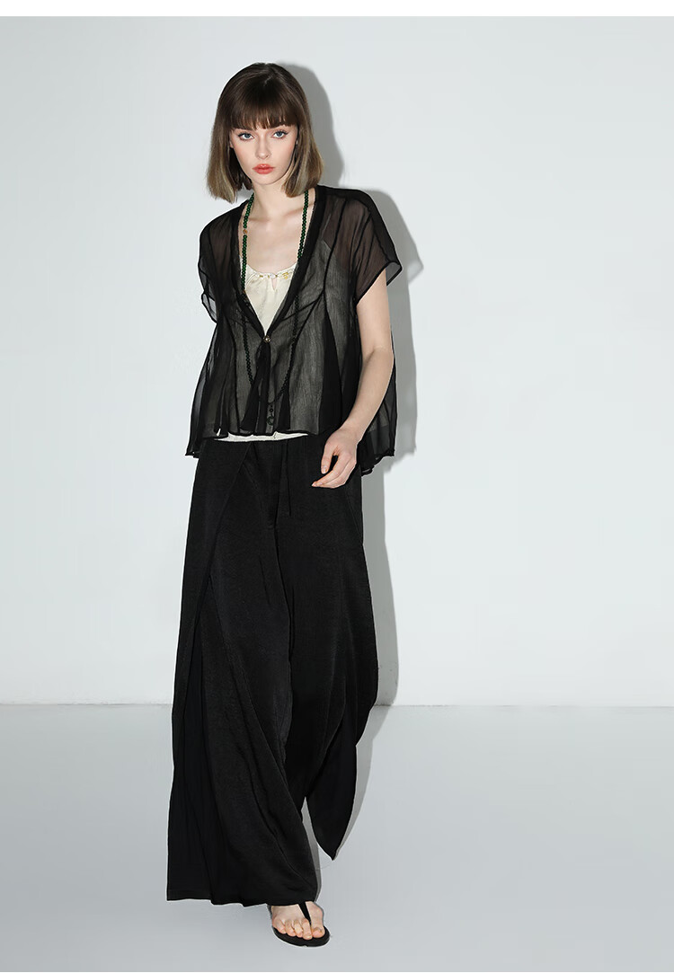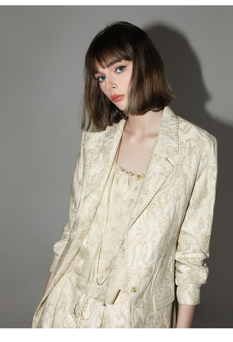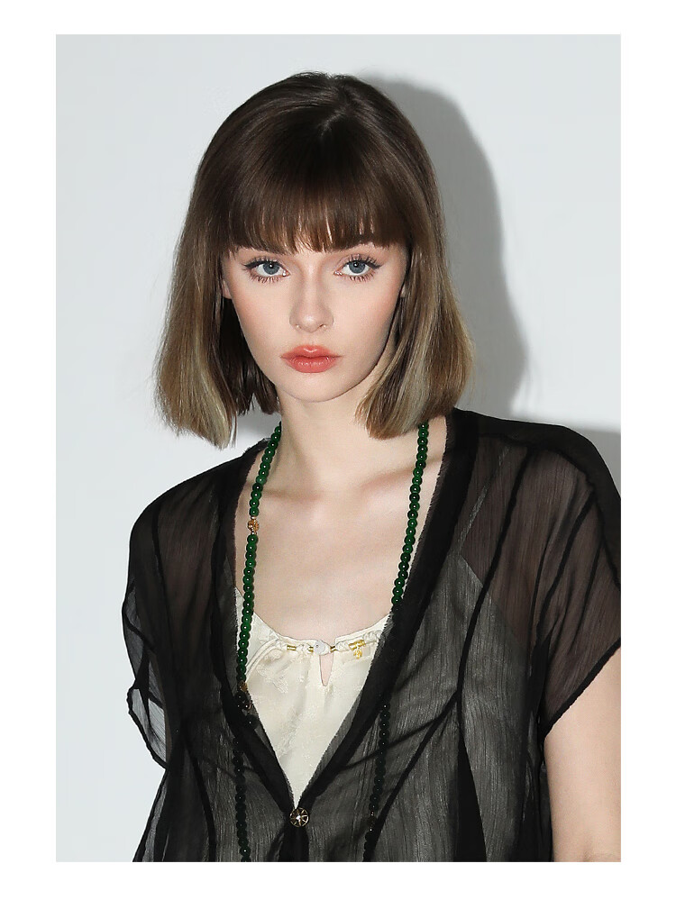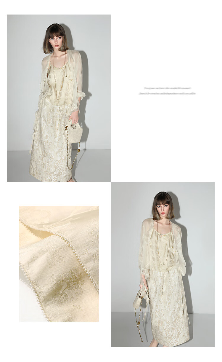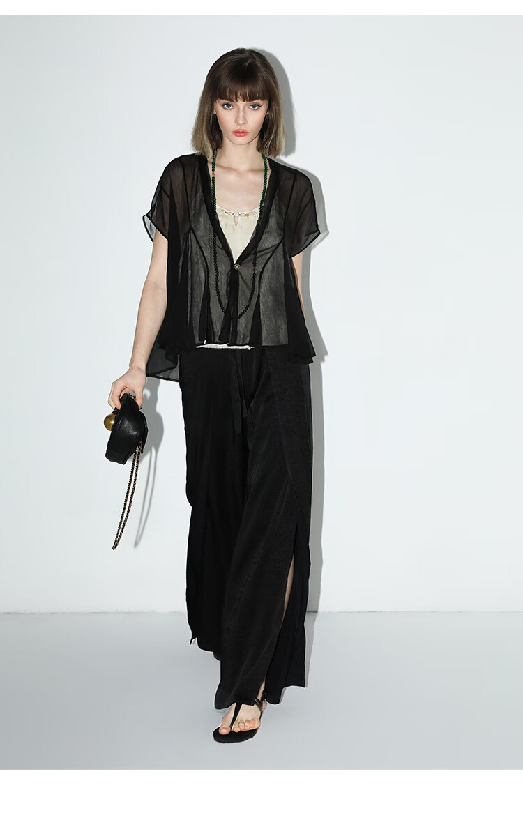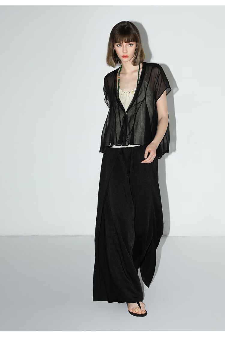 COCOBELLA新中式暗纹提花玉石盘扣人丝吊带对丝V领背心VT7001-2