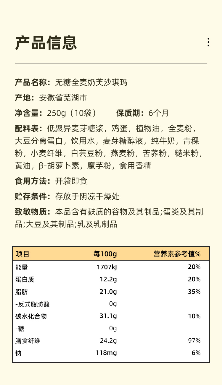 | 【商品名称】吉零 无糖全麦奶芙沙琪玛 |