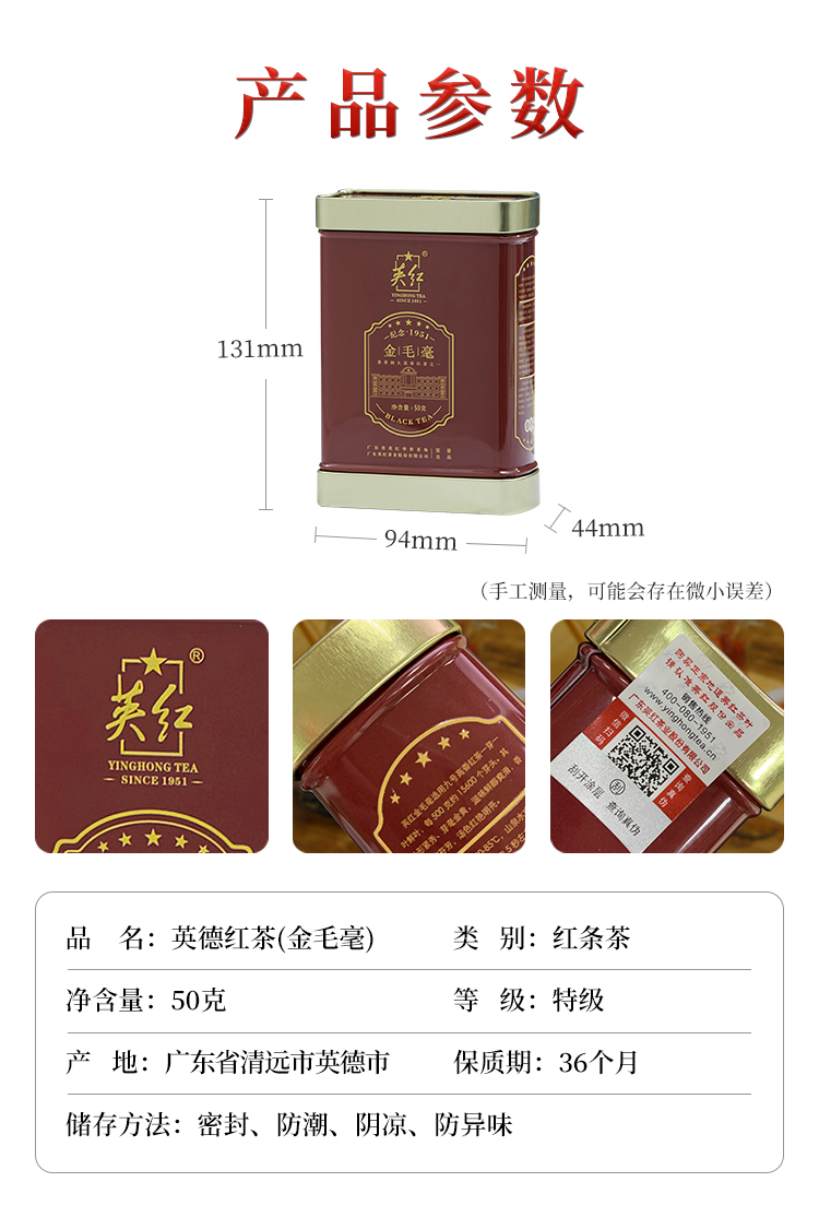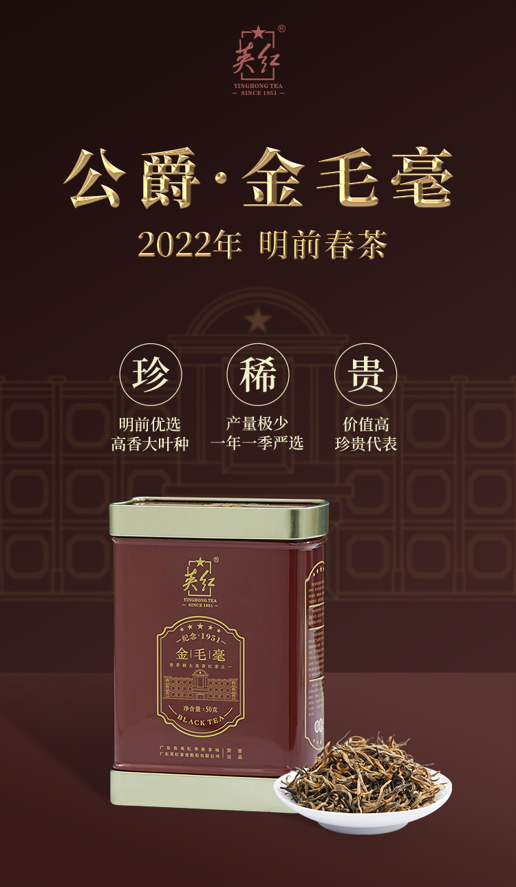 【上万颗芽头制出一斤茶】英红牌 2023明前春茶 特级金毛毫 高香有机红茶 英红九号 50g/罐(京东同款)