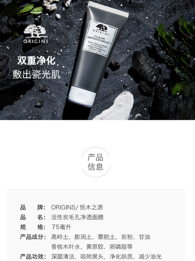 【保税仓】美国ORIGINS悦木之源 活性炭毛孔净透面膜 75ml(有效期至2026年7月)