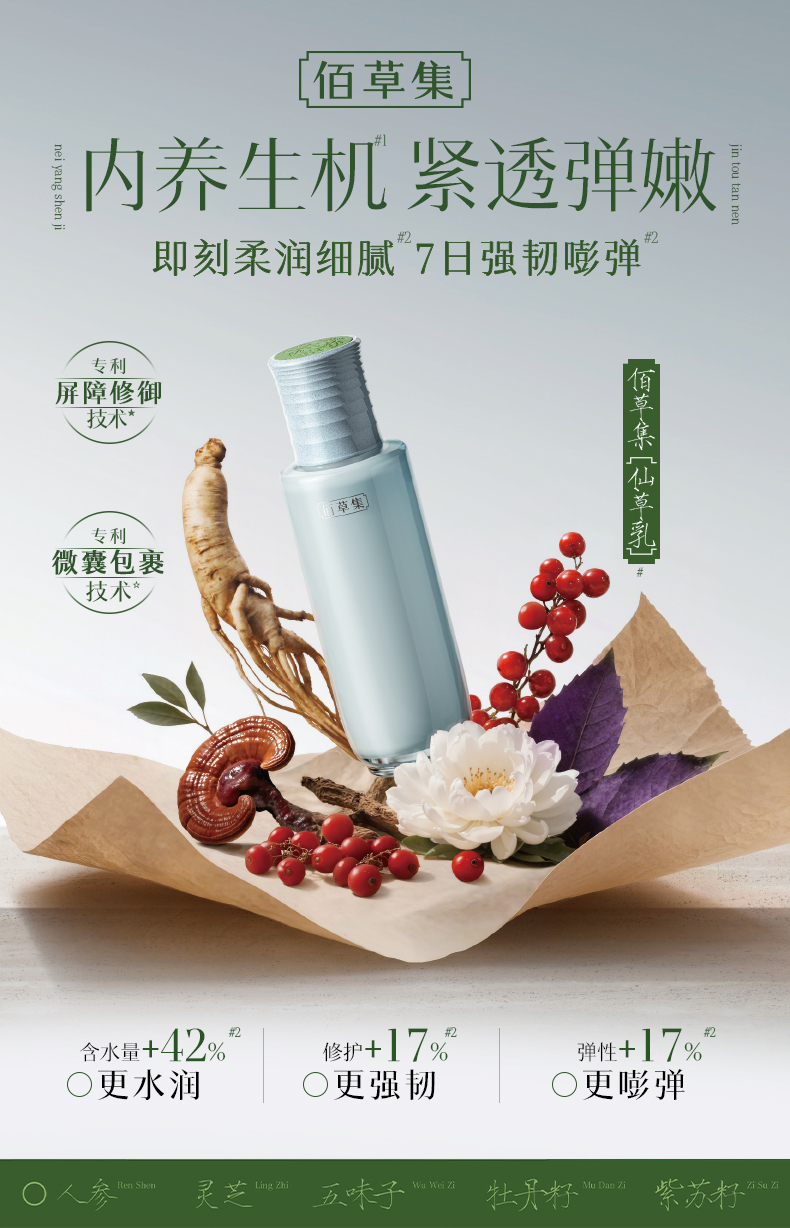 【新品·仙草乳】佰草集修源五行淡纹修护乳液 抗皱紧致保湿精华乳