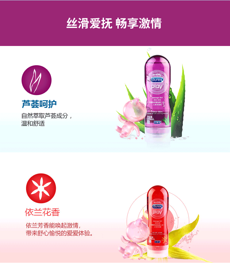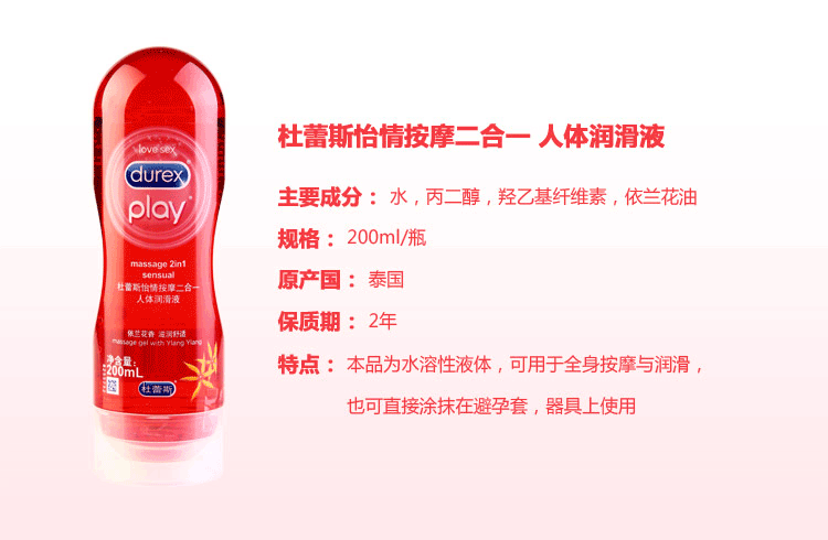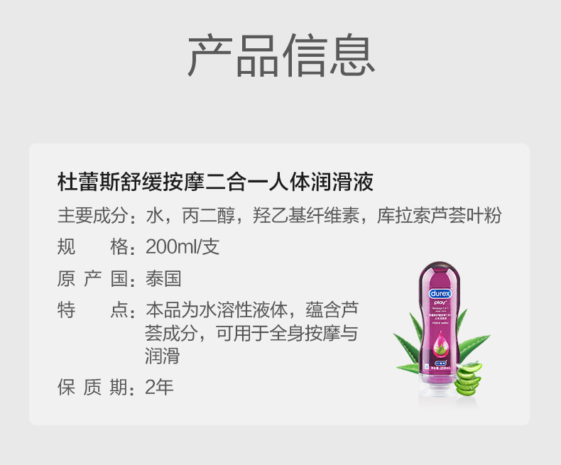 杜蕾斯 舒缓怡情按摩润滑油 芦荟/依兰花香 200ml