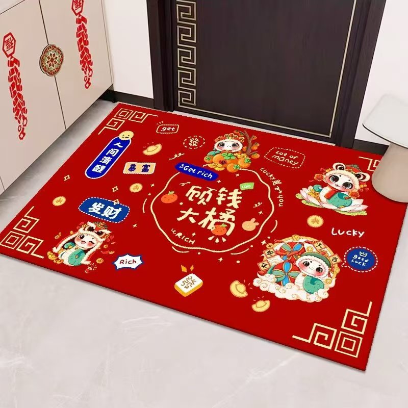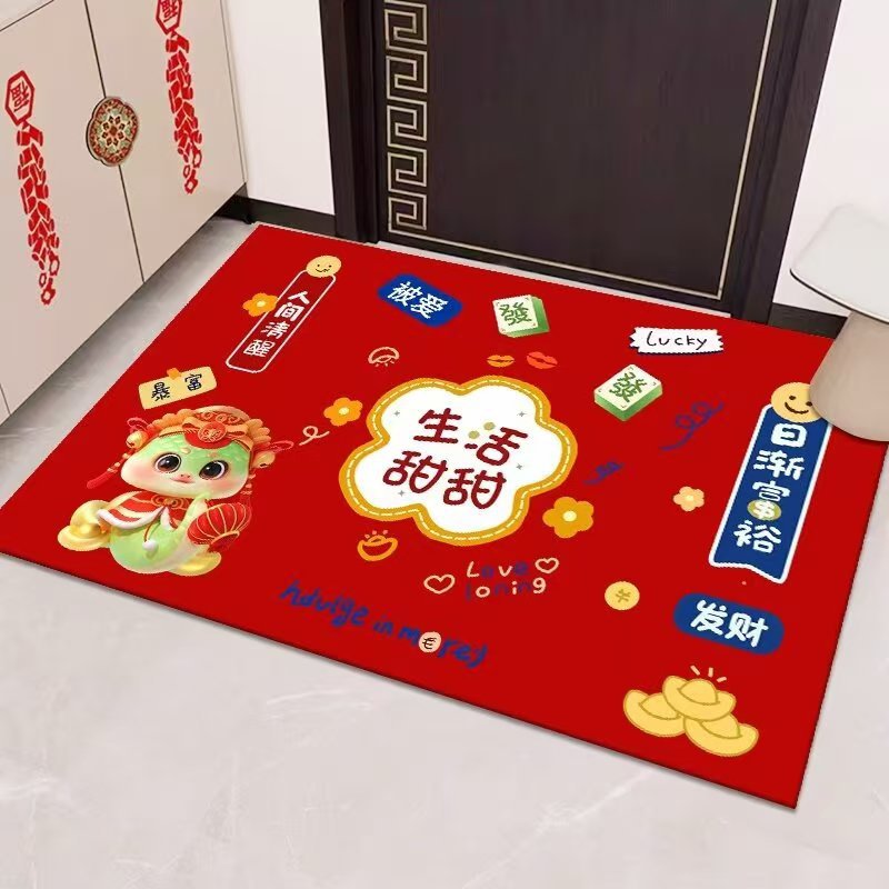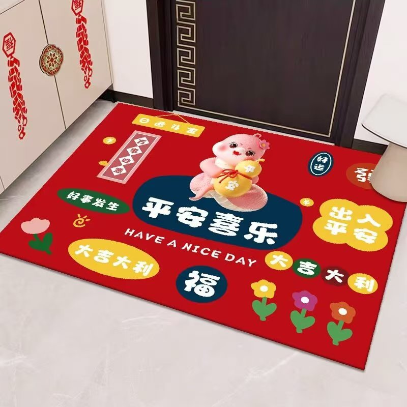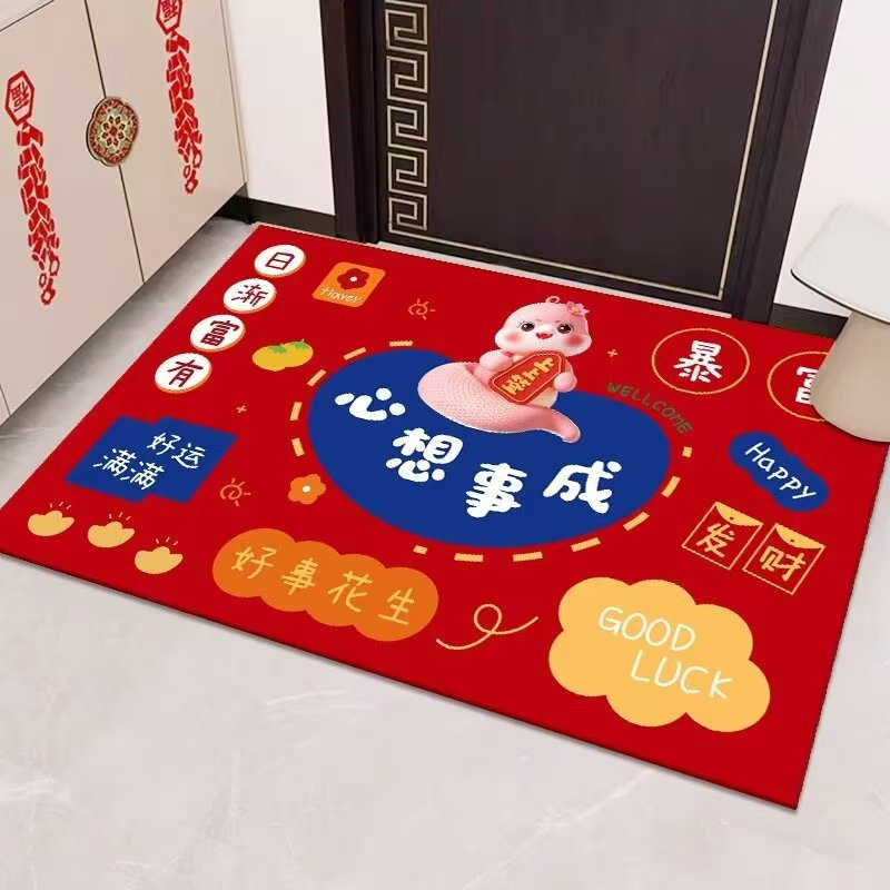 新年水晶绒入户门地垫进门玄关TPR底可裁剪脚垫门口耐脏防滑地
