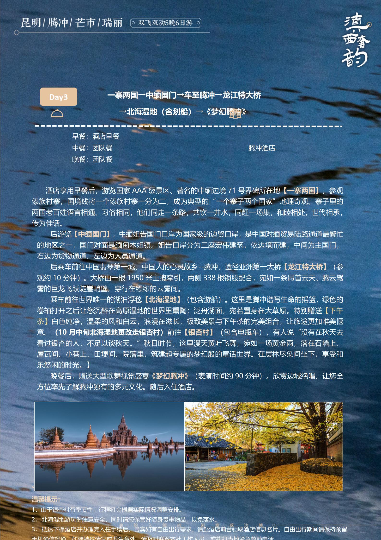 滇西奢韵腾冲芒市6天5晚高端纯玩游
