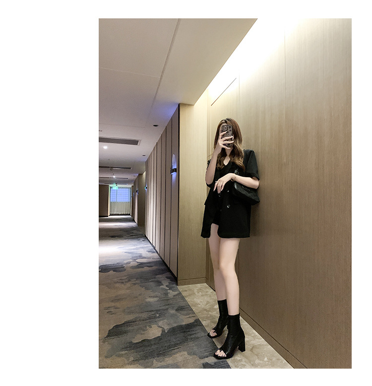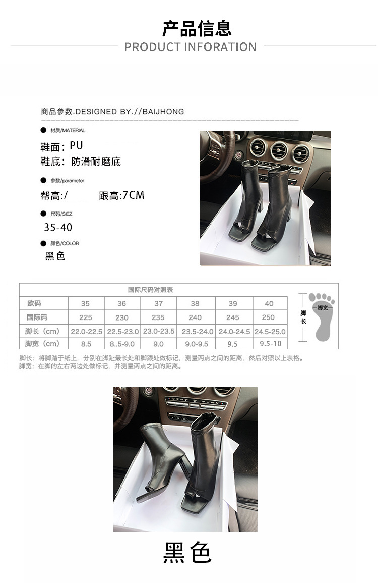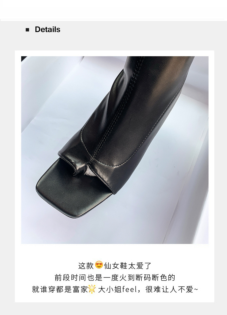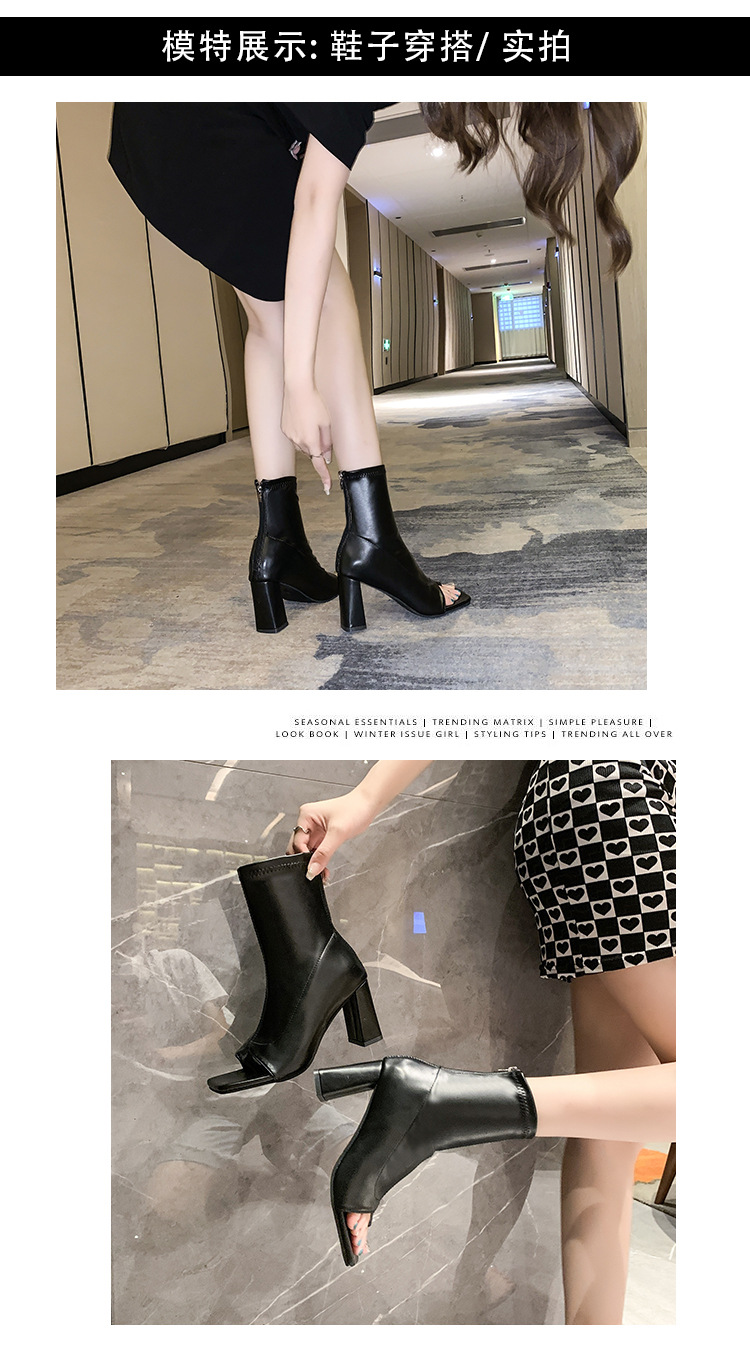 高跟短靴女2024秋冬新款夹趾透气弹力套筒鱼嘴粗跟凉靴显瘦女靴子