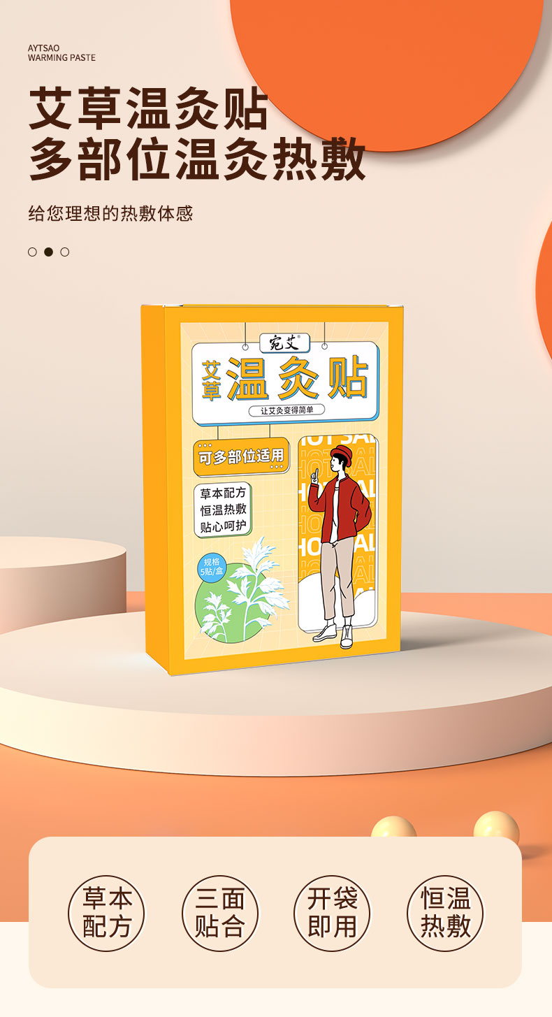 艾草温灸贴艾贴 自发热温控肩颈腰腹膝热敷艾灸贴 生姜艾草温灸贴