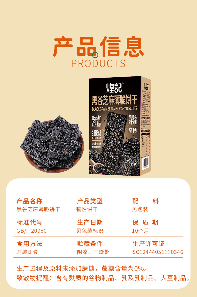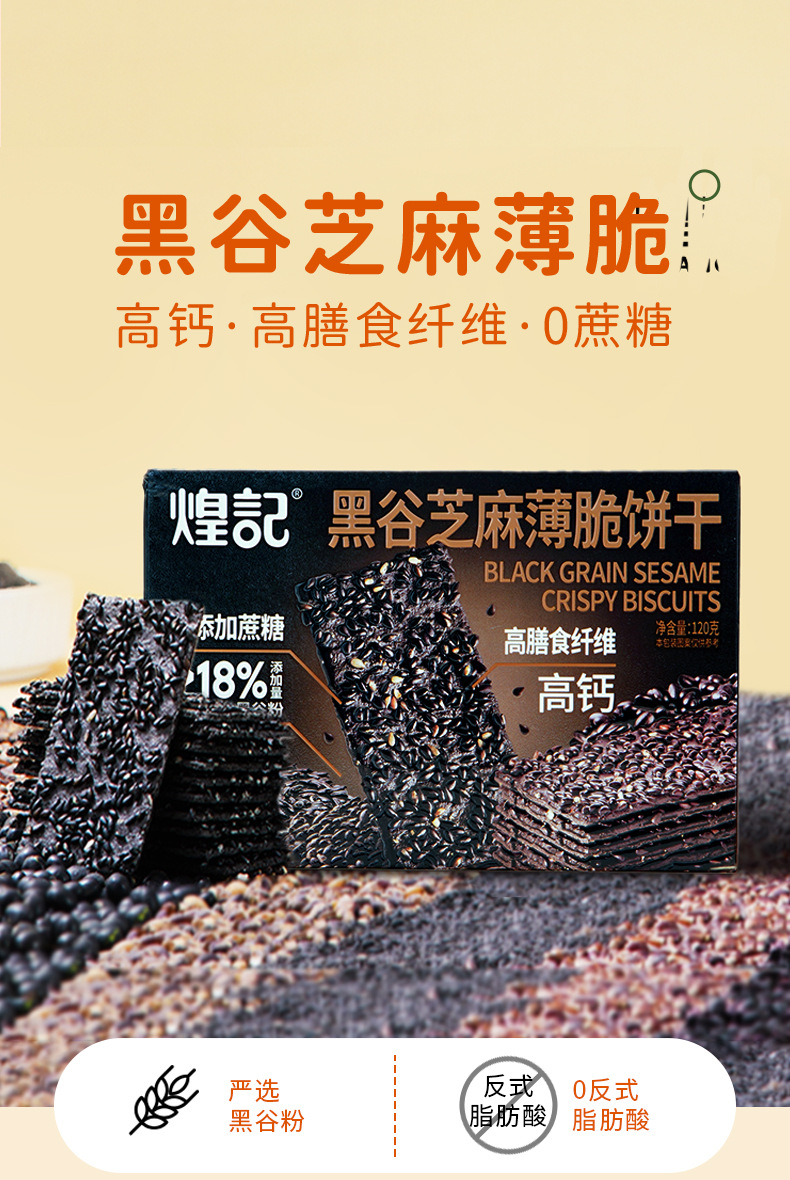 拍一发三煌记黑谷芝麻薄脆饼干120g盒装办公休闲解馋零食新款新品办公室休闲零食童年记忆故乡小吃零食