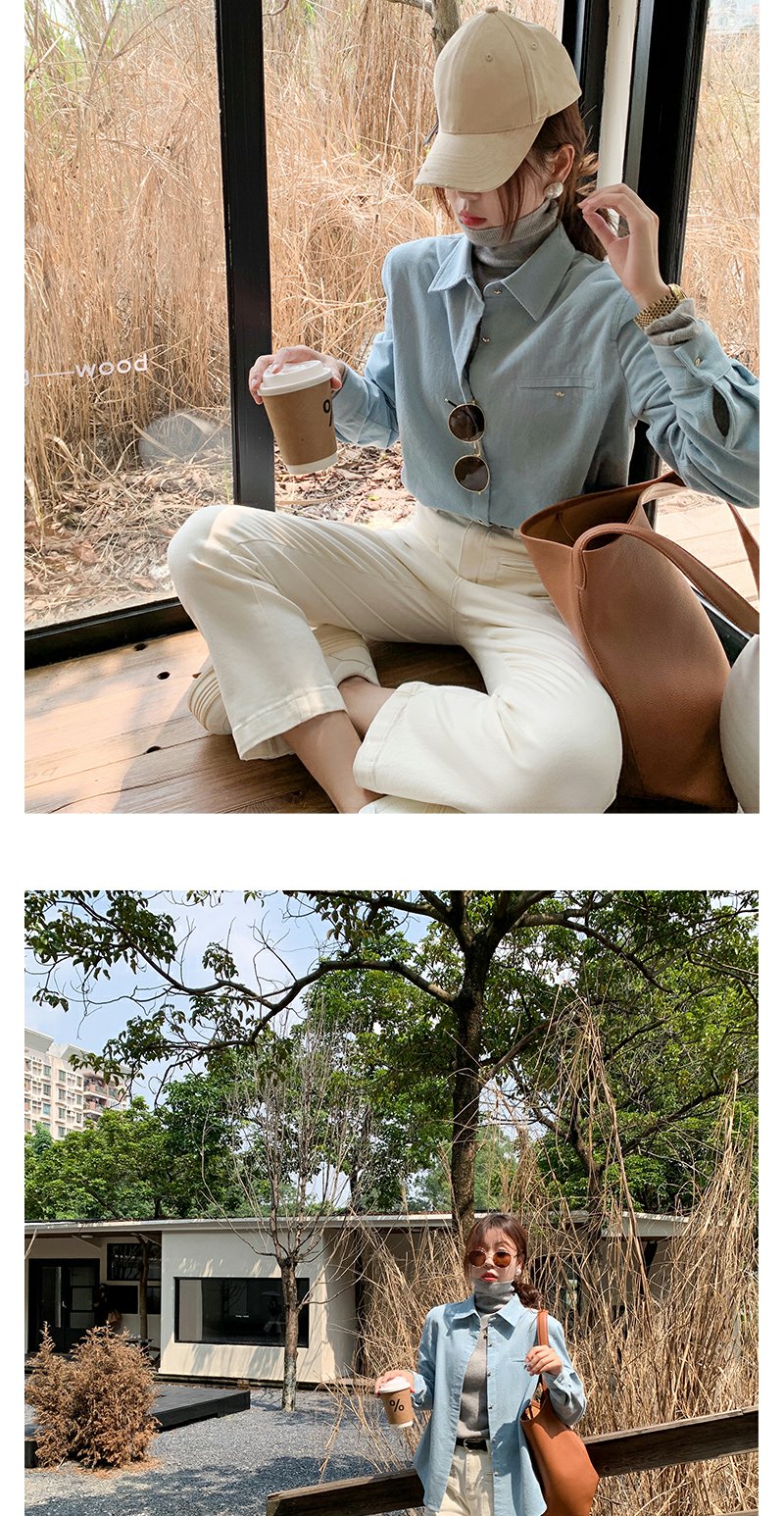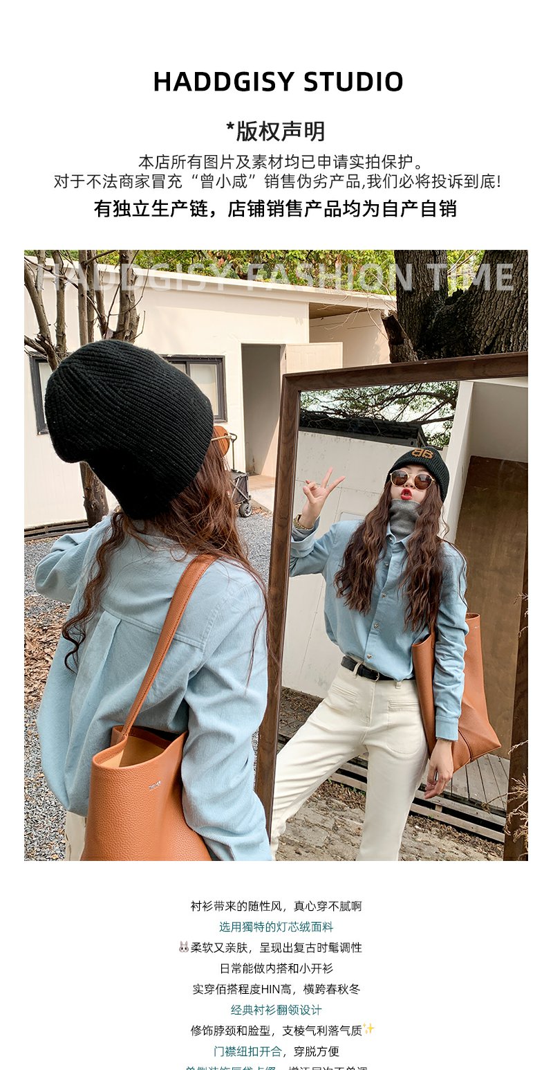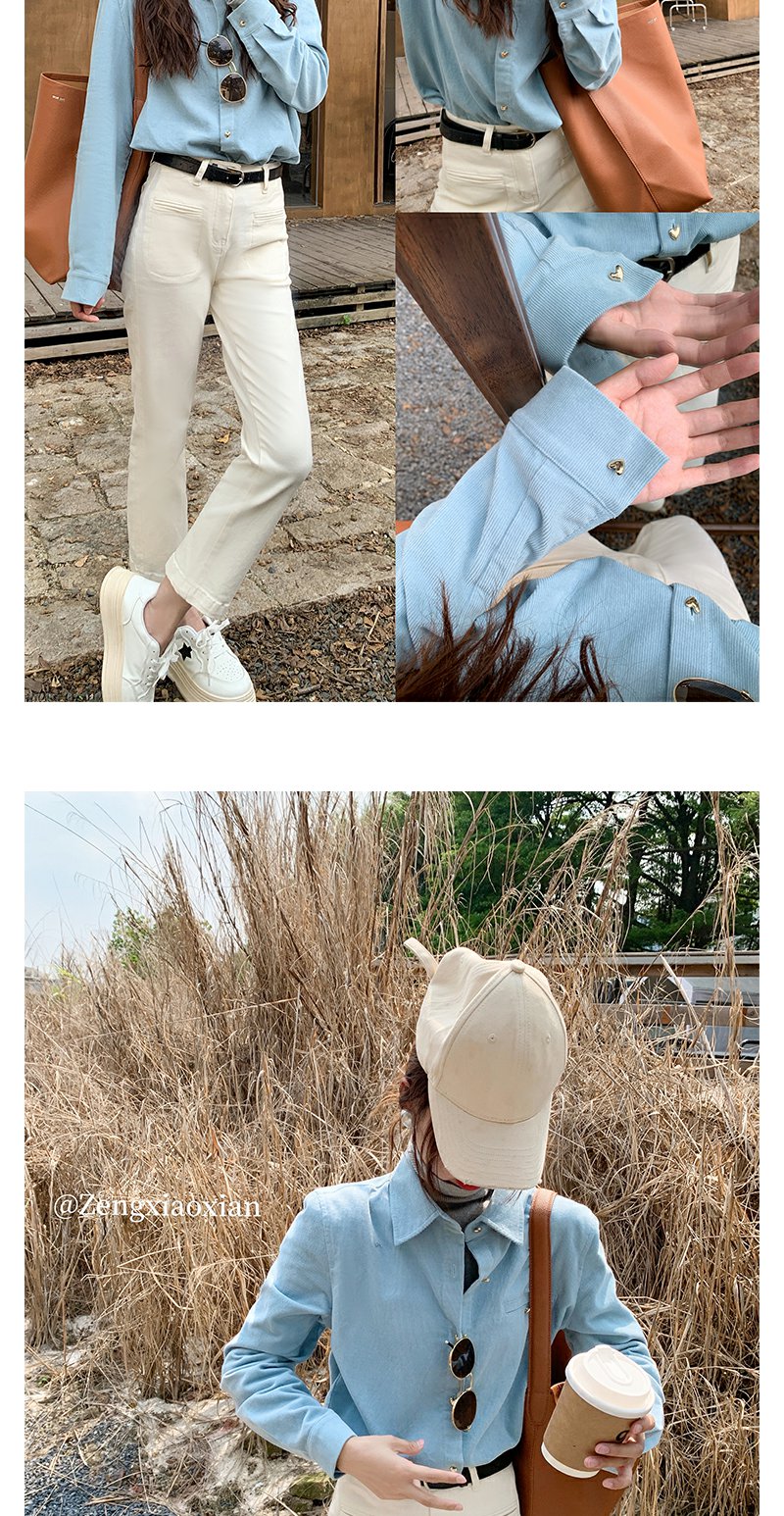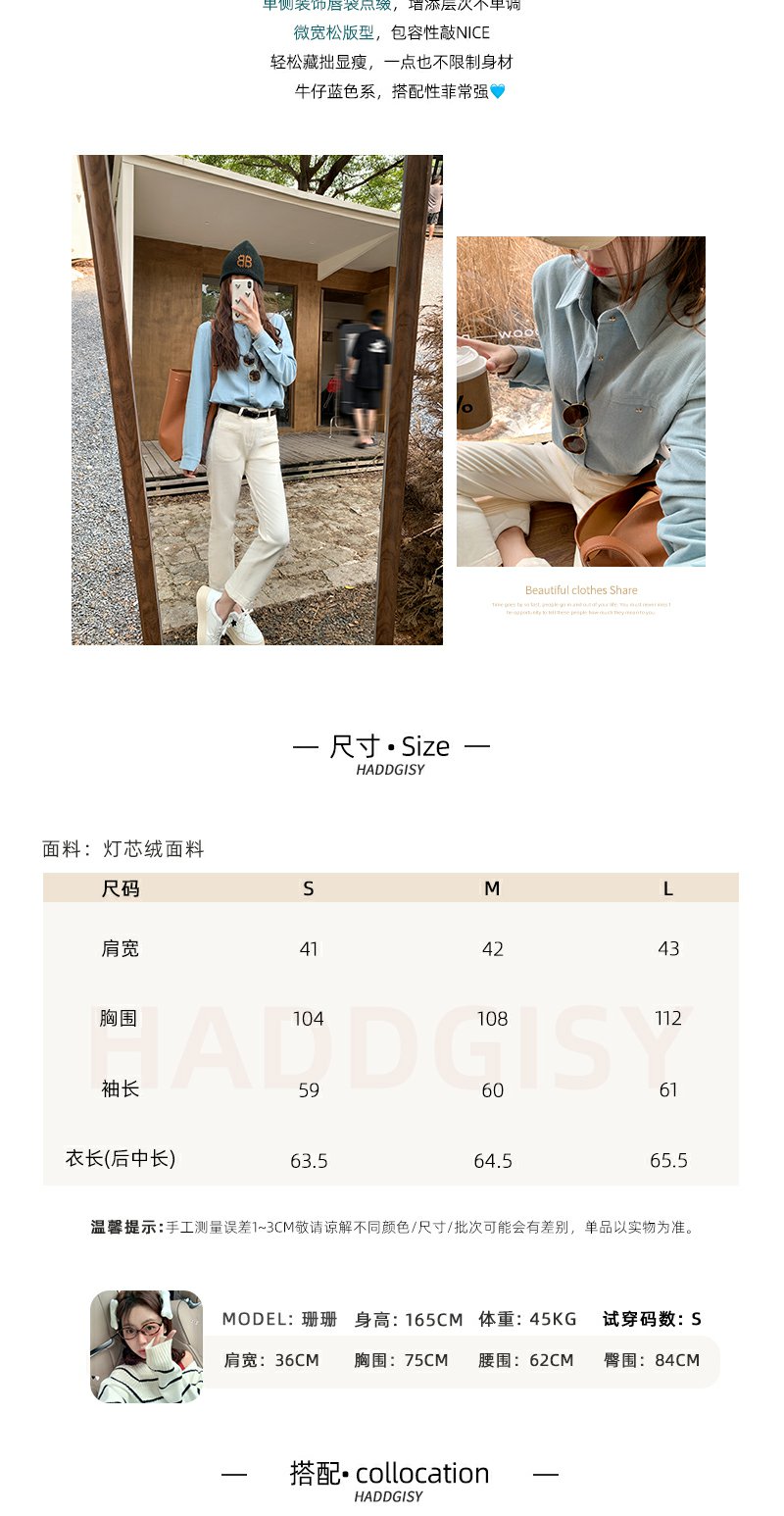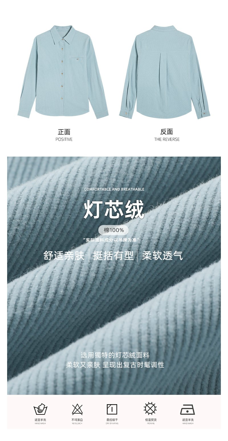 <曾小咸推荐>韩版灯芯绒长袖POLO领衬衫