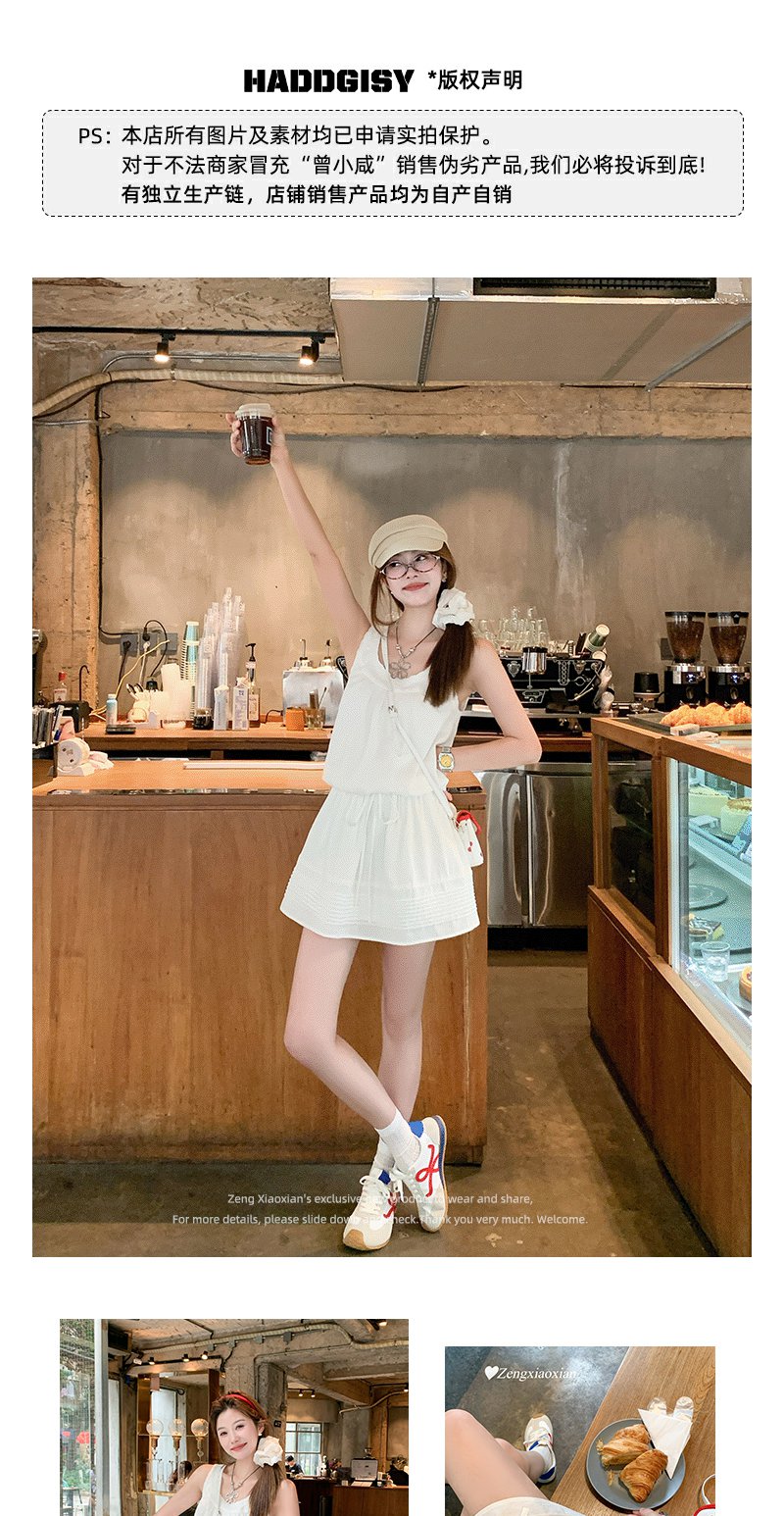 【169元任选2件】最后一波现货!韩系甜美白色蕾丝领口背心连衣裙