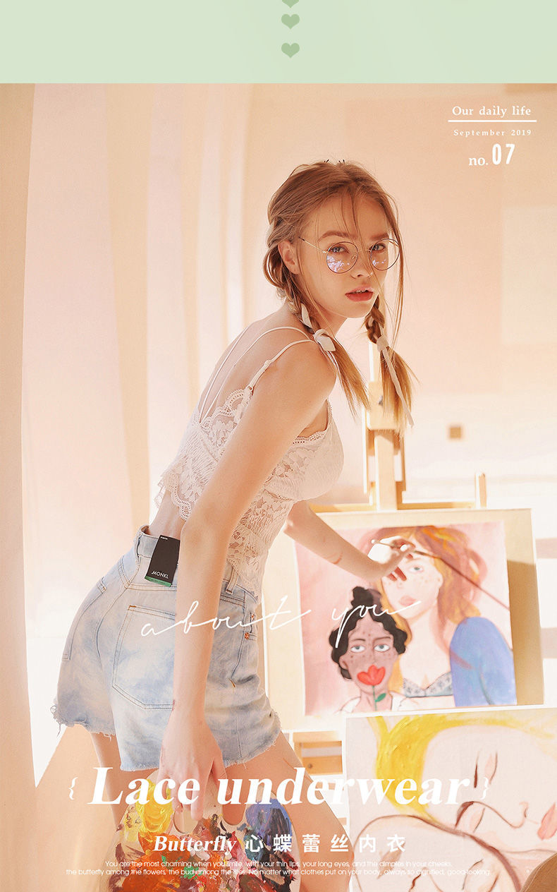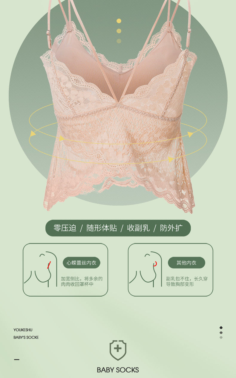 2021妖精可可心蝶蕾丝美背聚拢收副乳燕尾式吊带Butterfly心碟内衣