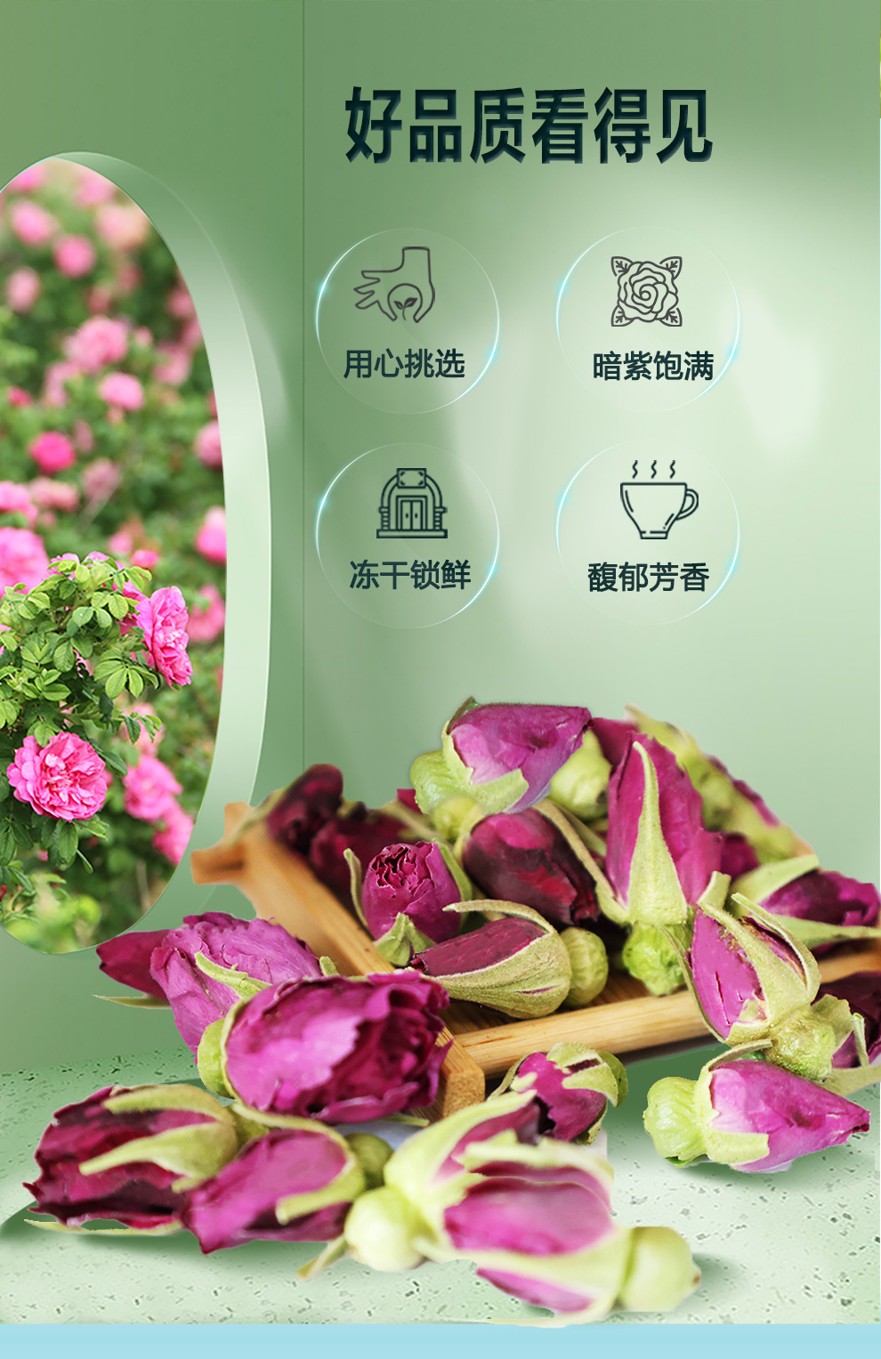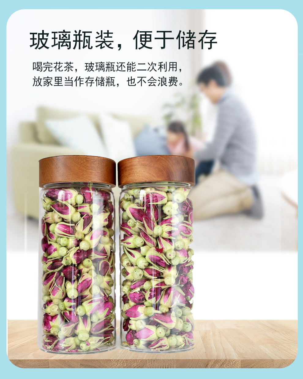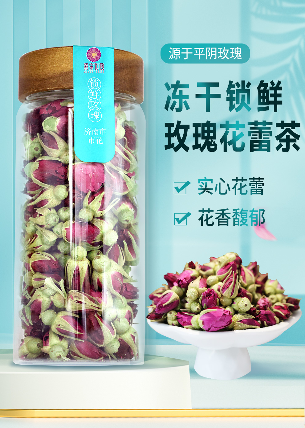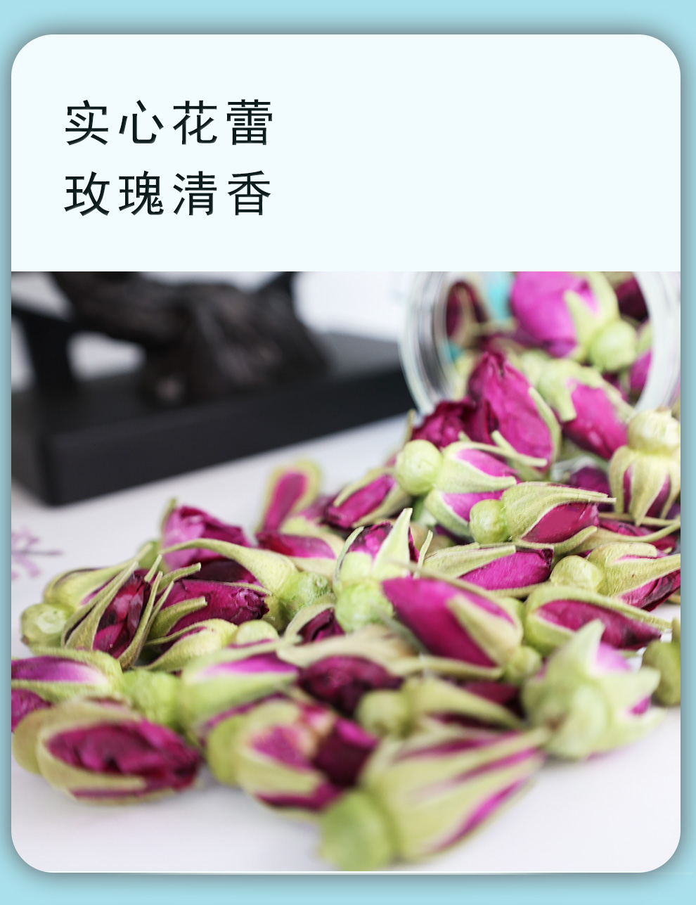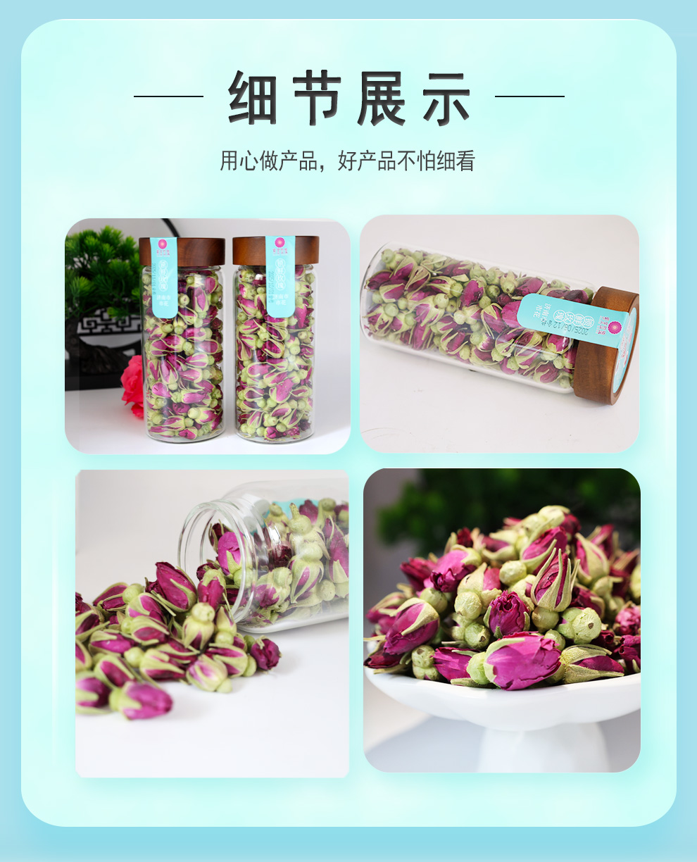 冻干玫瑰干花蕾70g圆玻璃瓶装