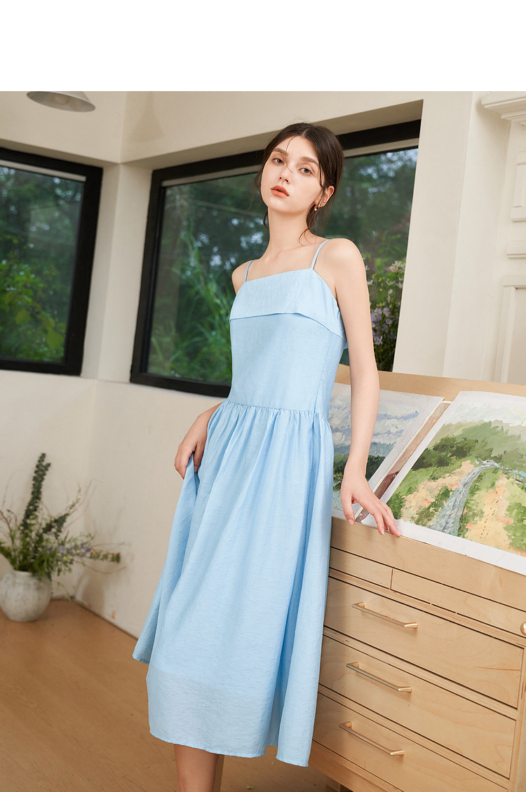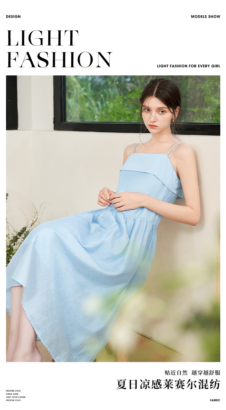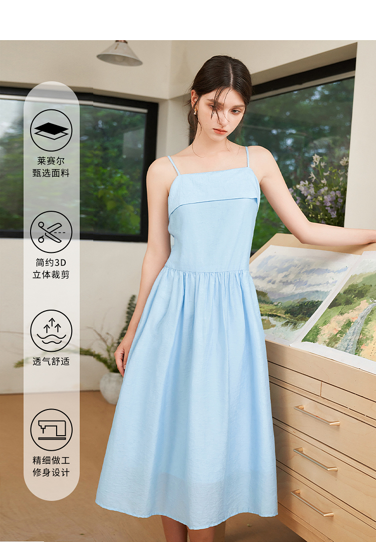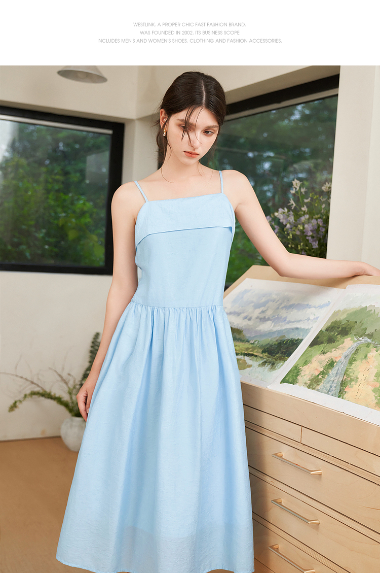 休闲甜美少女风随性连衣裙女春夏季宽松可调节吊带裙V1140880