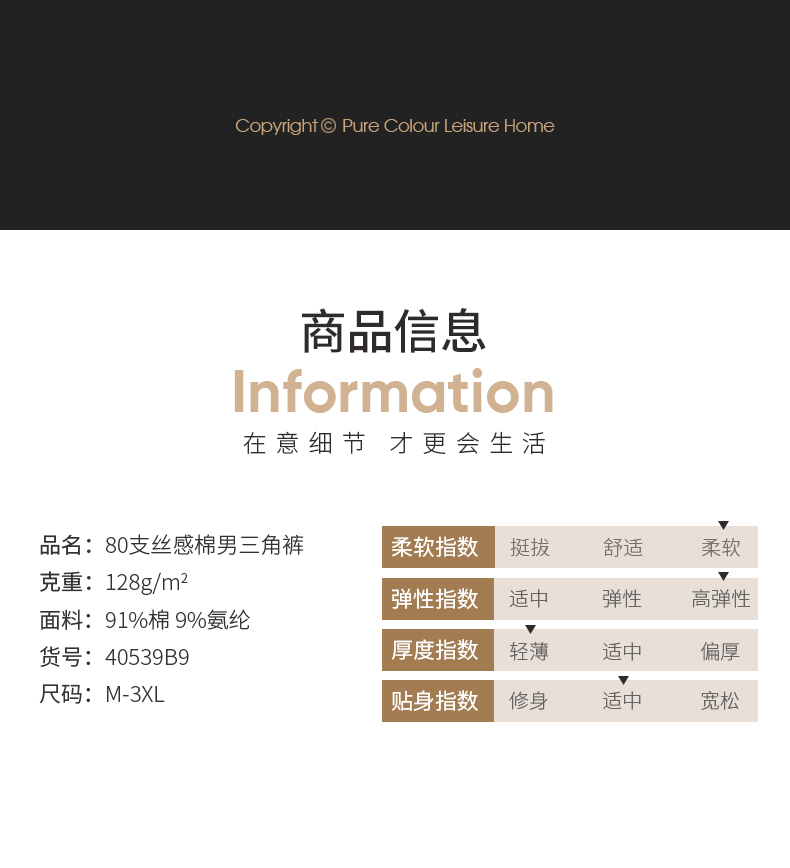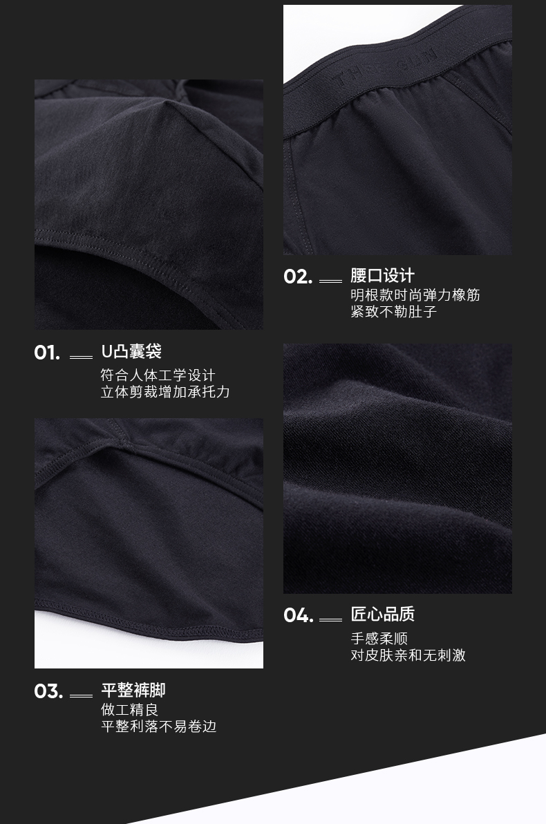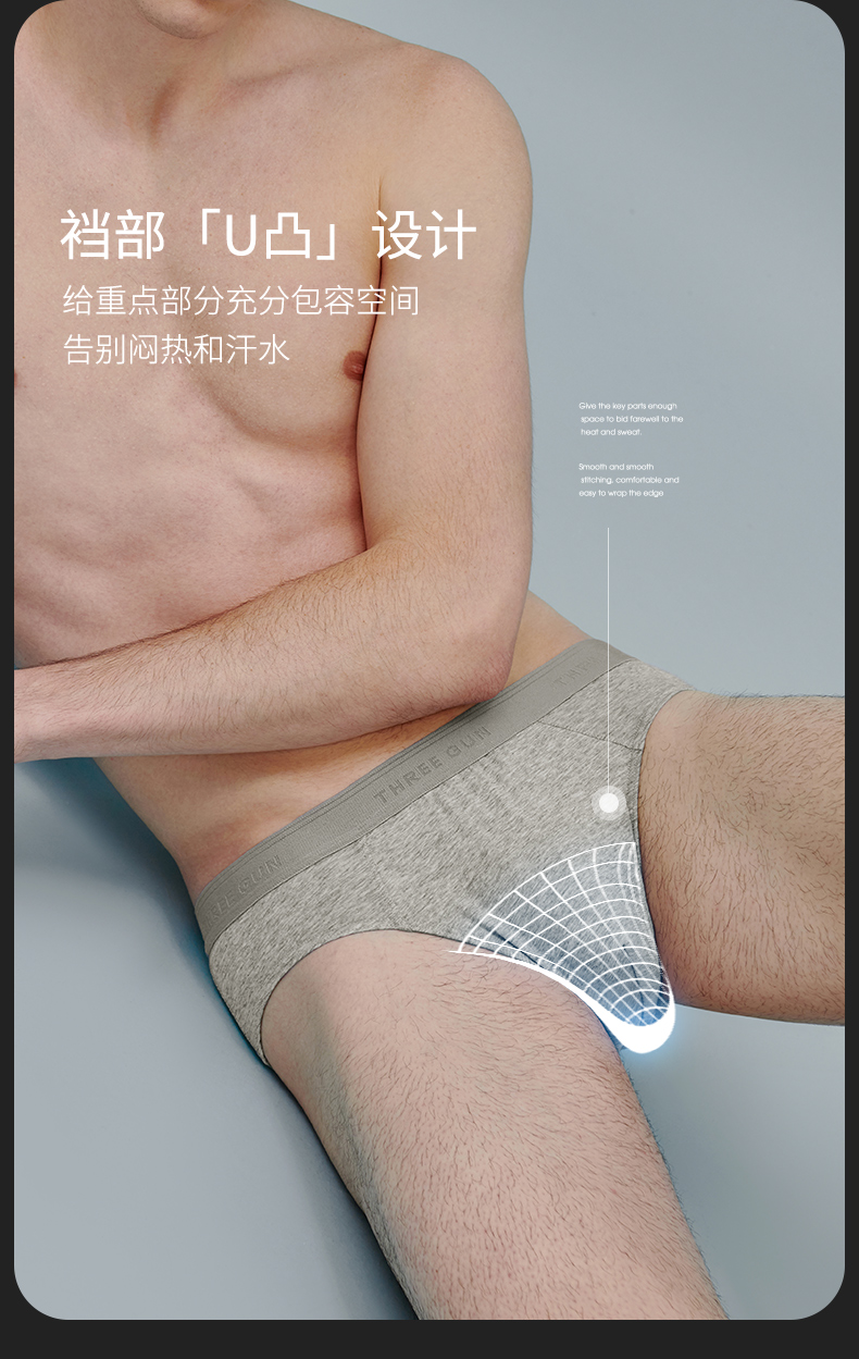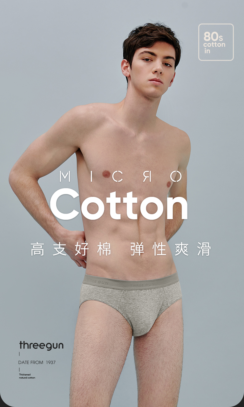 Threegun三枪【匠心系列-80支长绒棉】男士三角内裤(1条装)-40539B911