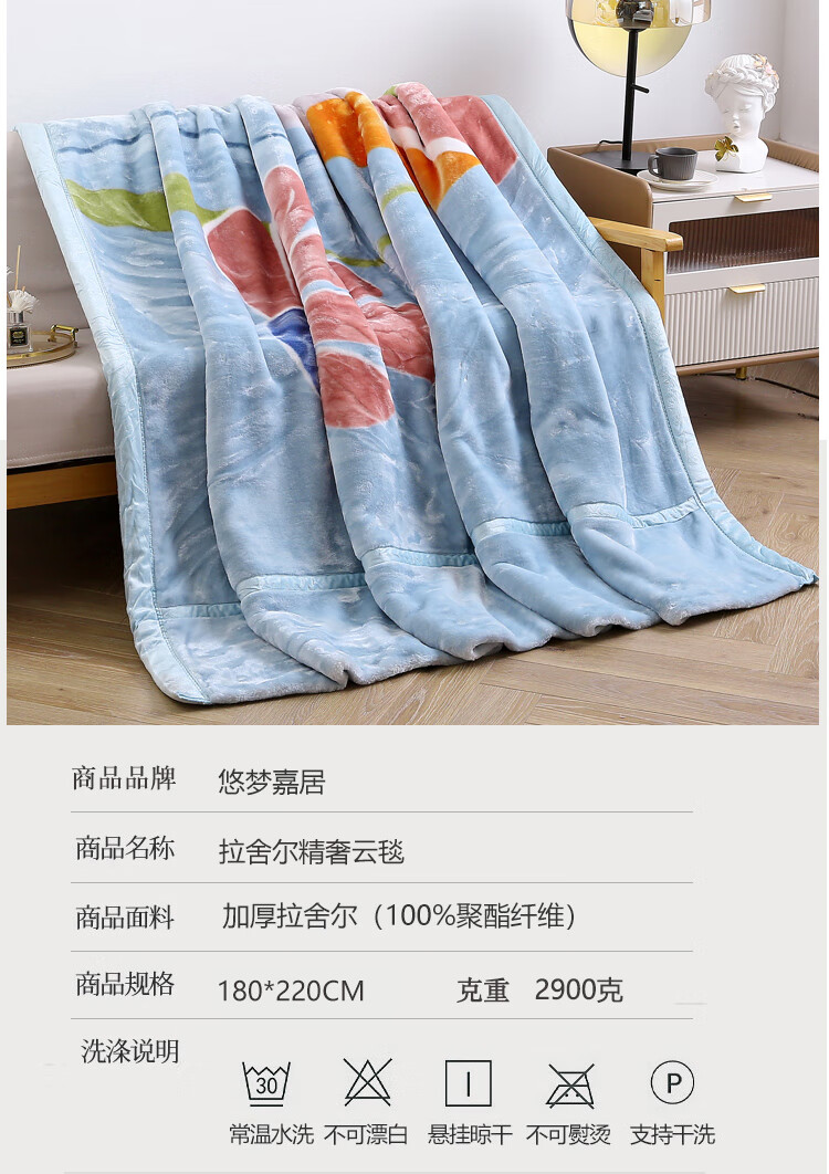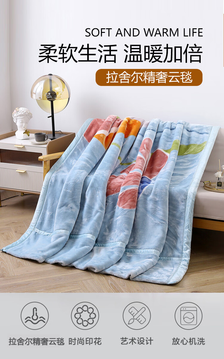 【多样屋专柜】悠梦嘉居拉舍尔精奢云毯加倍保暖相守几何200*230cm
