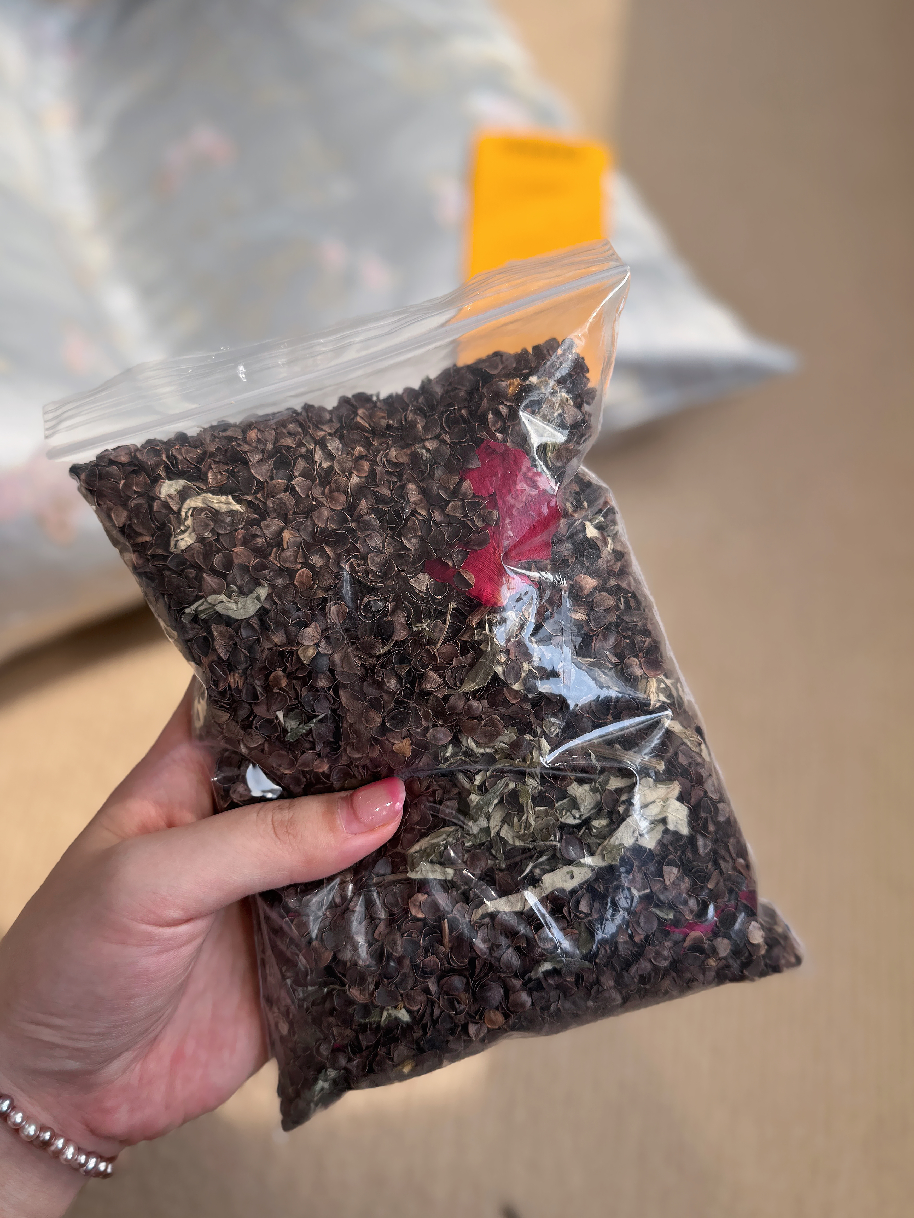 内里填充了:甜荞麦壳、薰衣草、决明子、陈皮、玫瑰花、女贞子、山苍子、朱砂共8味珍贵的草本植物!