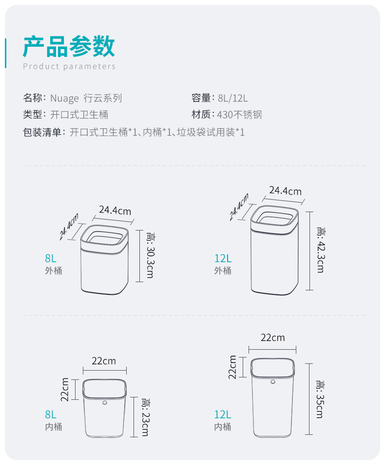 优百纳行云系列8L开口卫生桶