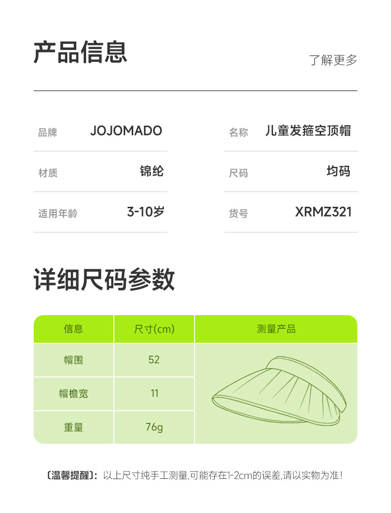 「环绕式大帽檐!四色可选」儿童帽子夏季防晒遮阳空顶帽 宝宝大帽檐太阳帽配饰