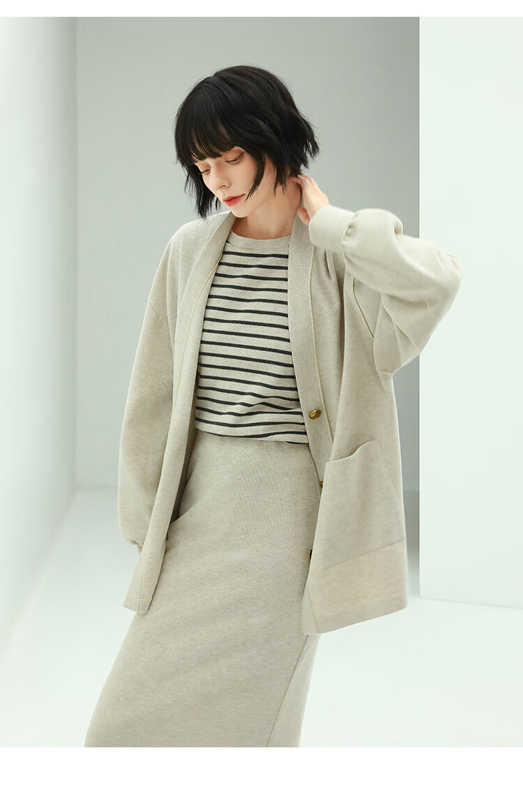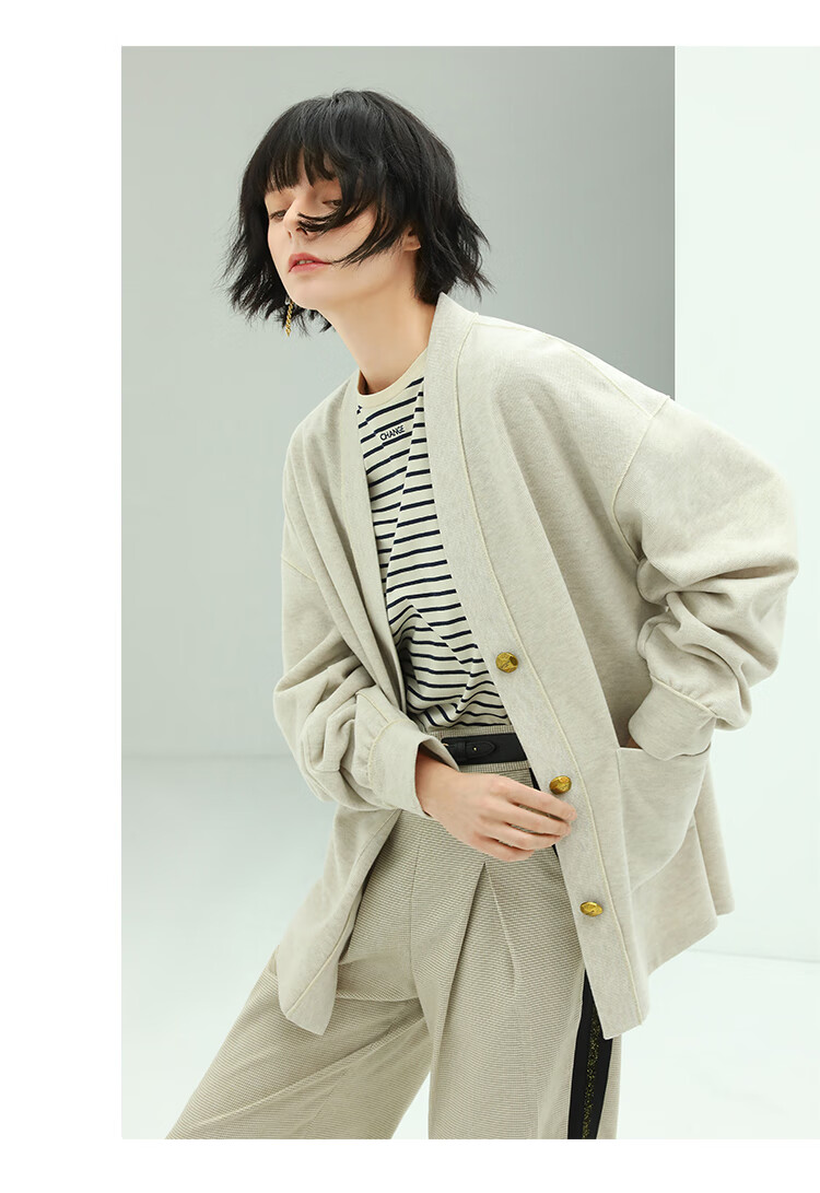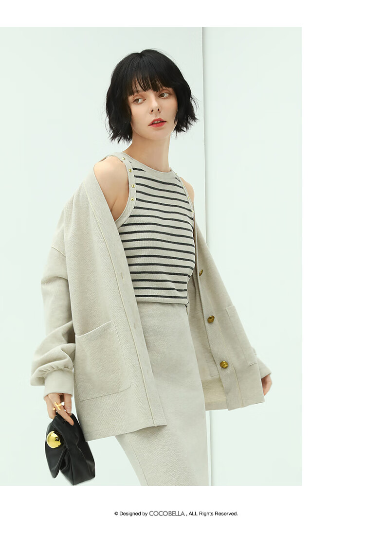 COCOBELLA金属扣针织棒球服女千金风宽松休闲开衫外套SC77