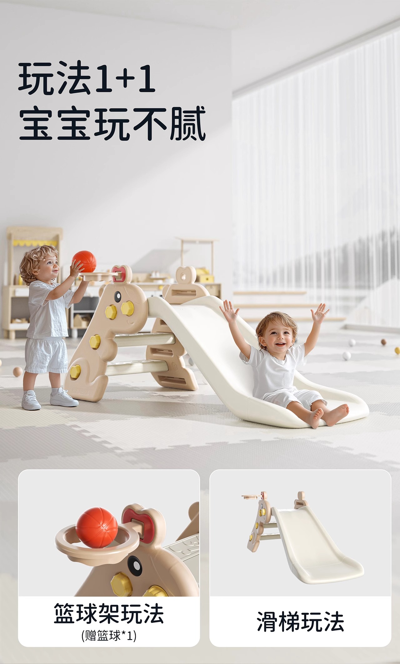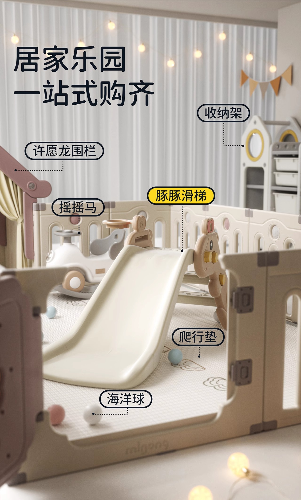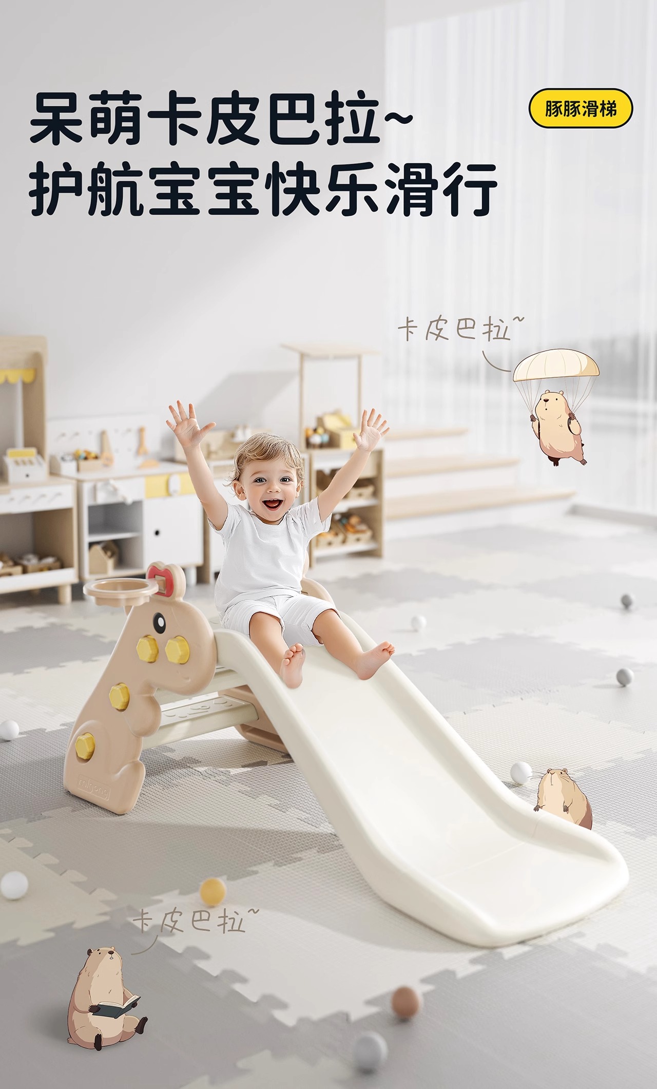 【冬日暖拥】曼龙mloong豚豚滑梯儿童室内家用玩具宝宝可折叠家庭游乐场婴儿周岁礼物