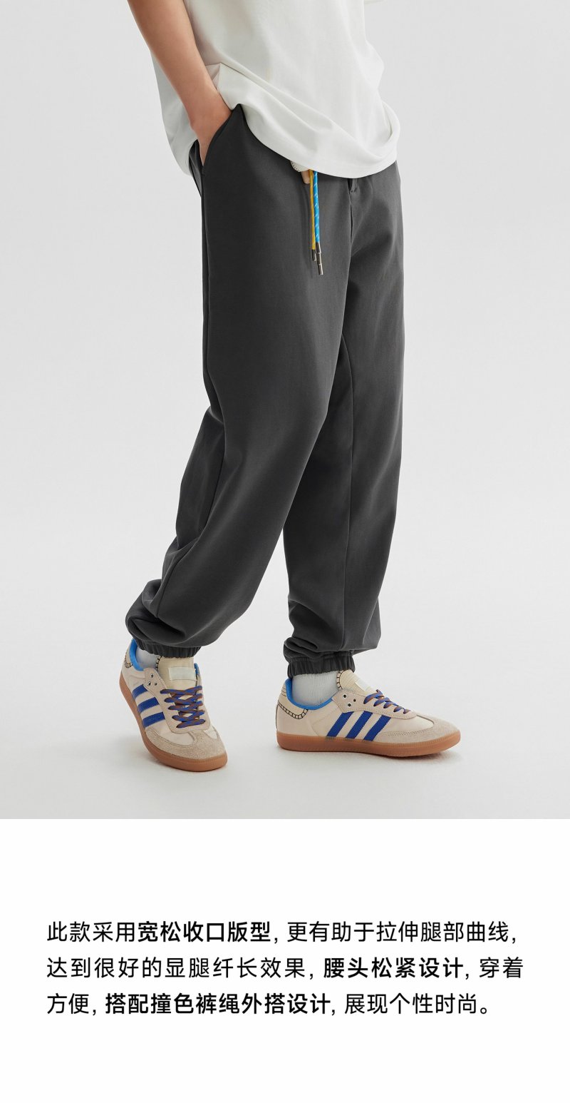 CHINISM折扣季 撞色裤绳纯棉束脚卫裤男秋季运动男生宽松休闲裤