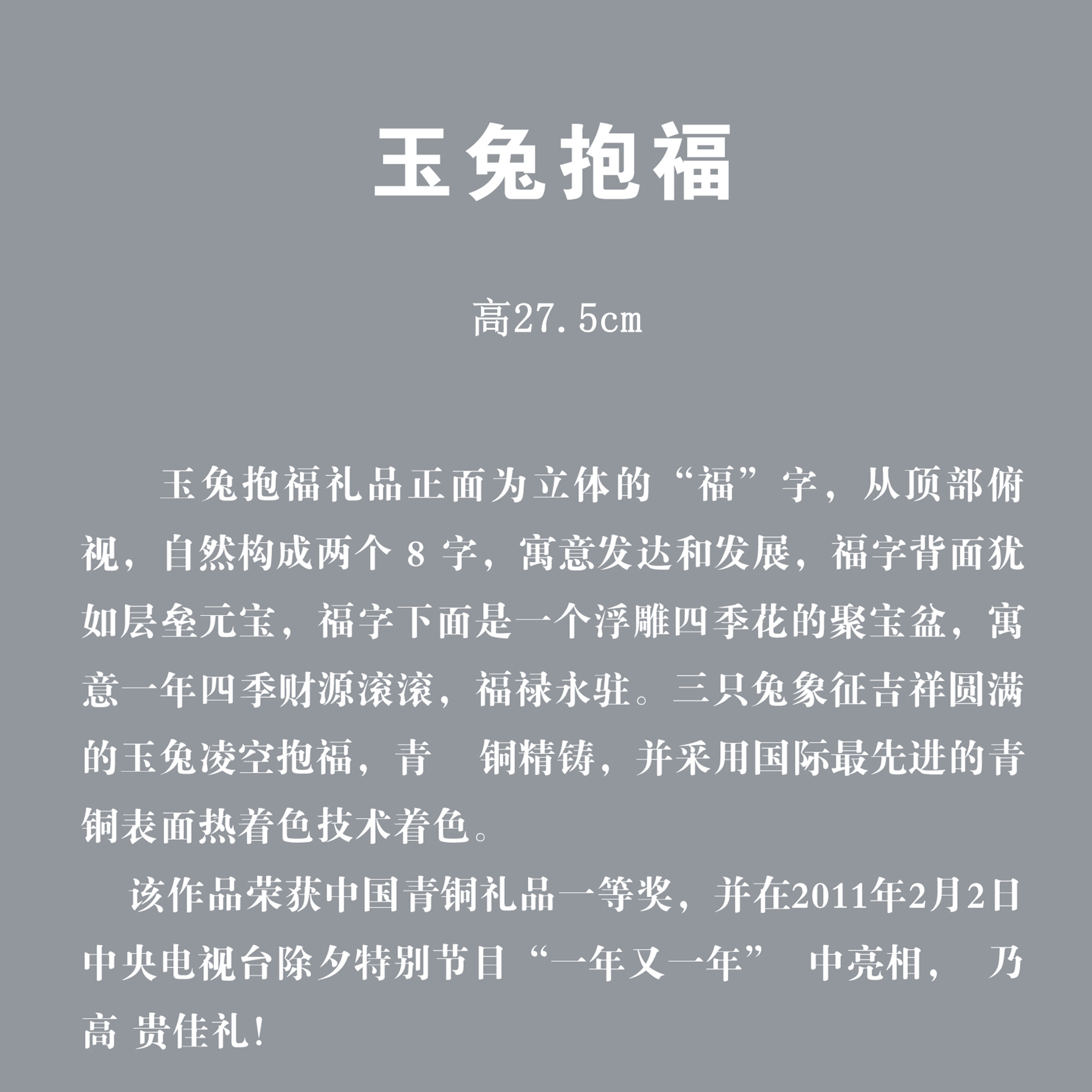 宇达青铜摆件 十二生肖兔《玉兔抱福》创意装饰 家居工艺摆件 高27.5cm