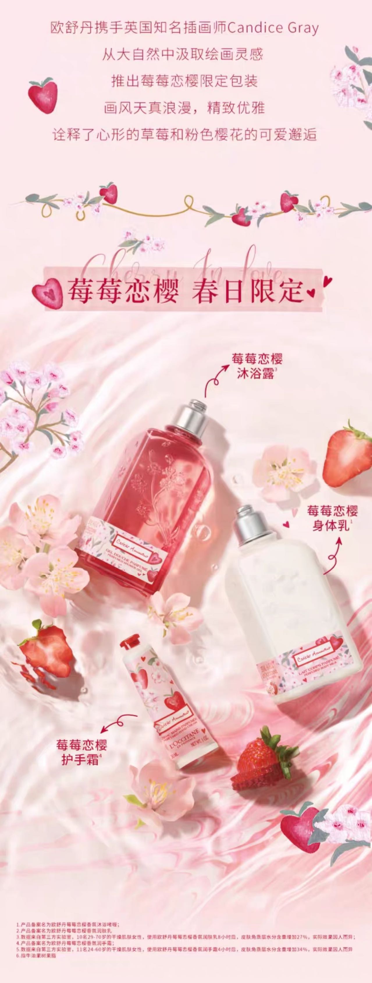 欧舒丹莓莓恋香氛三件套丨香氛套装沐浴露250ml+润肤乳250ml+护手霜30ml