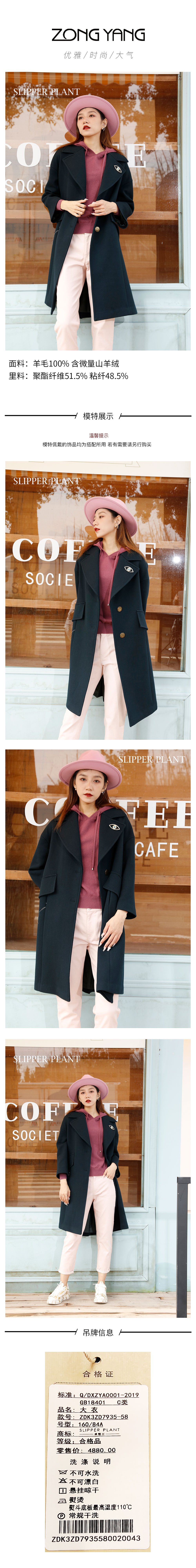 宗洋&卓蔻兰 女士中长款时尚宽松大衣ZDK3ZD7935-58