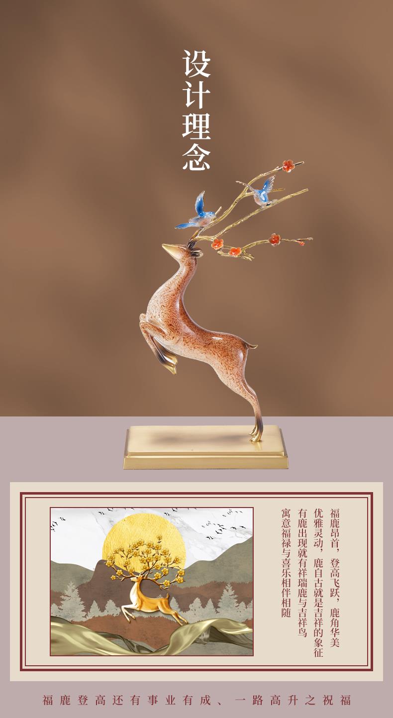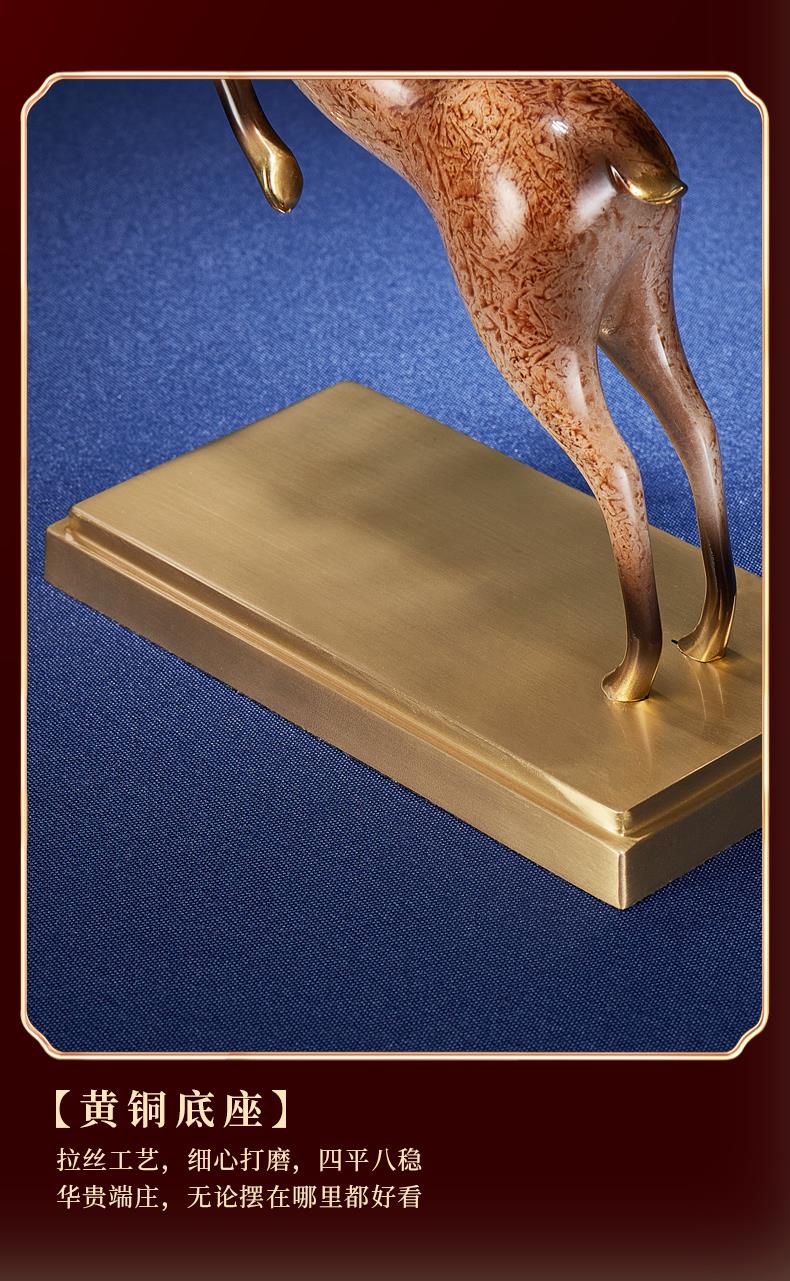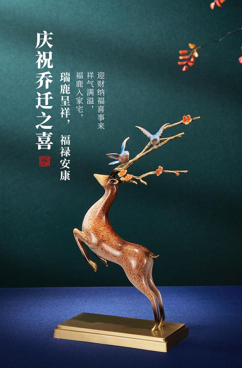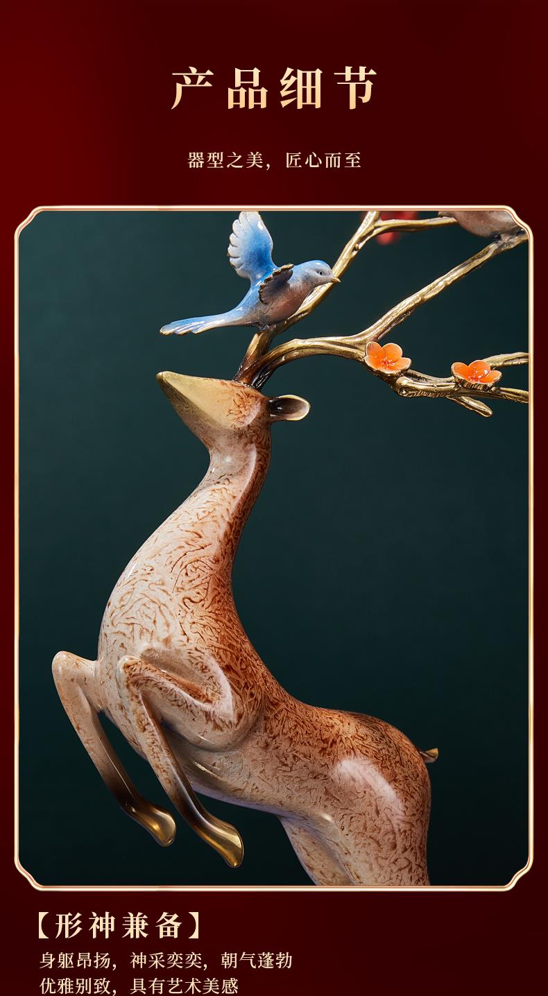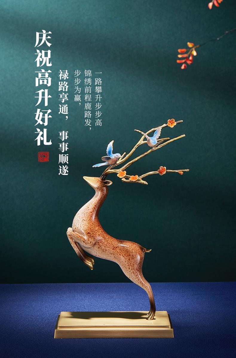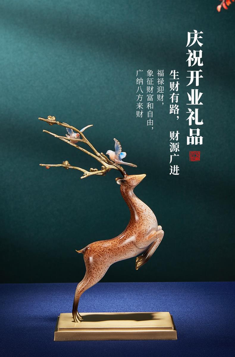 高档铜工艺礼品摆饰一鹿发财生财有鹿全铜鹿摆件客厅酒柜展示柜装彩铜工艺 一鹿报喜摆件195*90*320