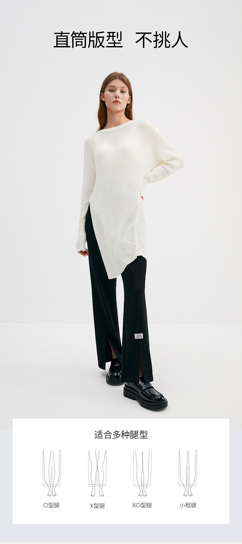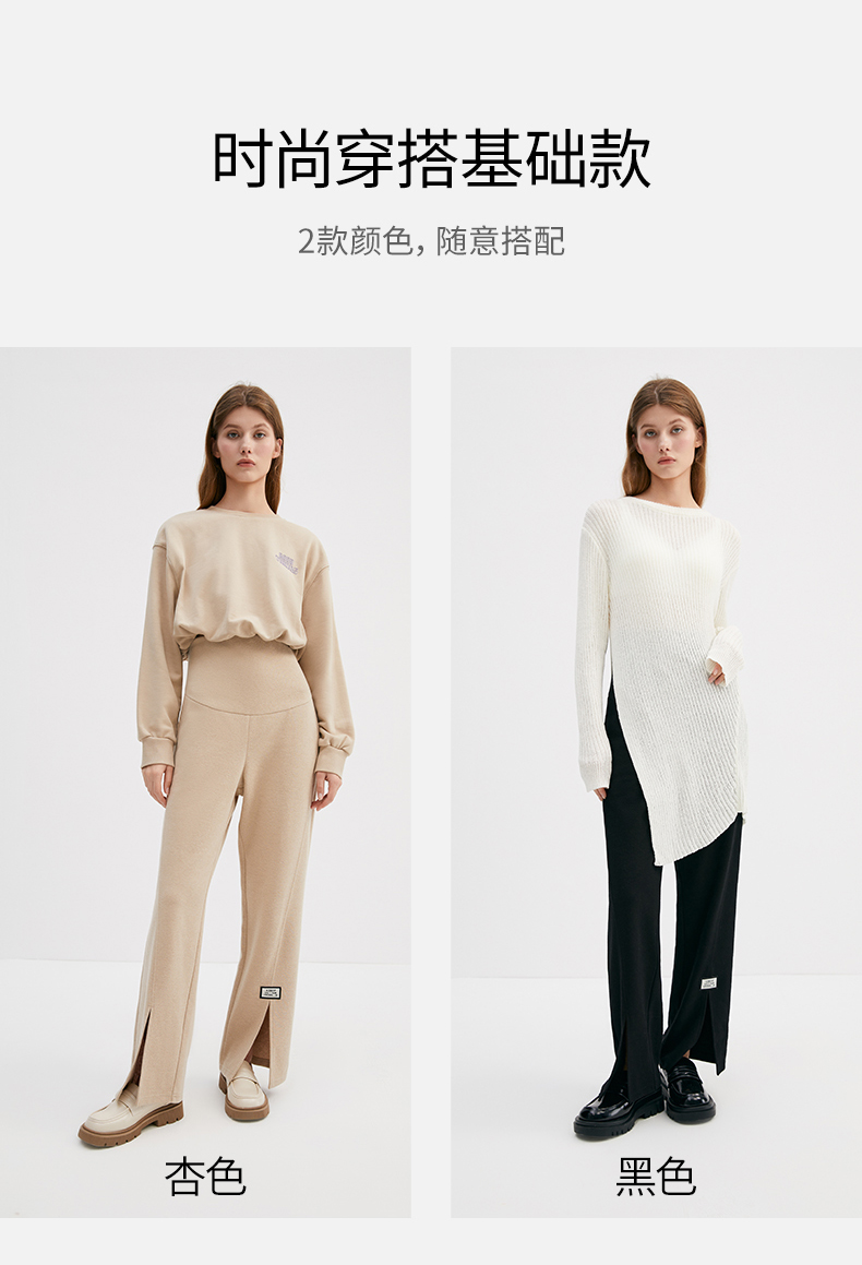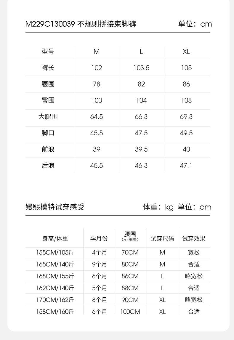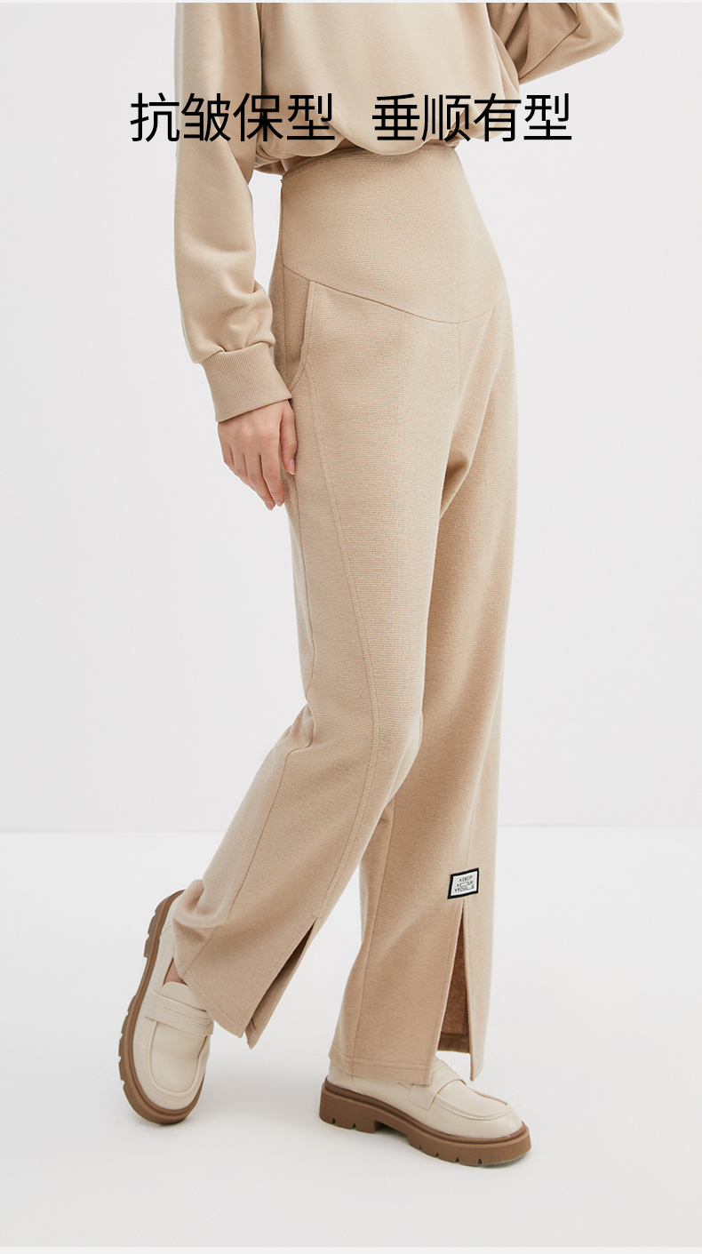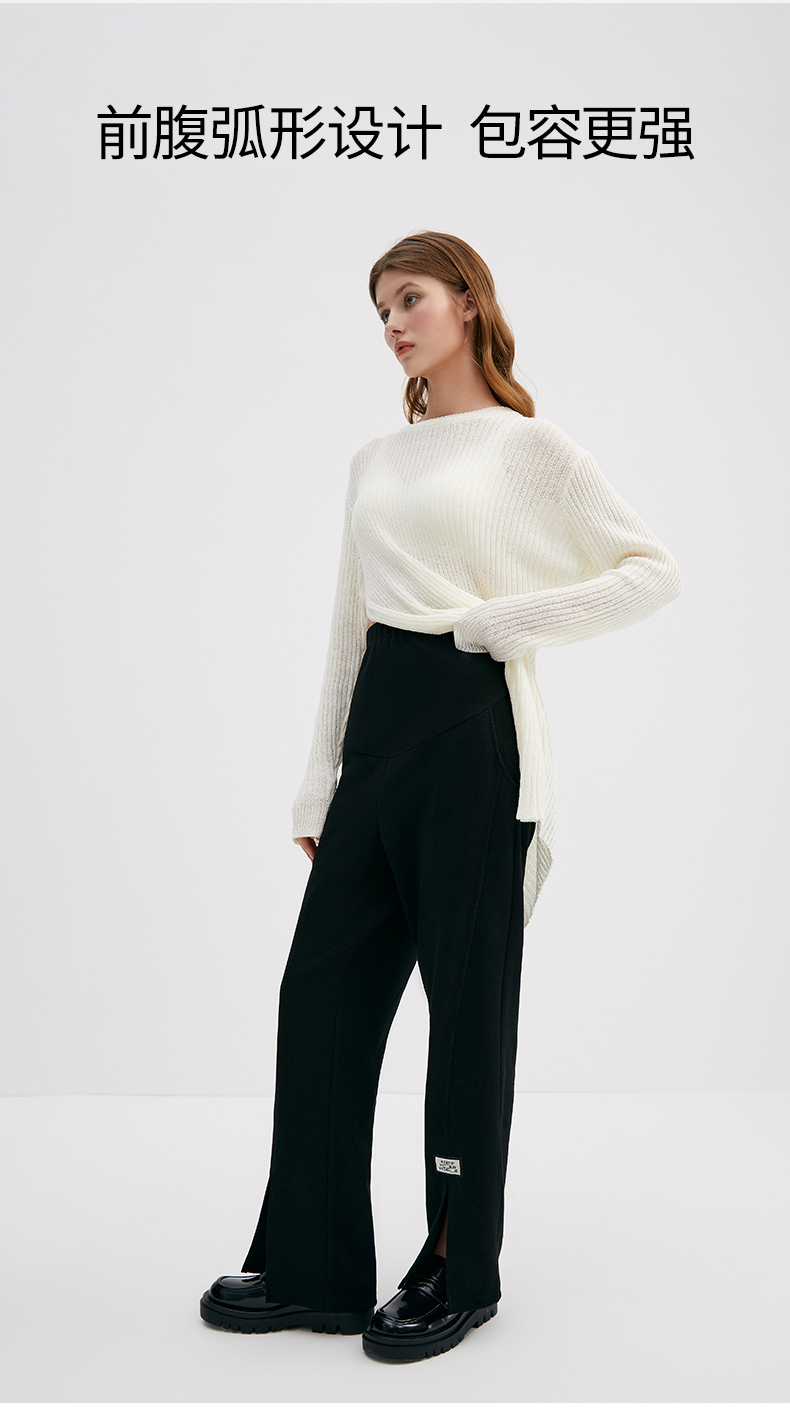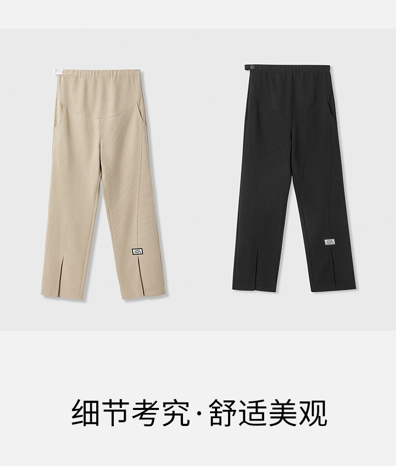 【孕妈服饰】嫚熙孕妇直筒裤春秋个性设计感开叉孕妈妈大码托腹华夫格阔腿长裤