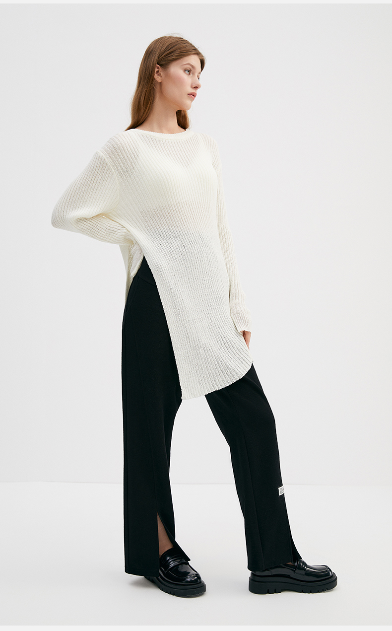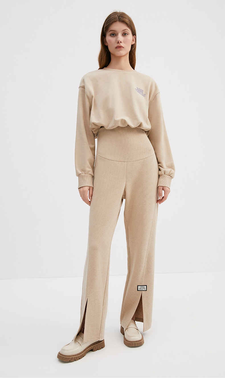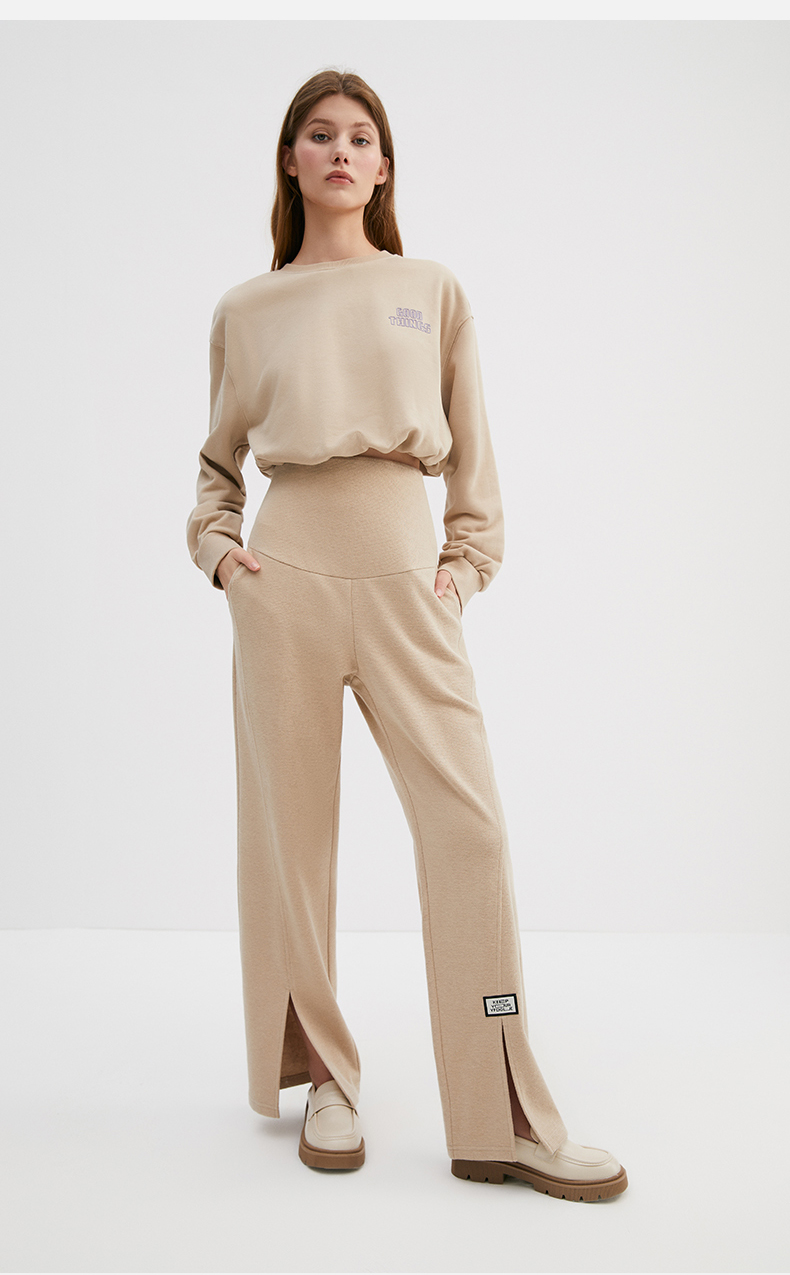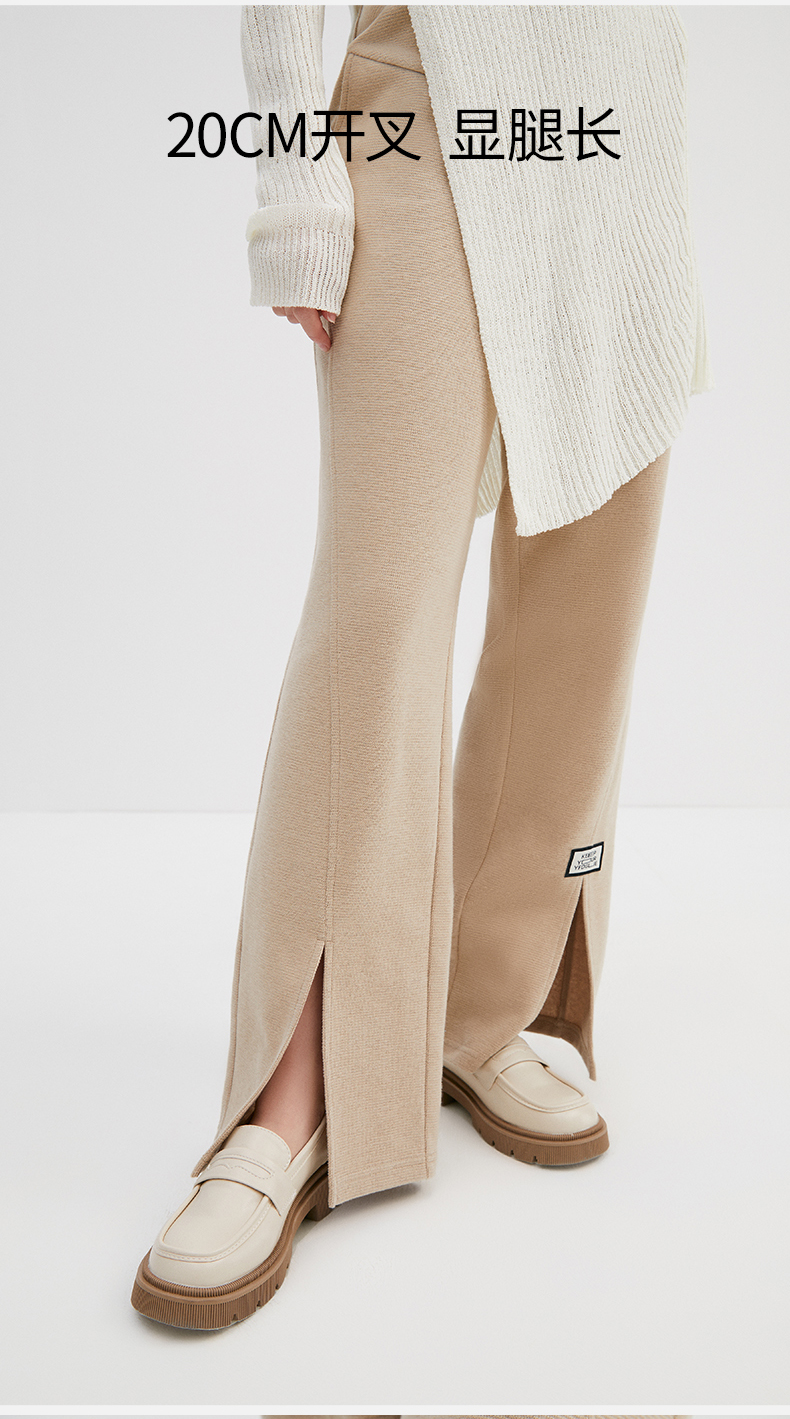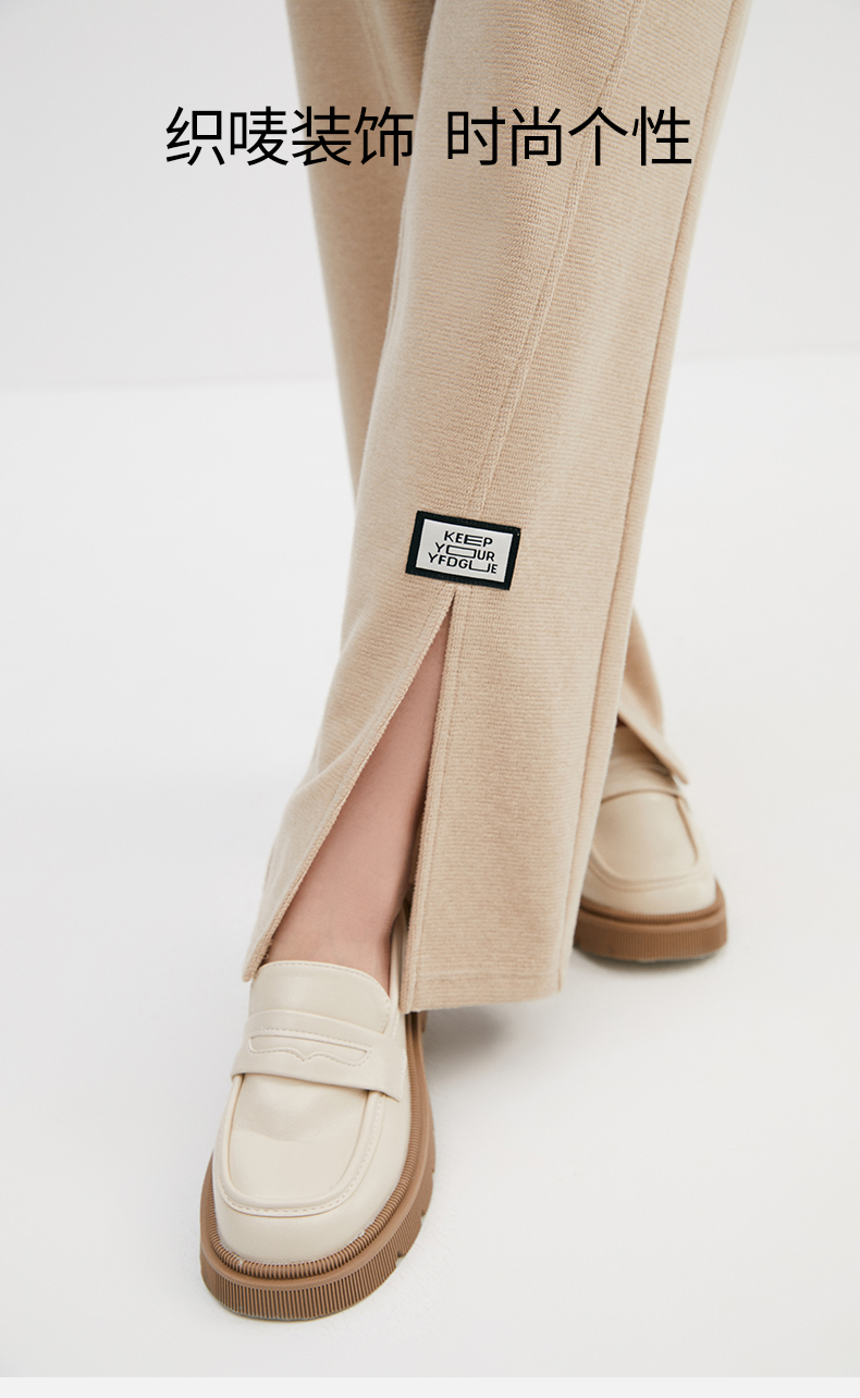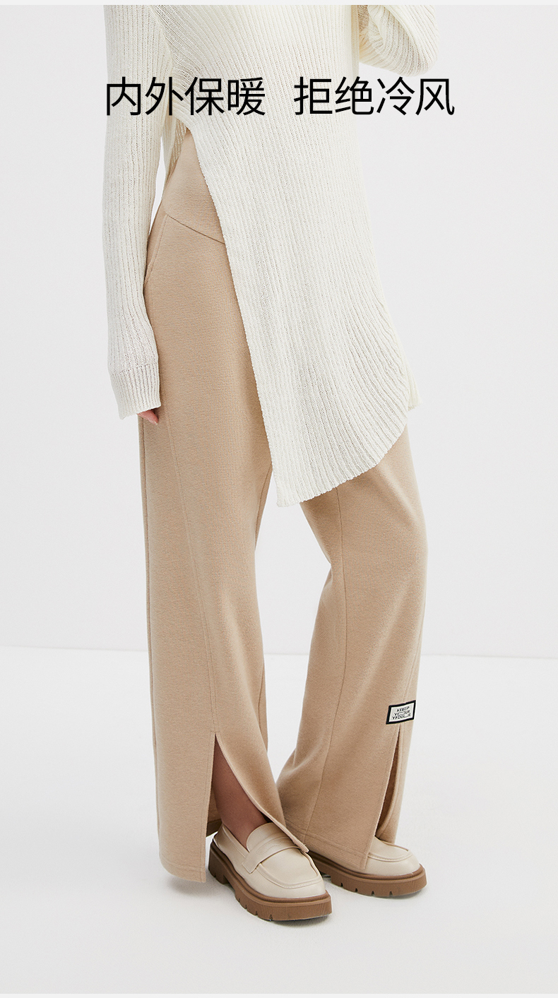 【孕妈服饰】嫚熙孕妇直筒裤春秋个性设计感开叉孕妈妈大码托腹华夫格阔腿长裤