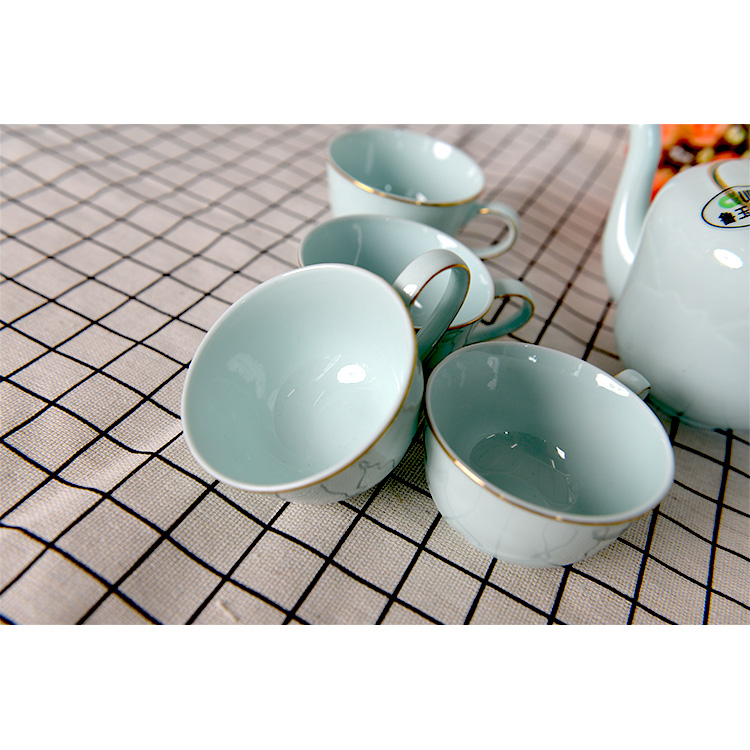 鲁玉陶瓷茶具组合套装高档金边青色5头茶具